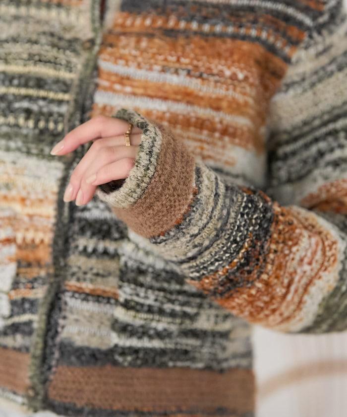 這款開衫由多種紗線編織而成,紗線的混搭極富表現力。