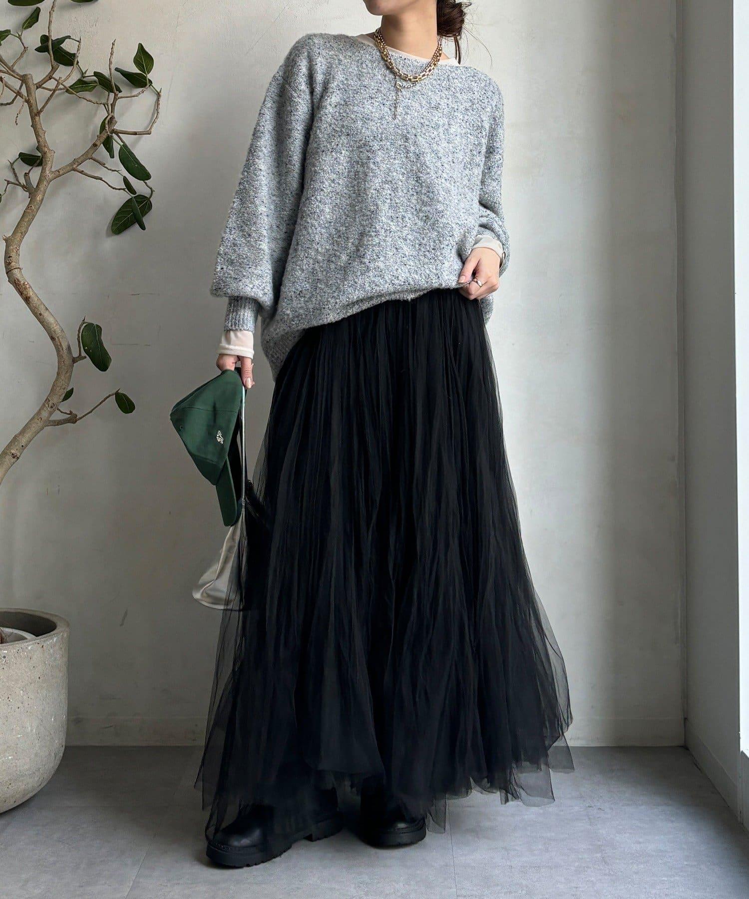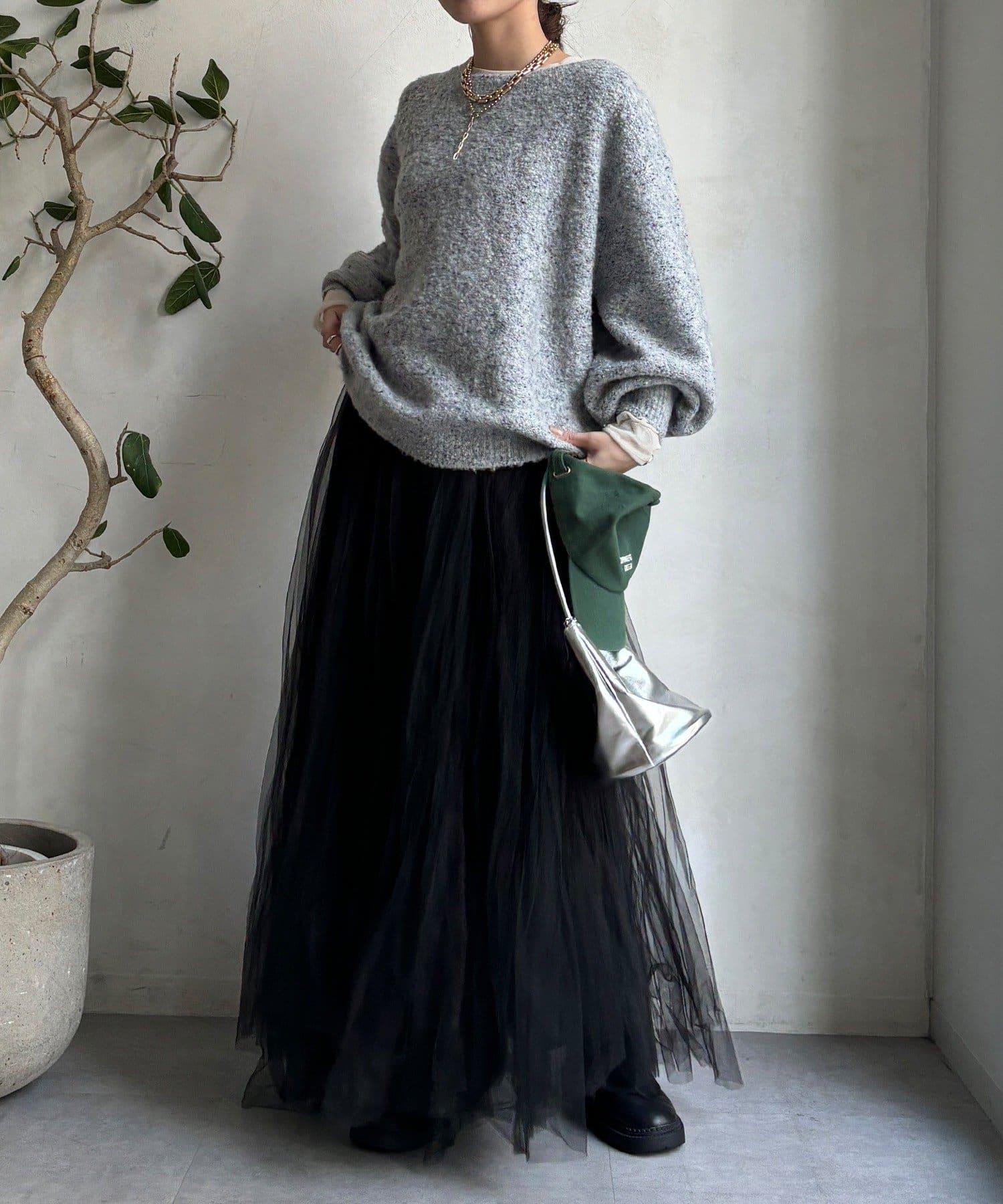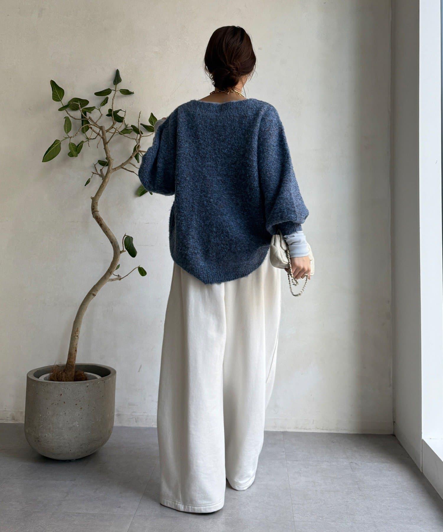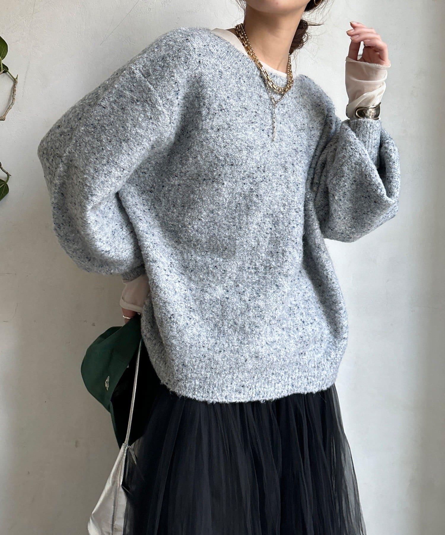 船形領口展現了女性的鎖骨。寬鬆的衣身和下垂的肩部營造出輕鬆愜意的感覺。