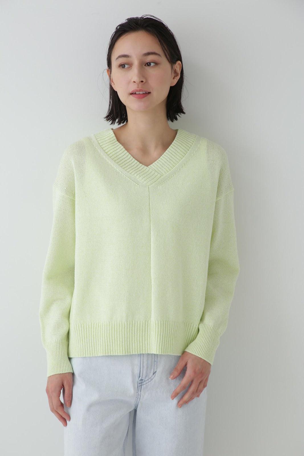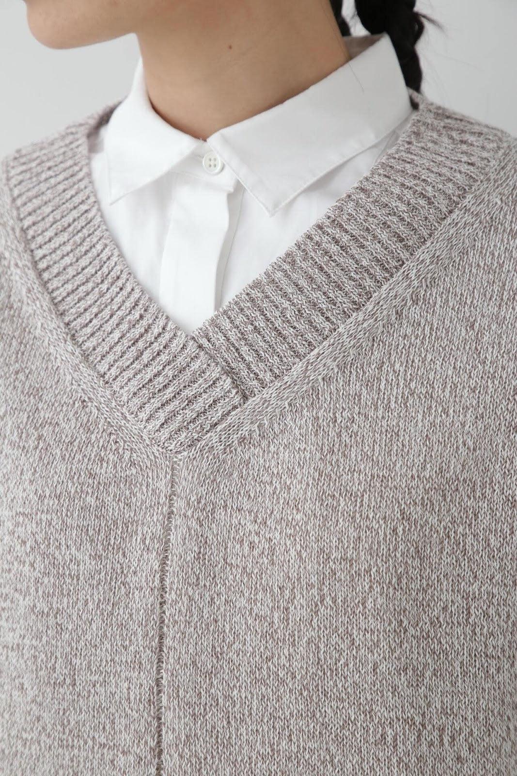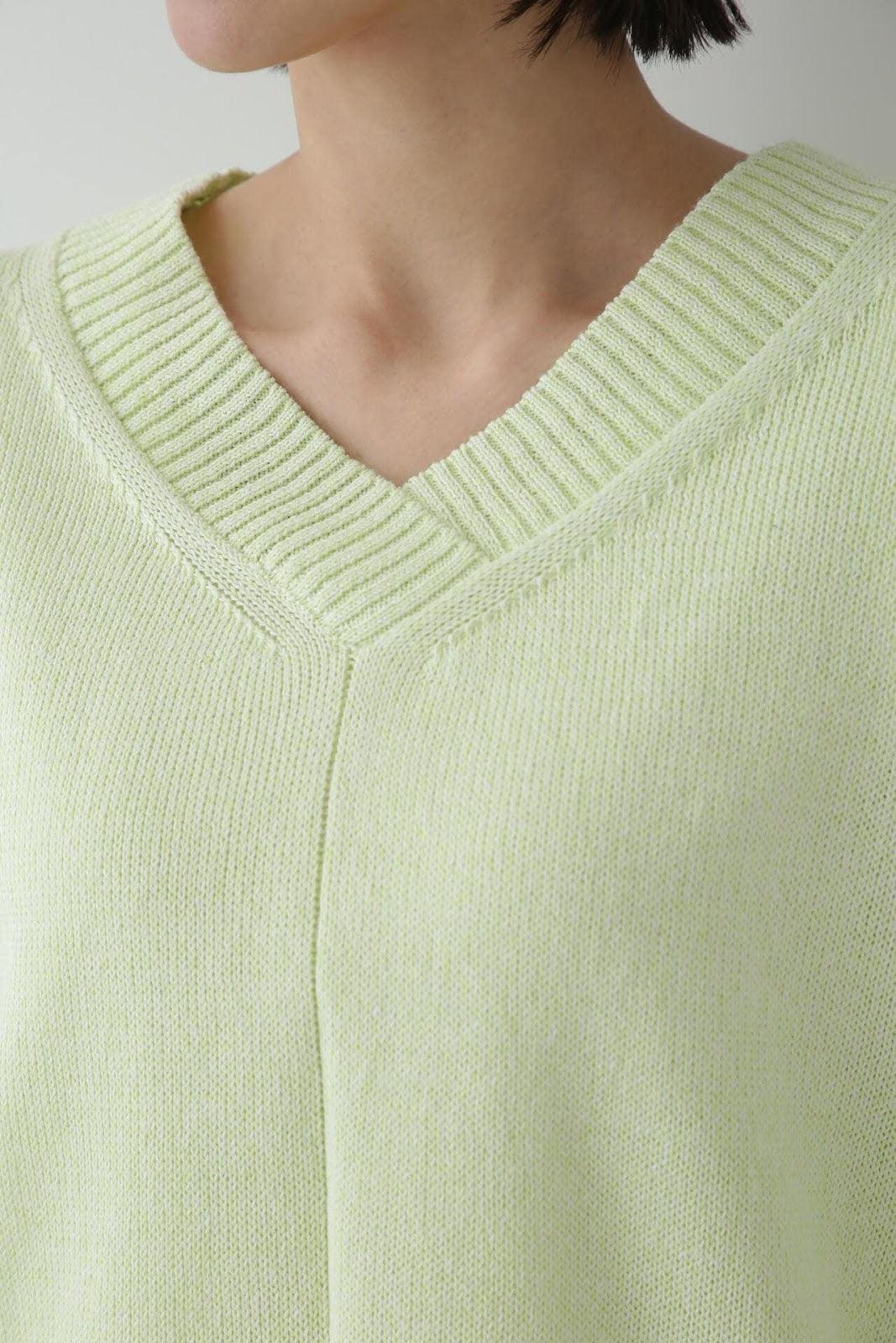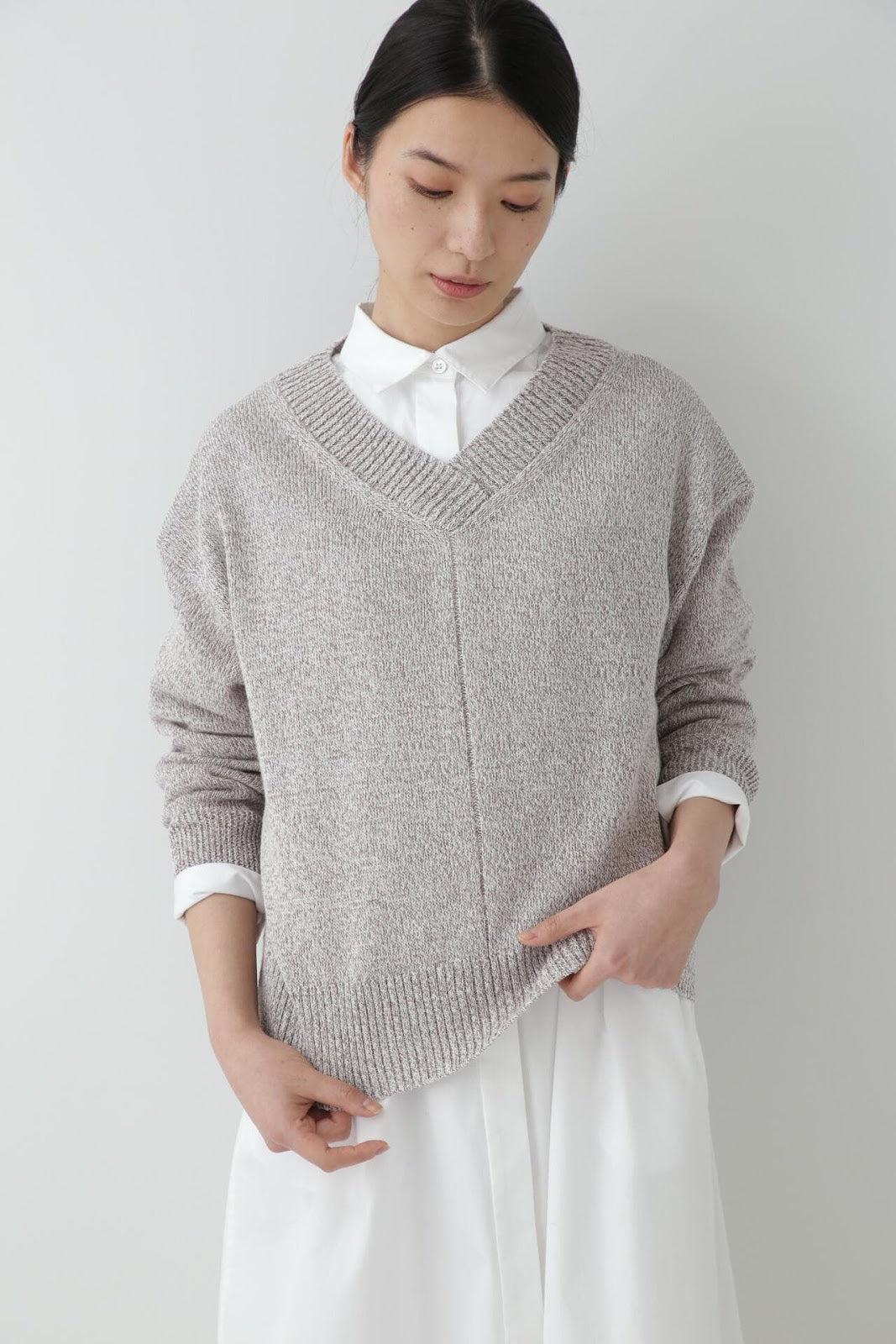 每季都大受歡迎的混色吉馬針織衫今年又有了新的顏色!V 領是成熟廓形的一大特色,具有體積感。這種設計的目的是在延長後長的情況下給人一種鬆弛感。面料具有涼爽的亞麻質感,由 100% 棉紗經特殊的 Gima 工藝製成。通過將三根紗線捻在一起,使顏色和編織達到平衡,從而呈現出木質外觀,並在白色的基礎上呈現出如春天般柔和的色調。顏色方面,本季流行色為棕色,主題色淺綠色也是粉色,給人溫和的印象。我們建議通過充分利用色彩來協調春季色彩。