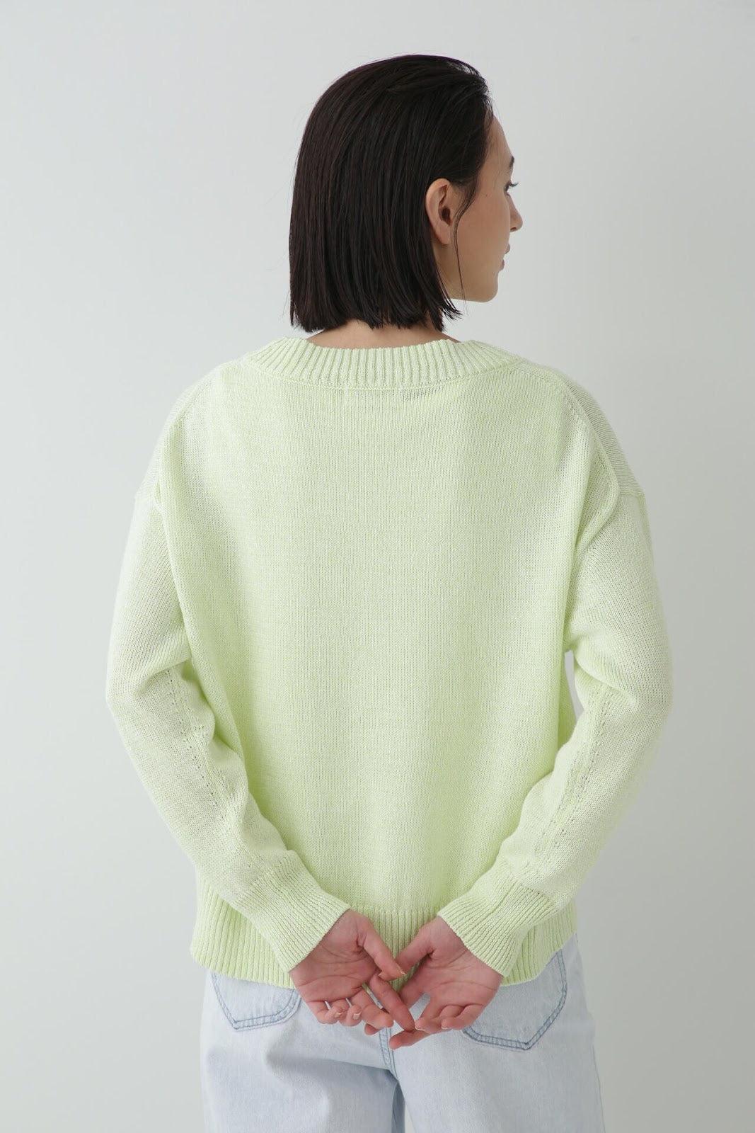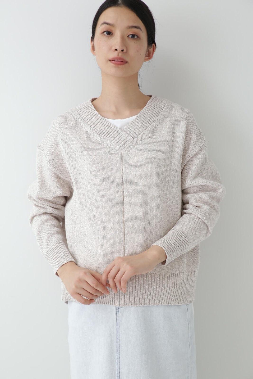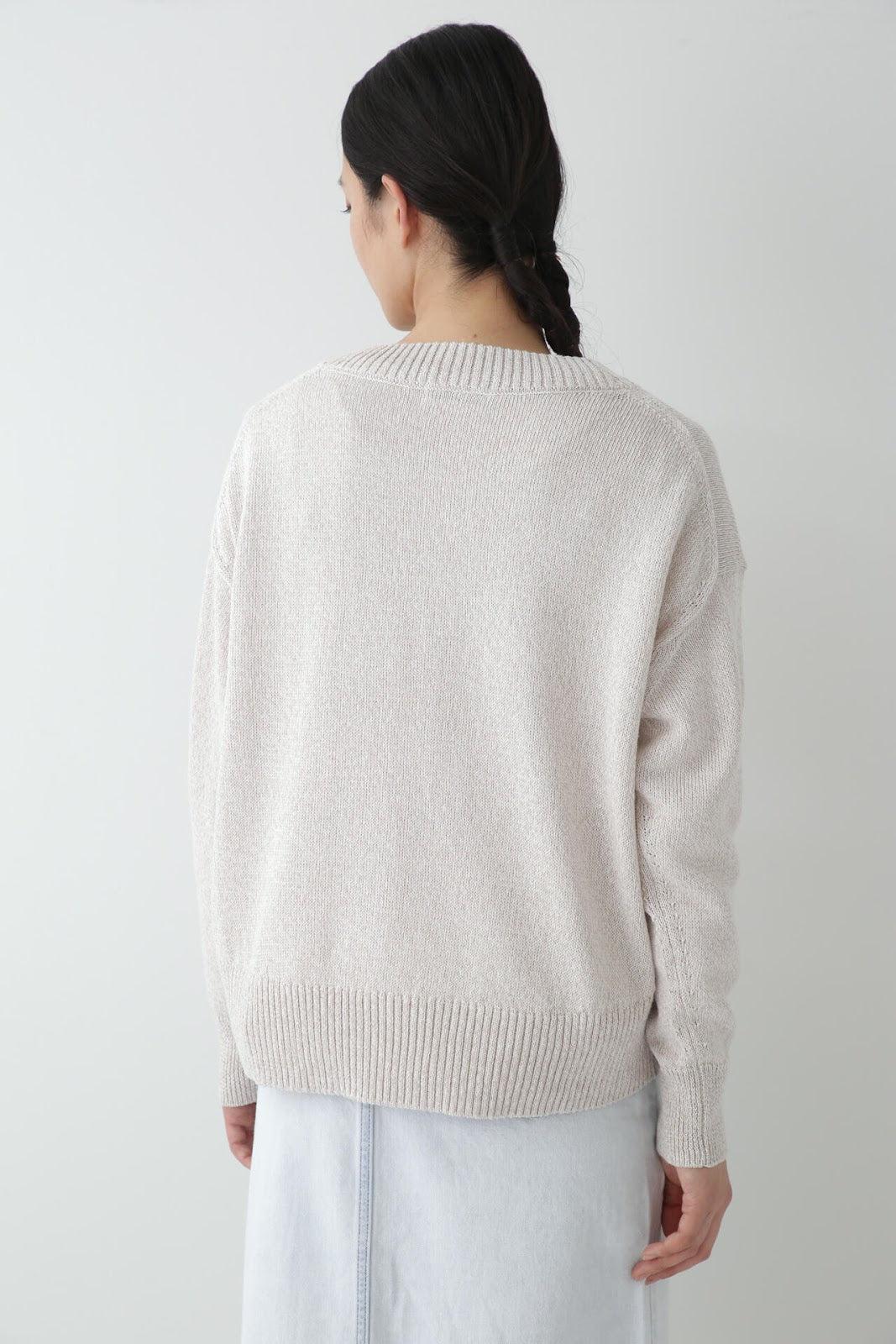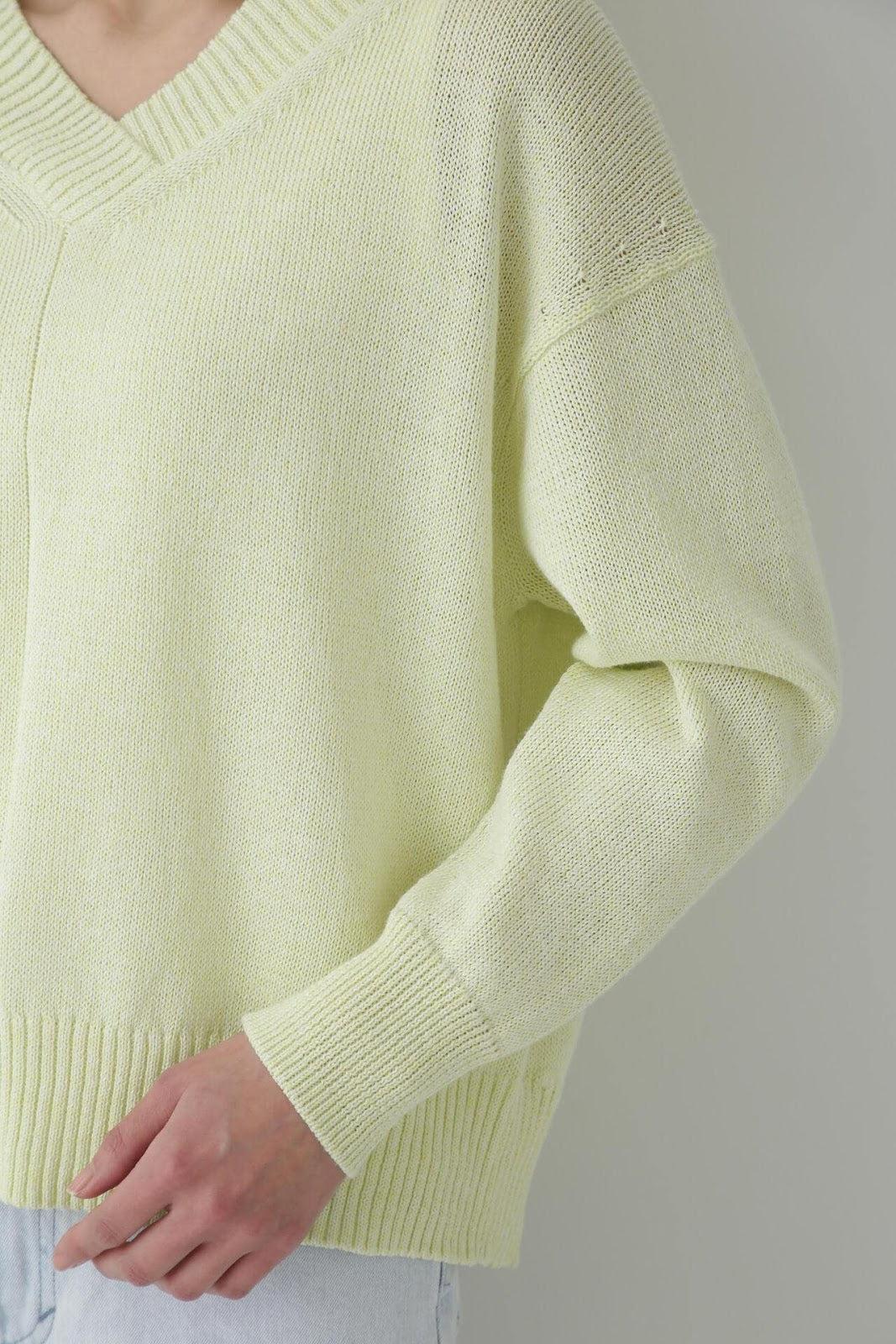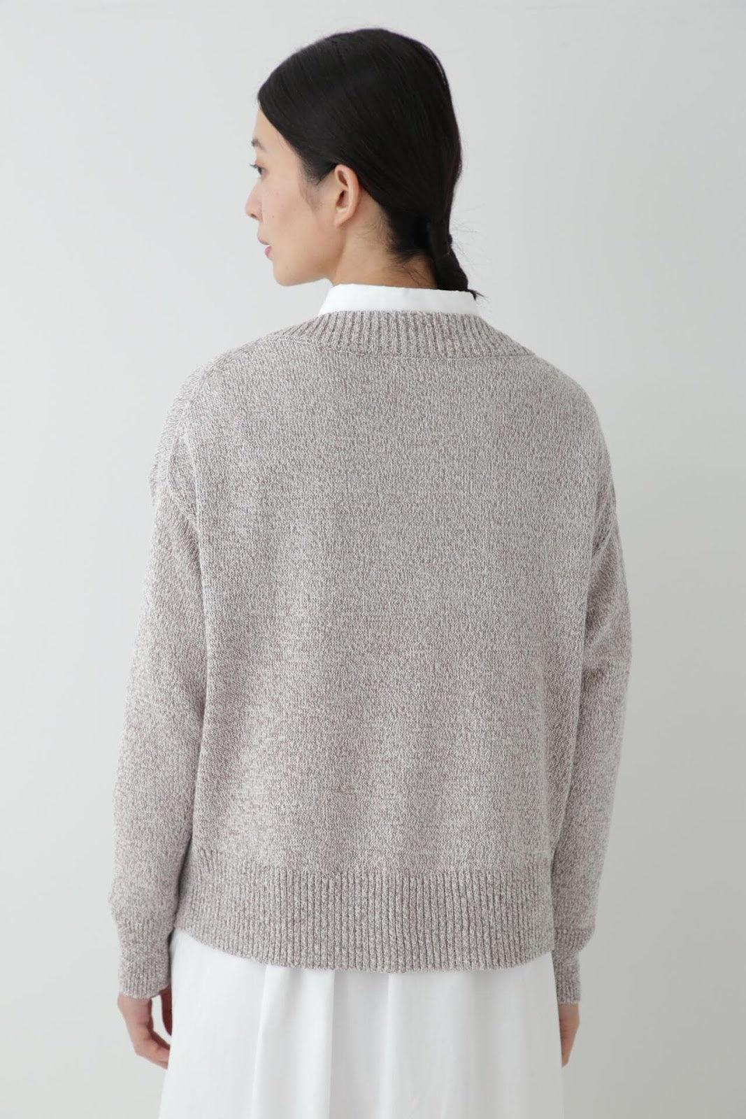 每季都大受歡迎的混色吉馬針織衫今年又有了新的顏色!V 領是成熟廓形的一大特色,具有體積感。這種設計的目的是在延長後長的情況下給人一種鬆弛感。面料具有涼爽的亞麻質感,由 100% 棉紗經特殊的 Gima 工藝製成。通過將三根紗線捻在一起,使顏色和編織達到平衡,從而呈現出木質外觀,並在白色的基礎上呈現出如春天般柔和的色調。顏色方面,本季流行色為棕色,主題色淺綠色也是粉色,給人溫和的印象。我們建議通過充分利用色彩來協調春季色彩。