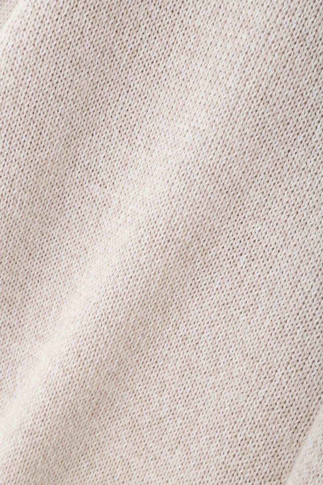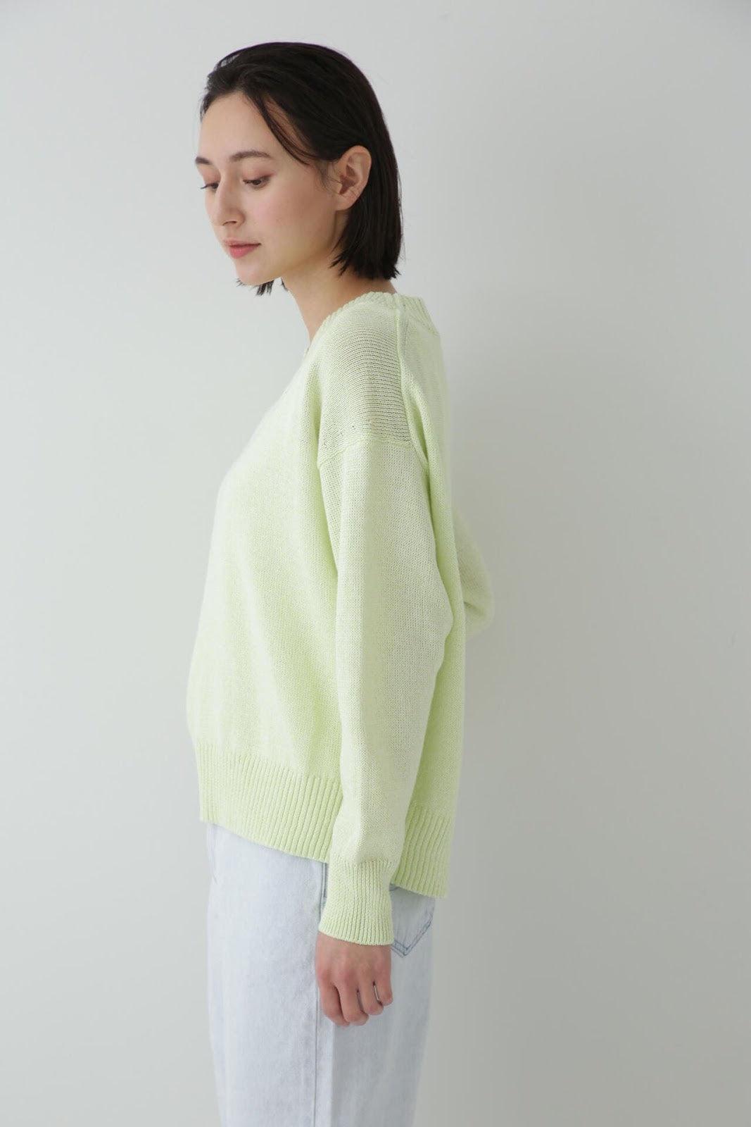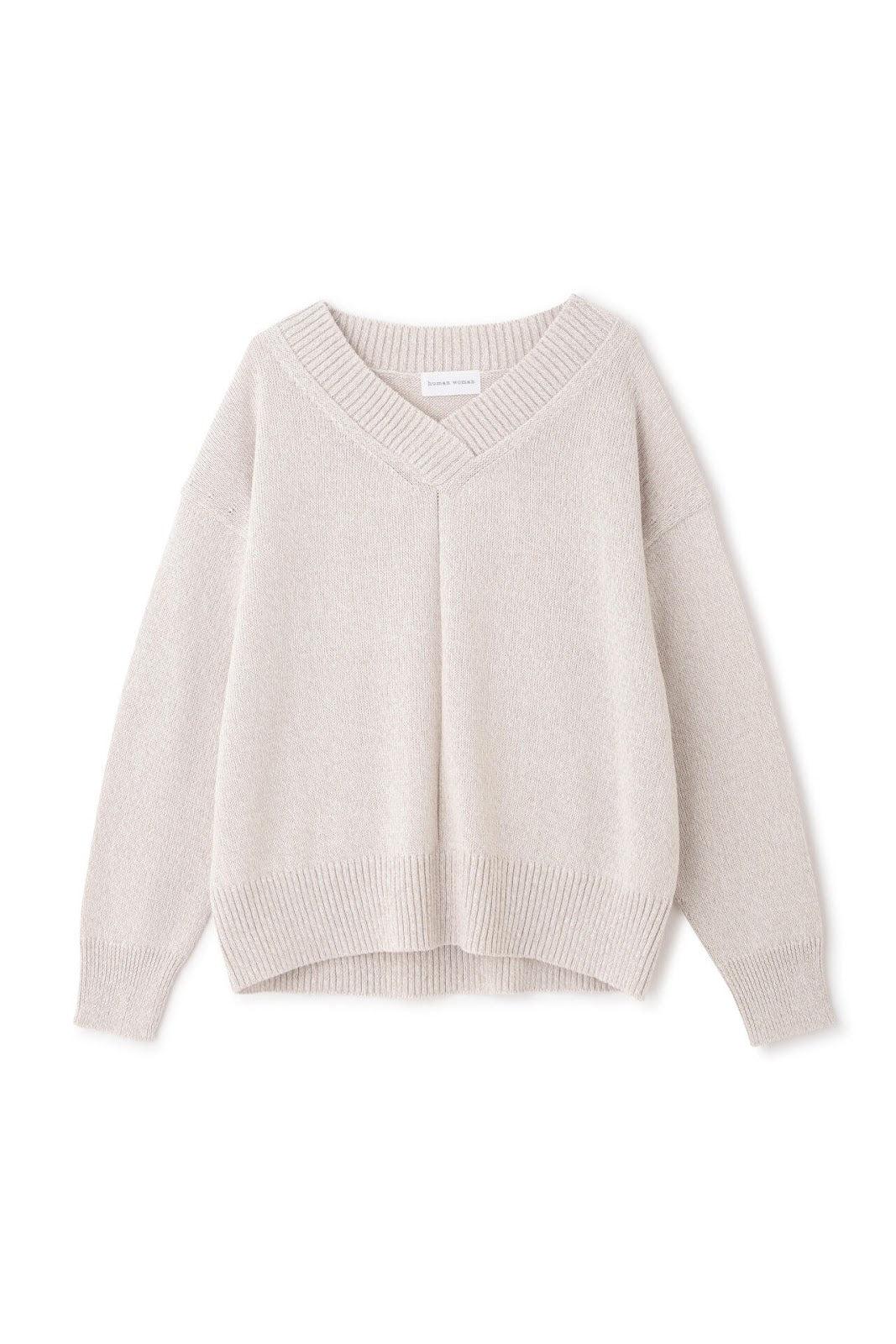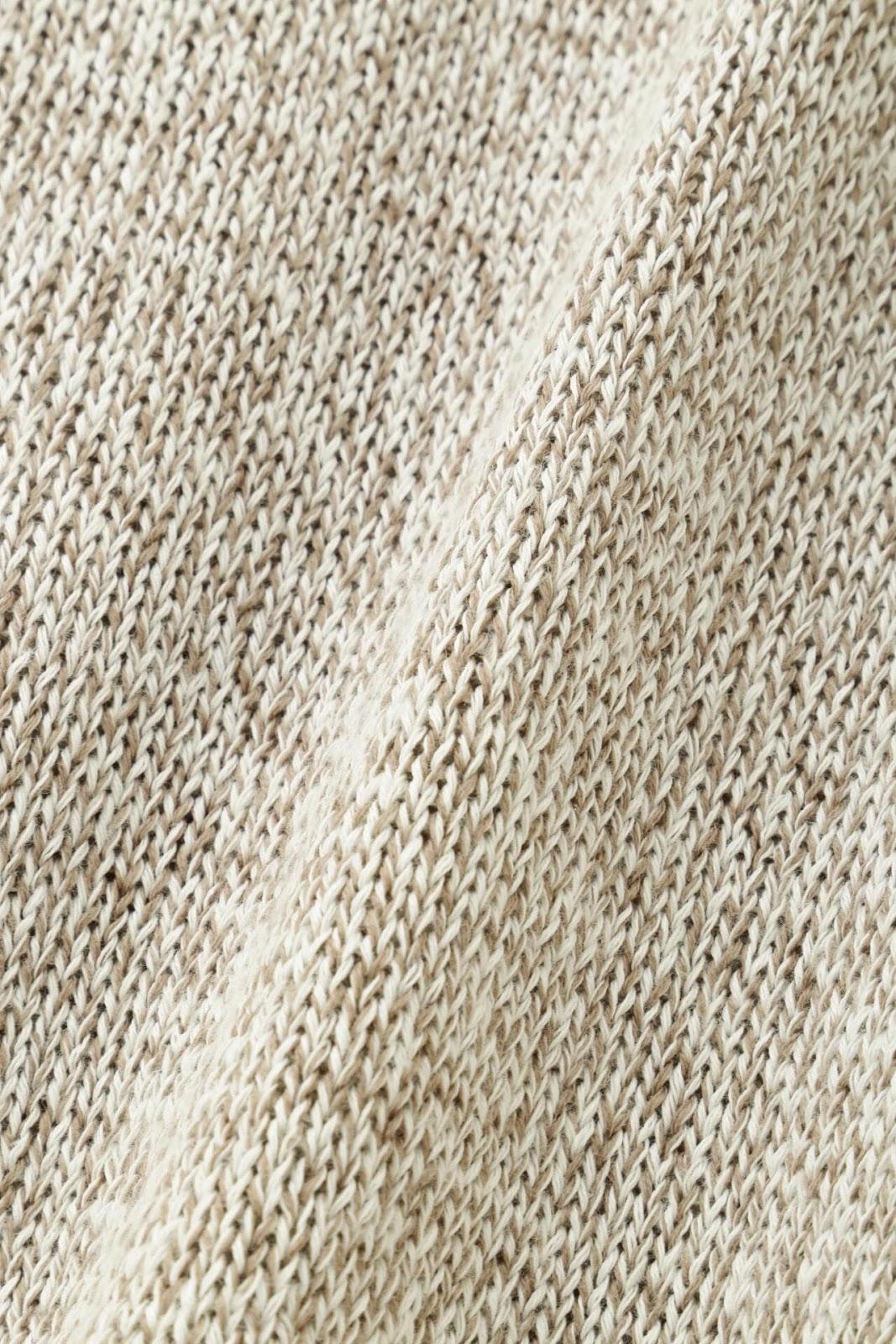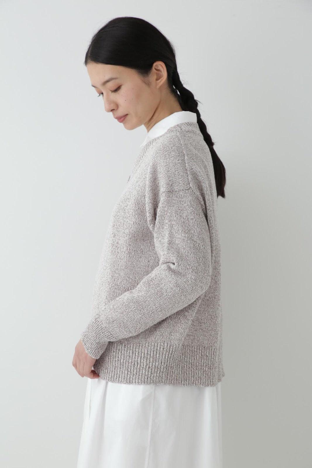 每季都大受歡迎的混色吉馬針織衫今年又有了新的顏色!V 領是成熟廓形的一大特色,具有體積感。這種設計的目的是在延長後長的情況下給人一種鬆弛感。面料具有涼爽的亞麻質感,由 100% 棉紗經特殊的 Gima 工藝製成。通過將三根紗線捻在一起,使顏色和編織達到平衡,從而呈現出木質外觀,並在白色的基礎上呈現出如春天般柔和的色調。顏色方面,本季流行色為棕色,主題色淺綠色也是粉色,給人溫和的印象。我們建議通過充分利用色彩來協調春季色彩。