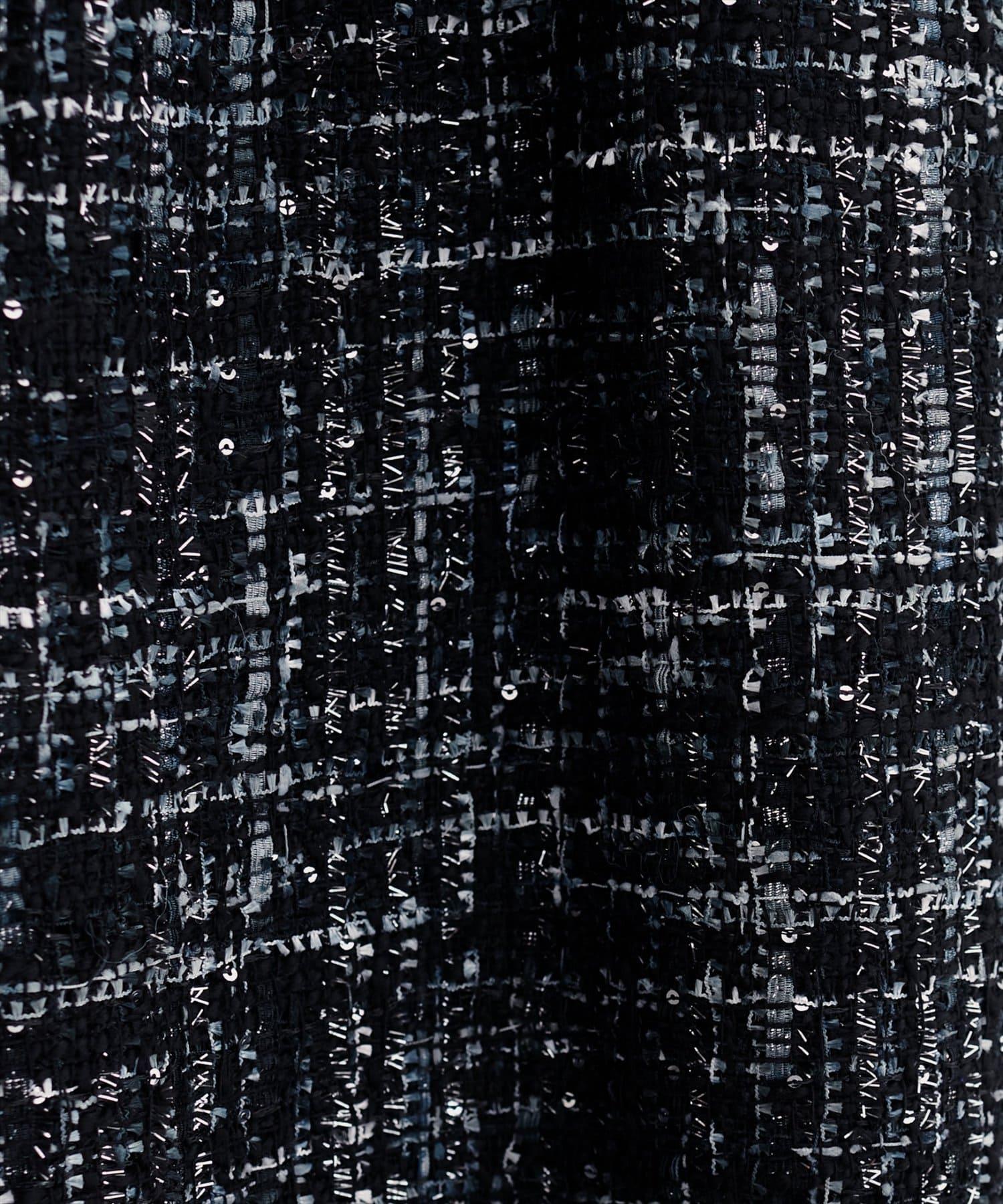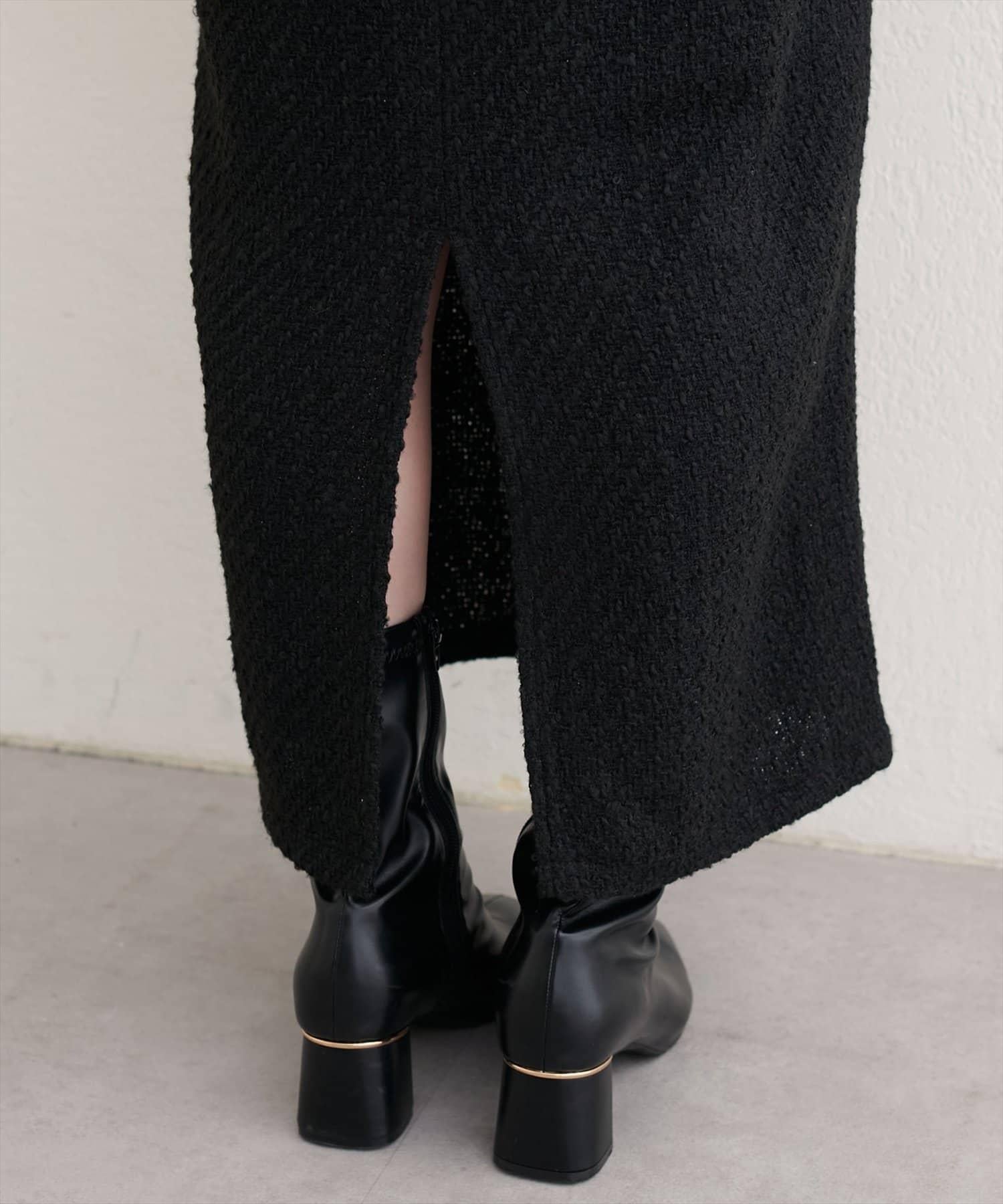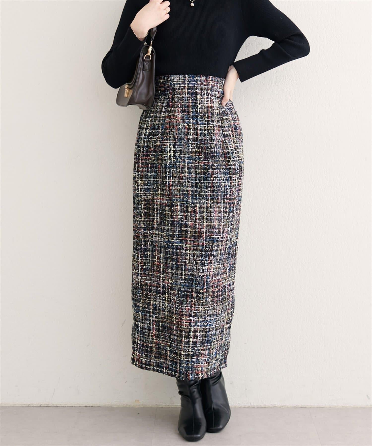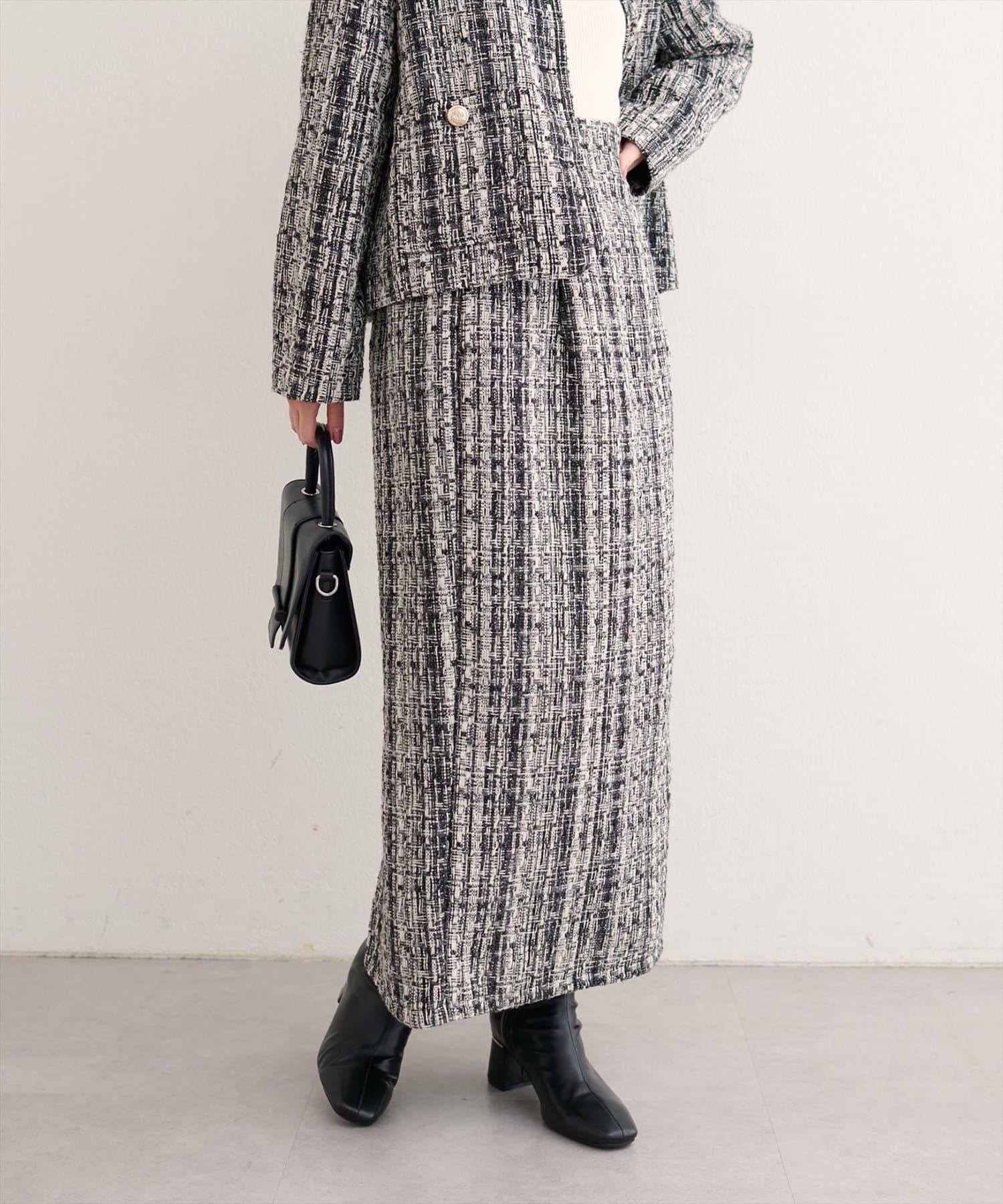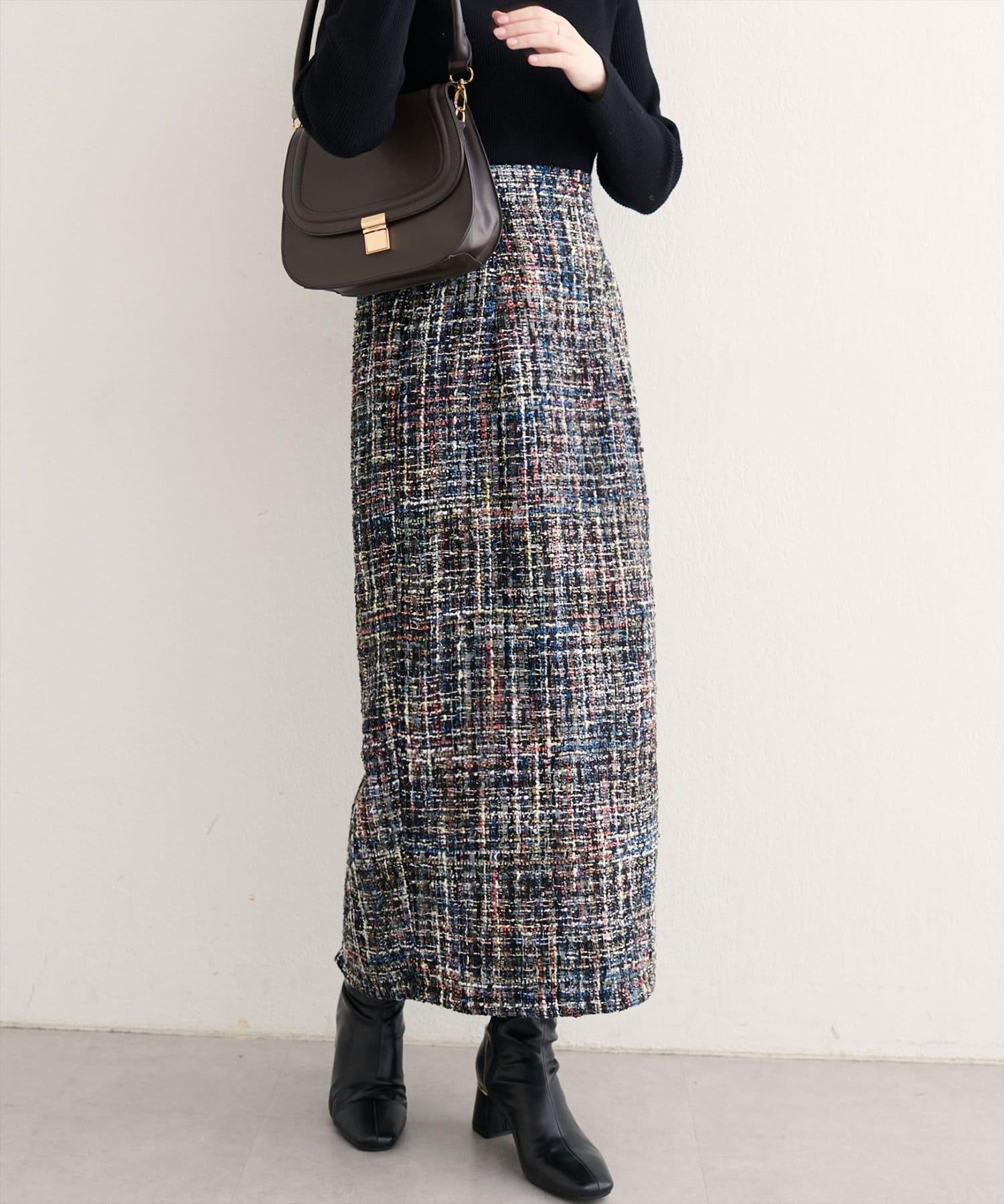 MIX 粗花呢高腰緊身裙將古典氣息與現代輪廓相結合。