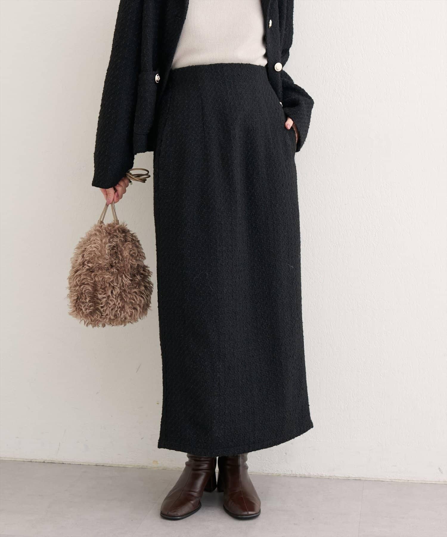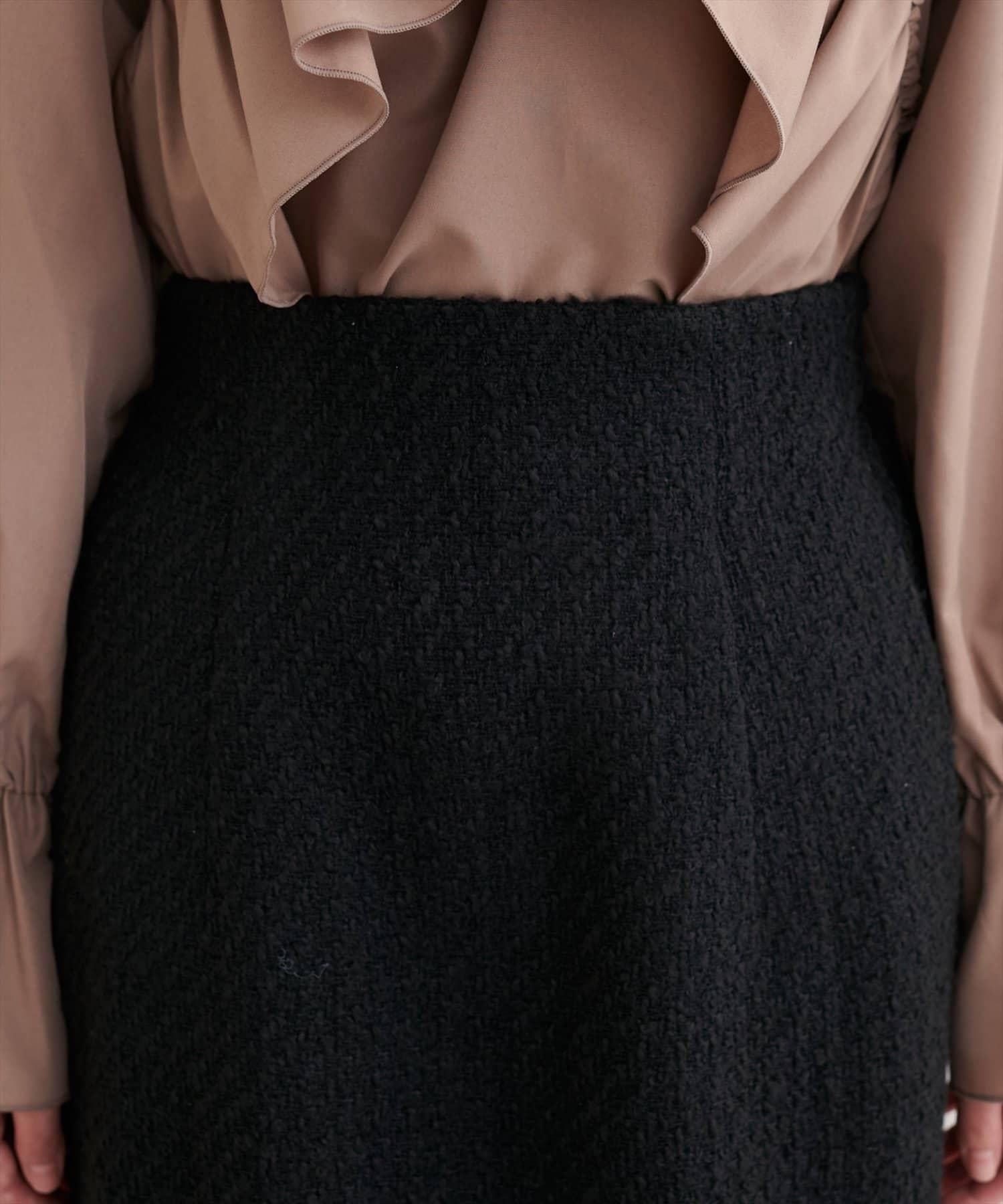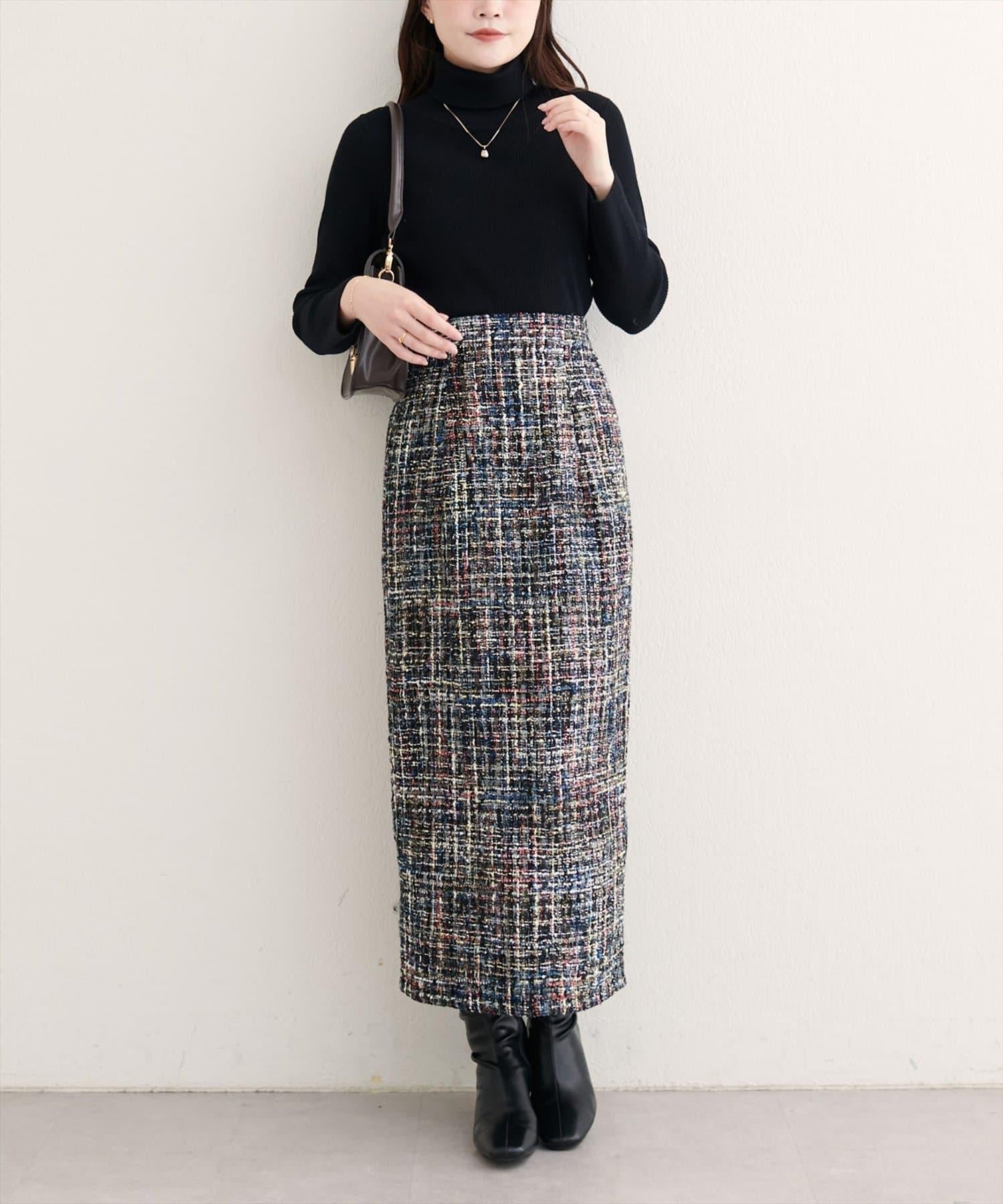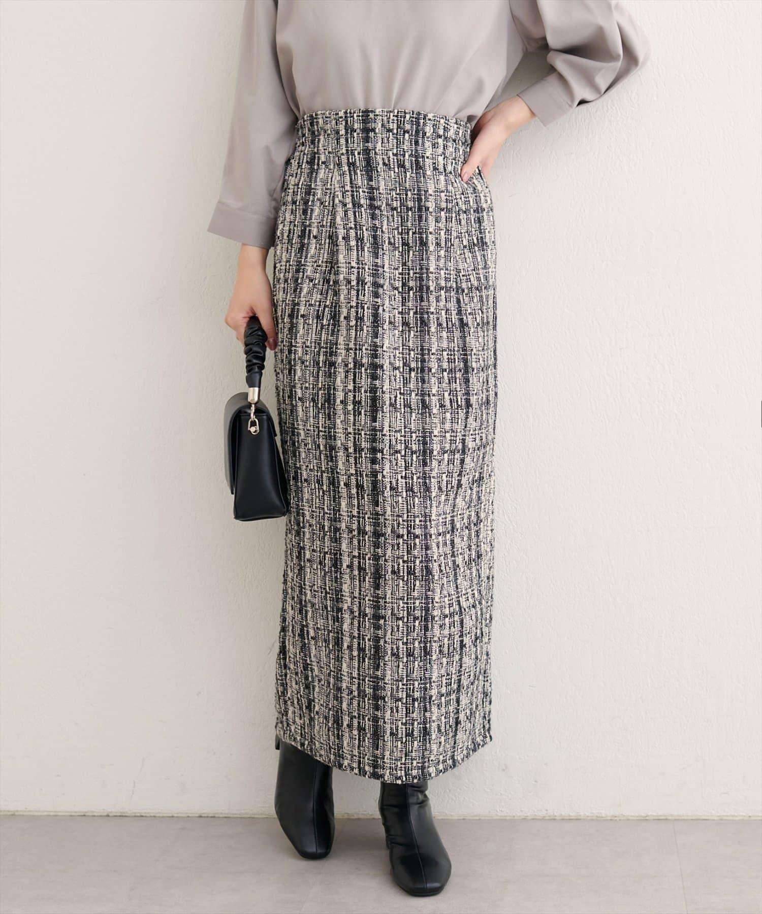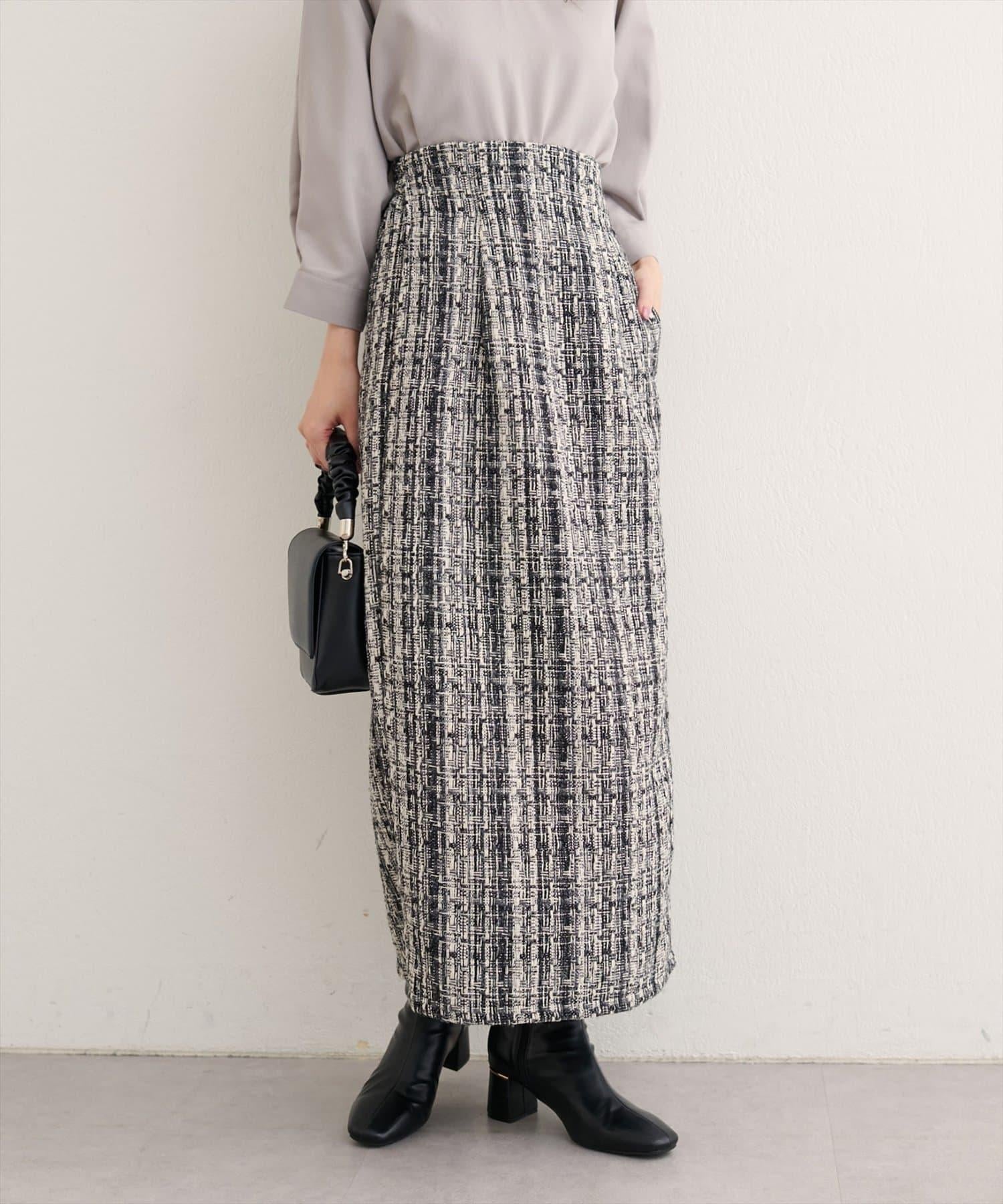 MIX 粗花呢高腰緊身裙將古典氣息與現代輪廓相結合。