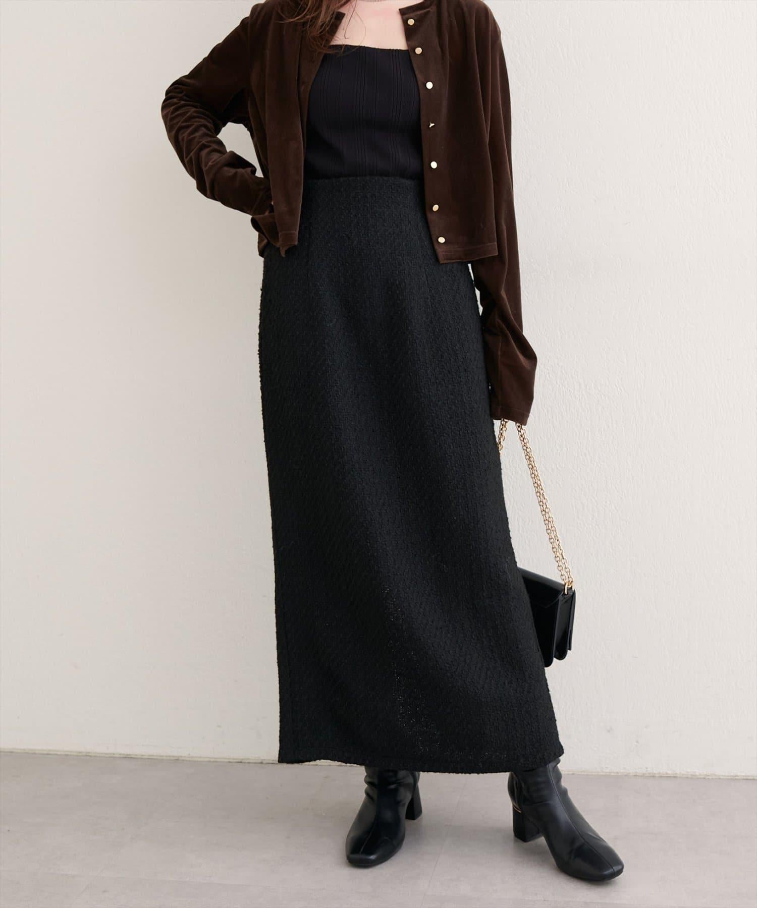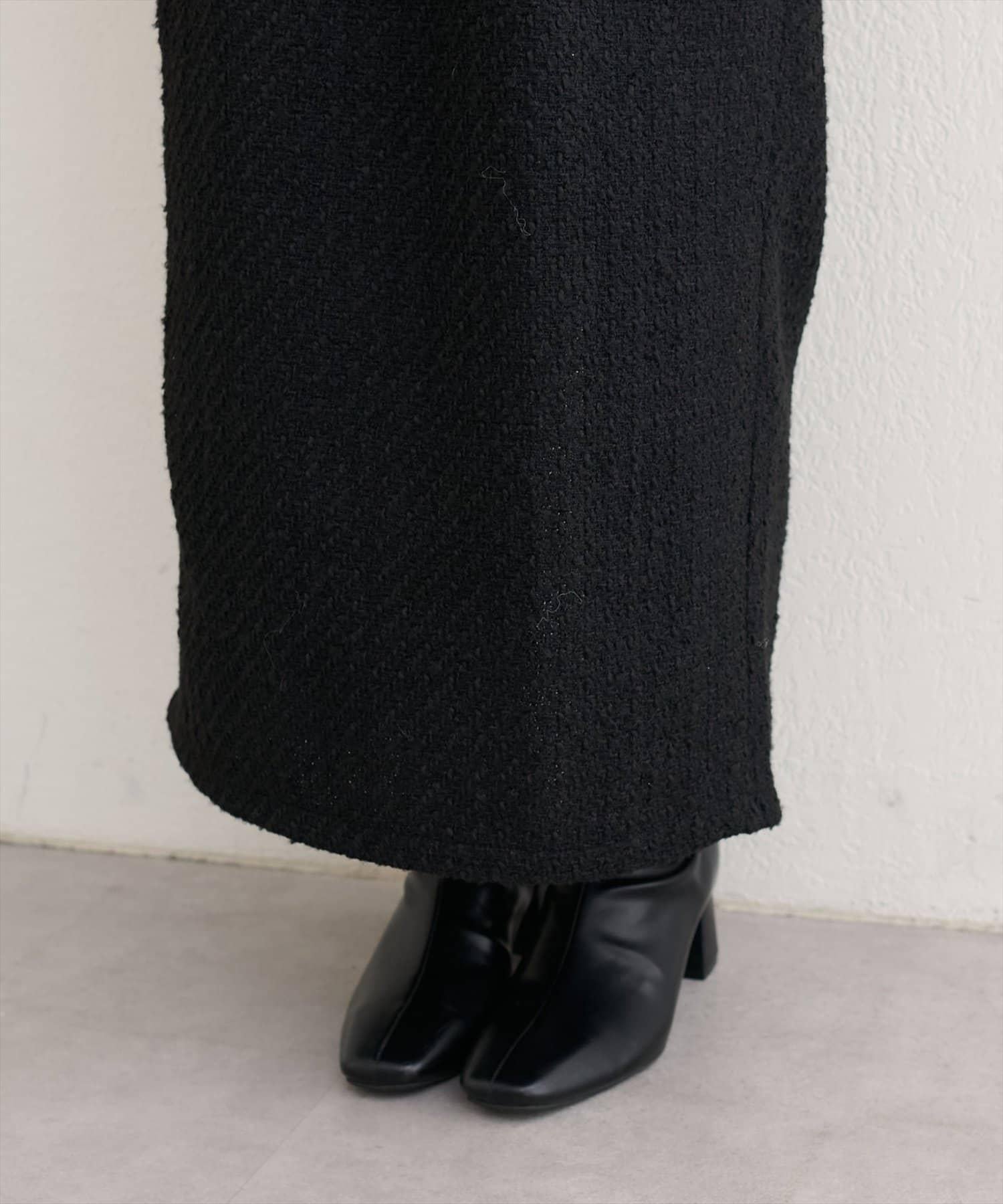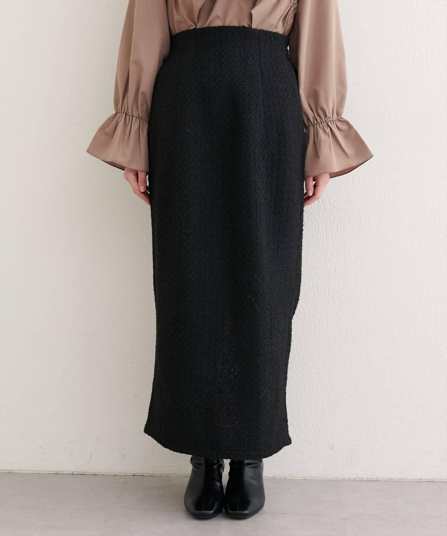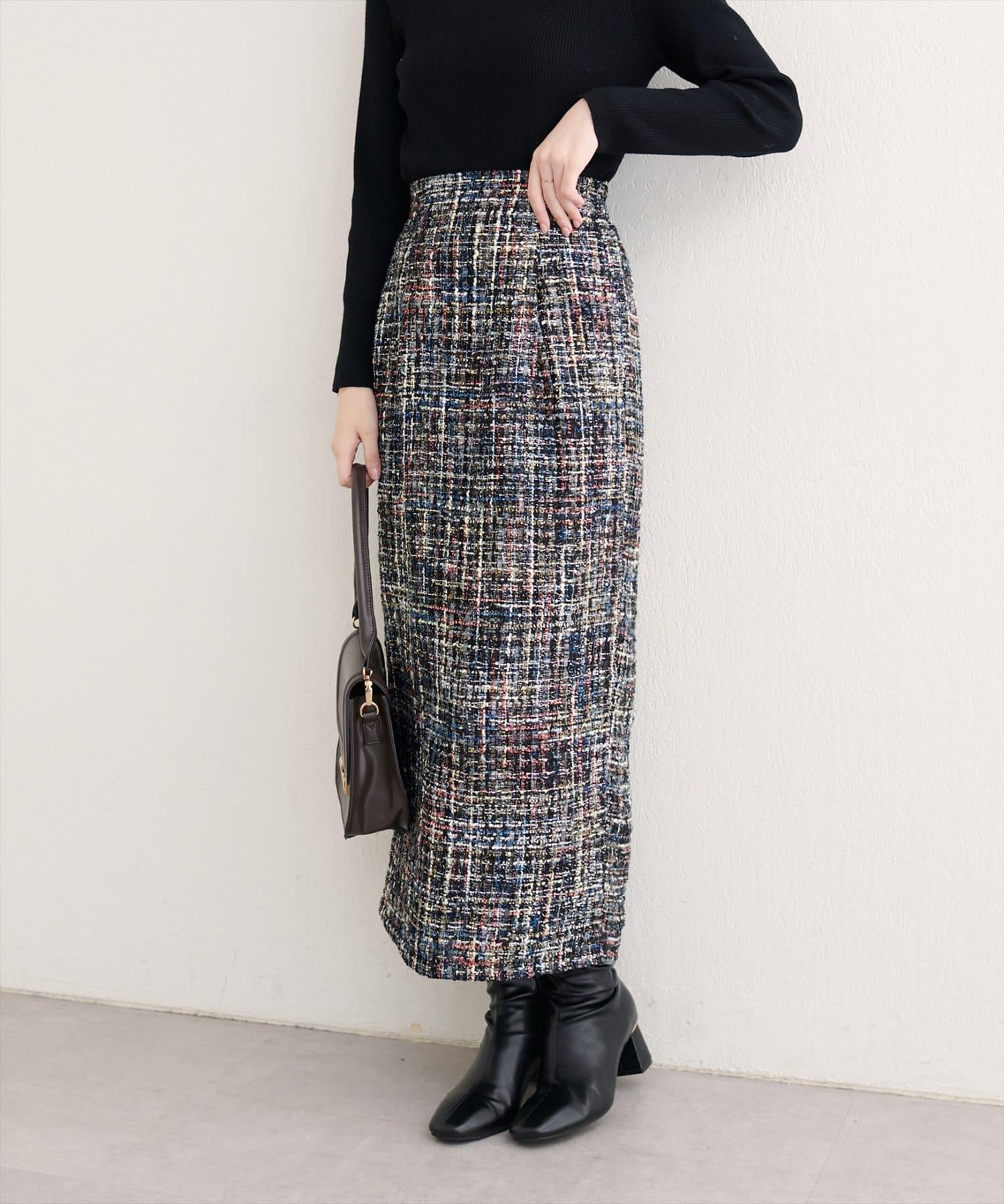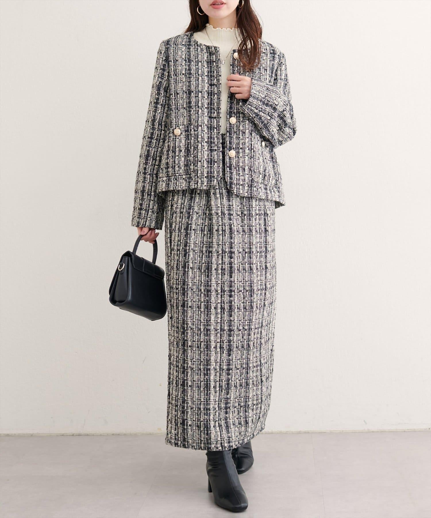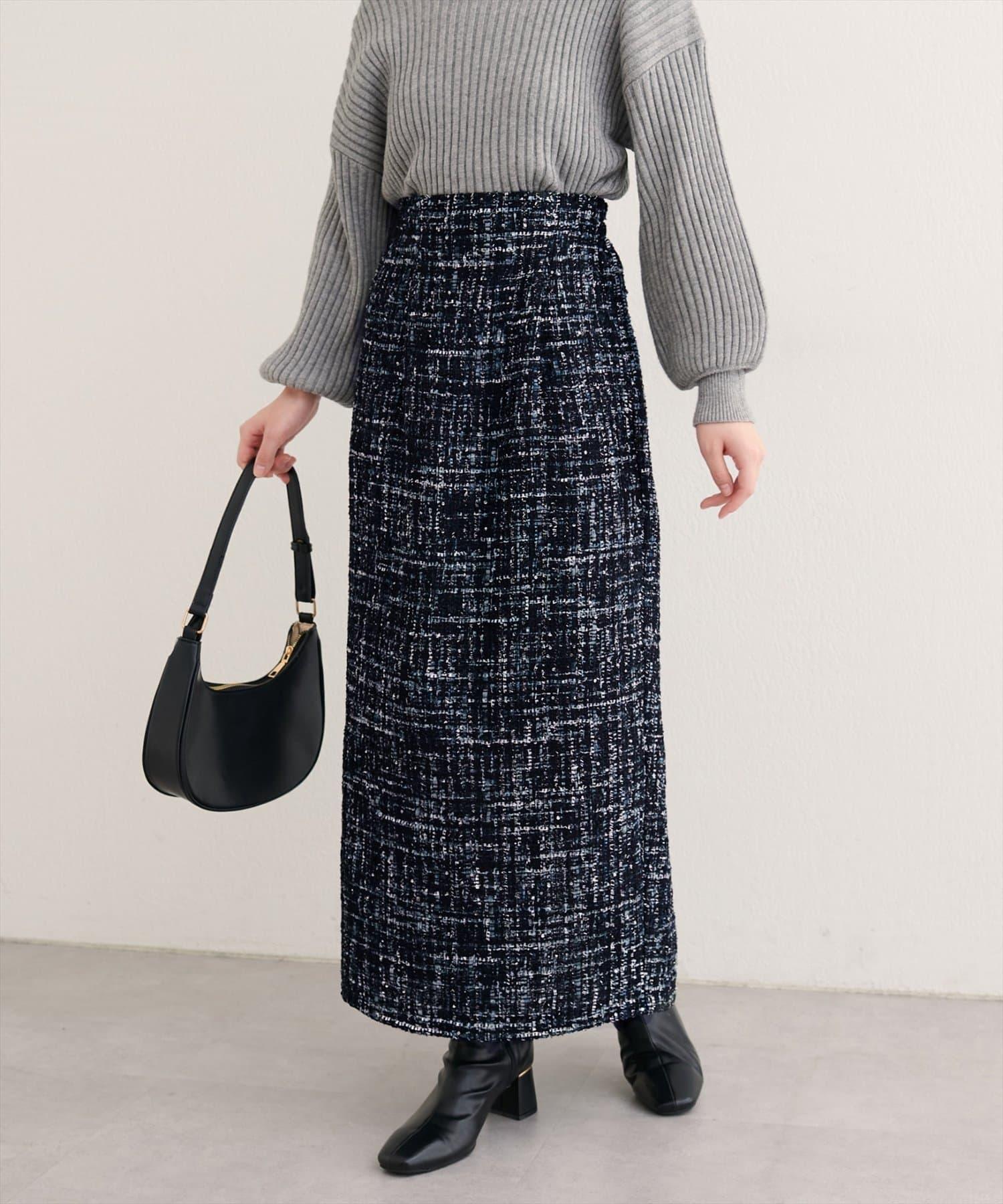 MIX 粗花呢高腰緊身裙將古典氣息與現代輪廓相結合。