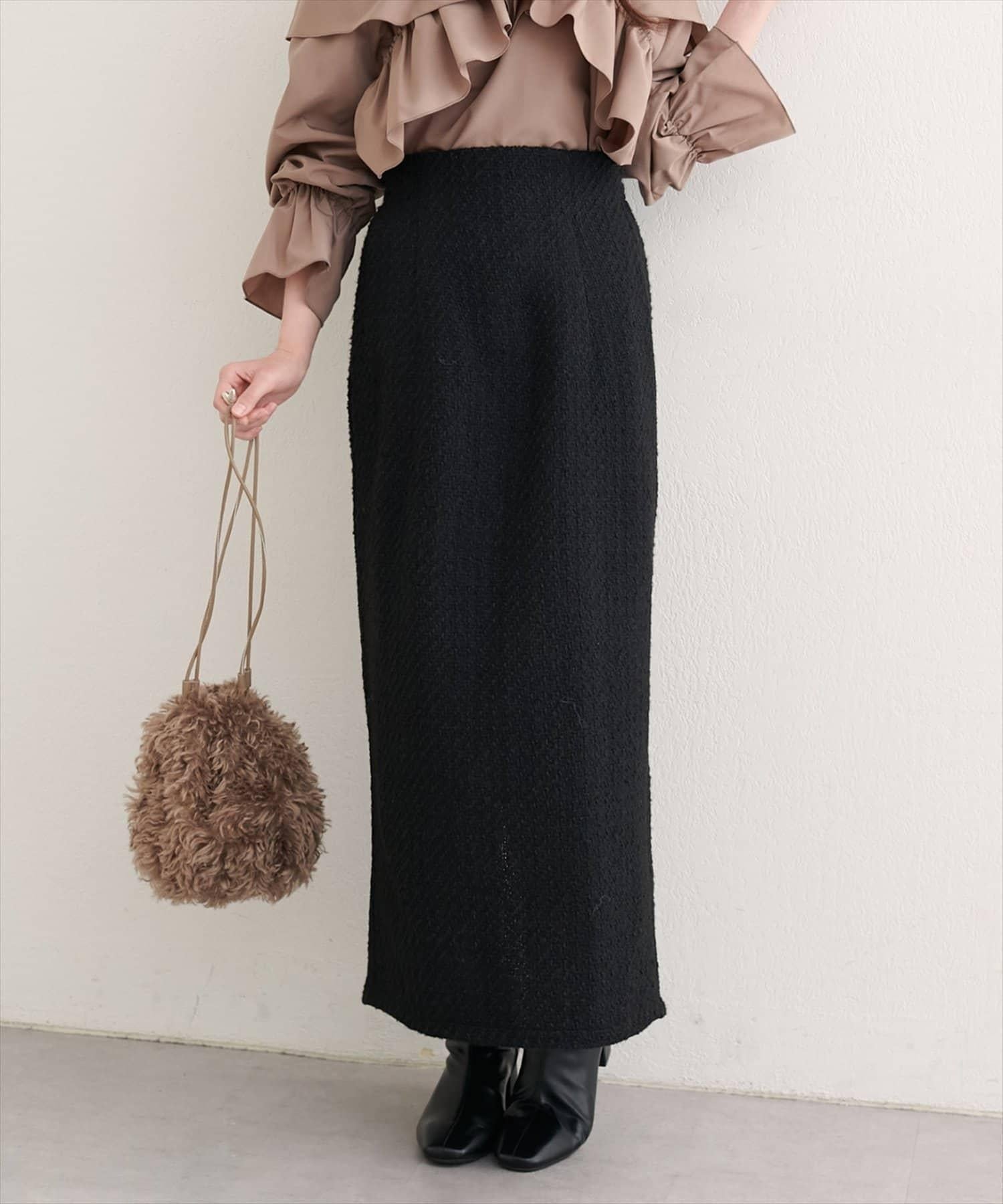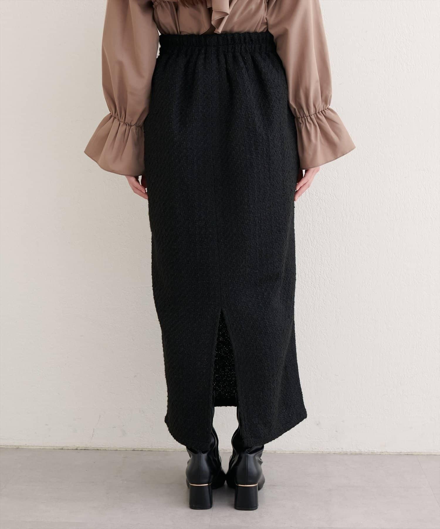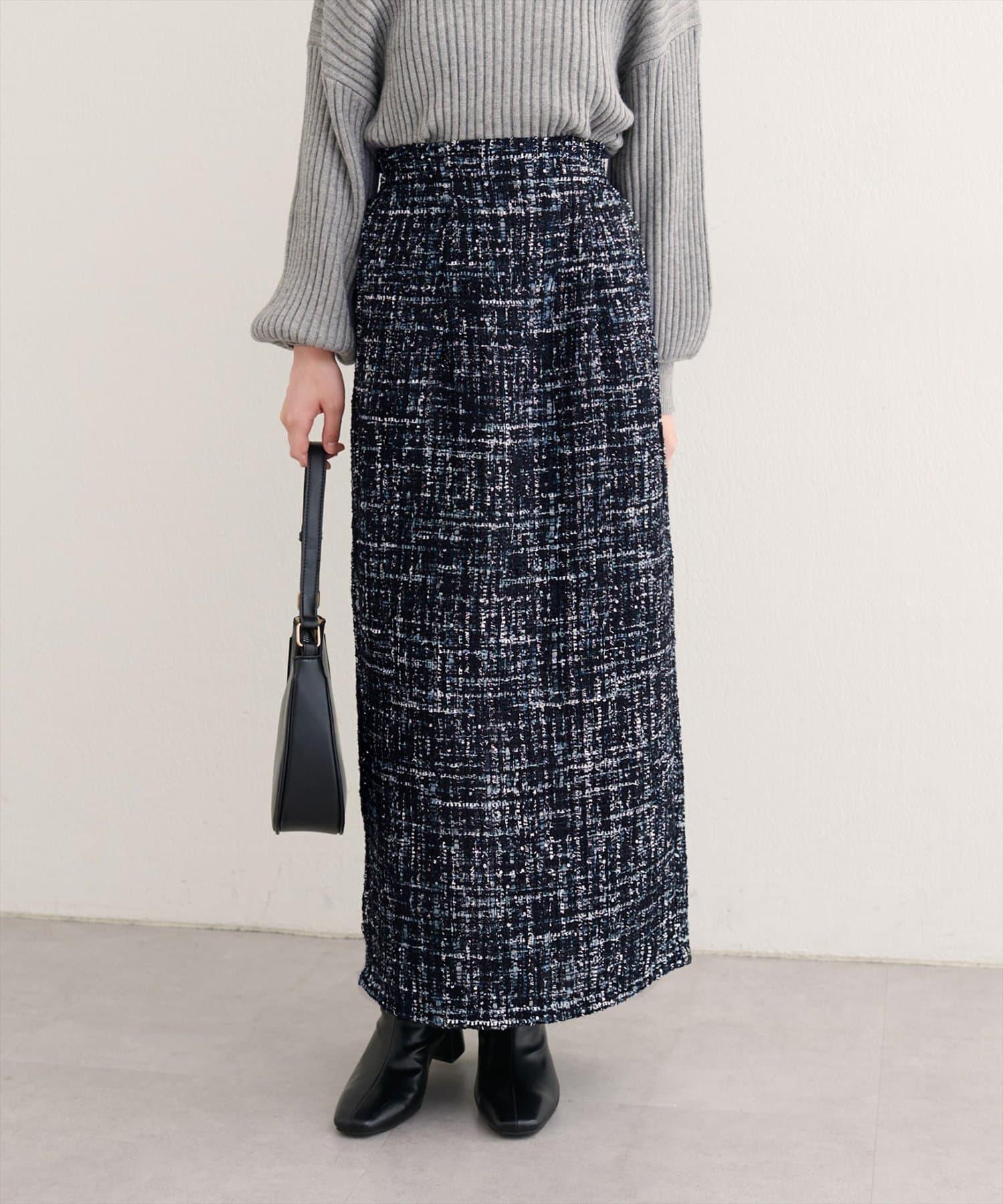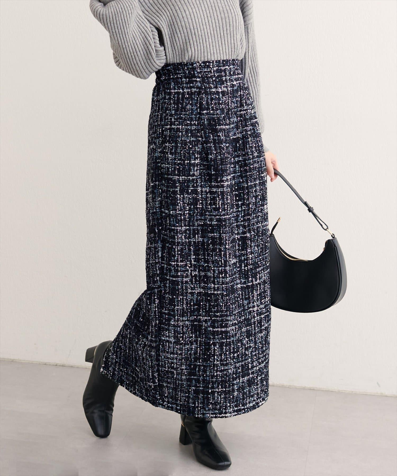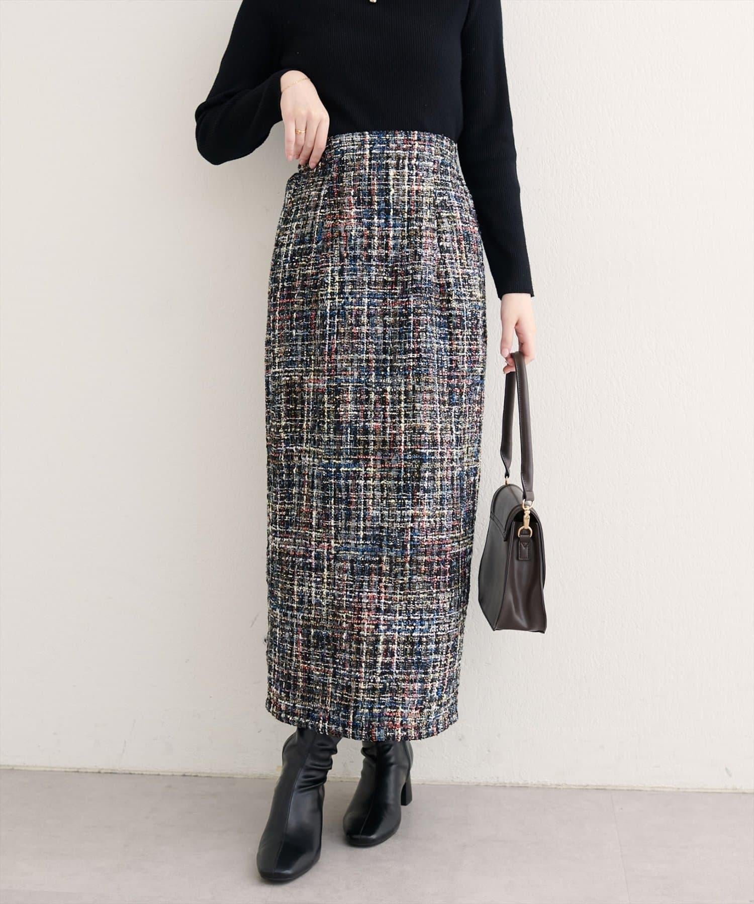 MIX 粗花呢高腰緊身裙將古典氣息與現代輪廓相結合。