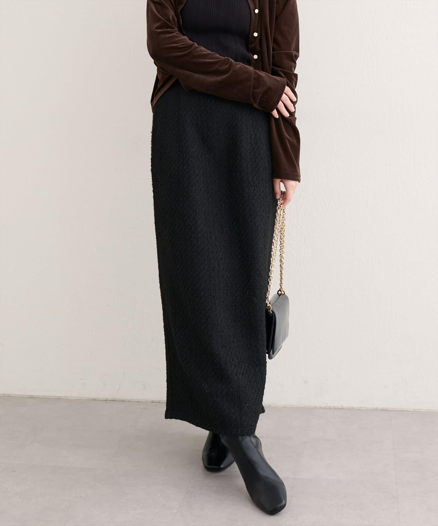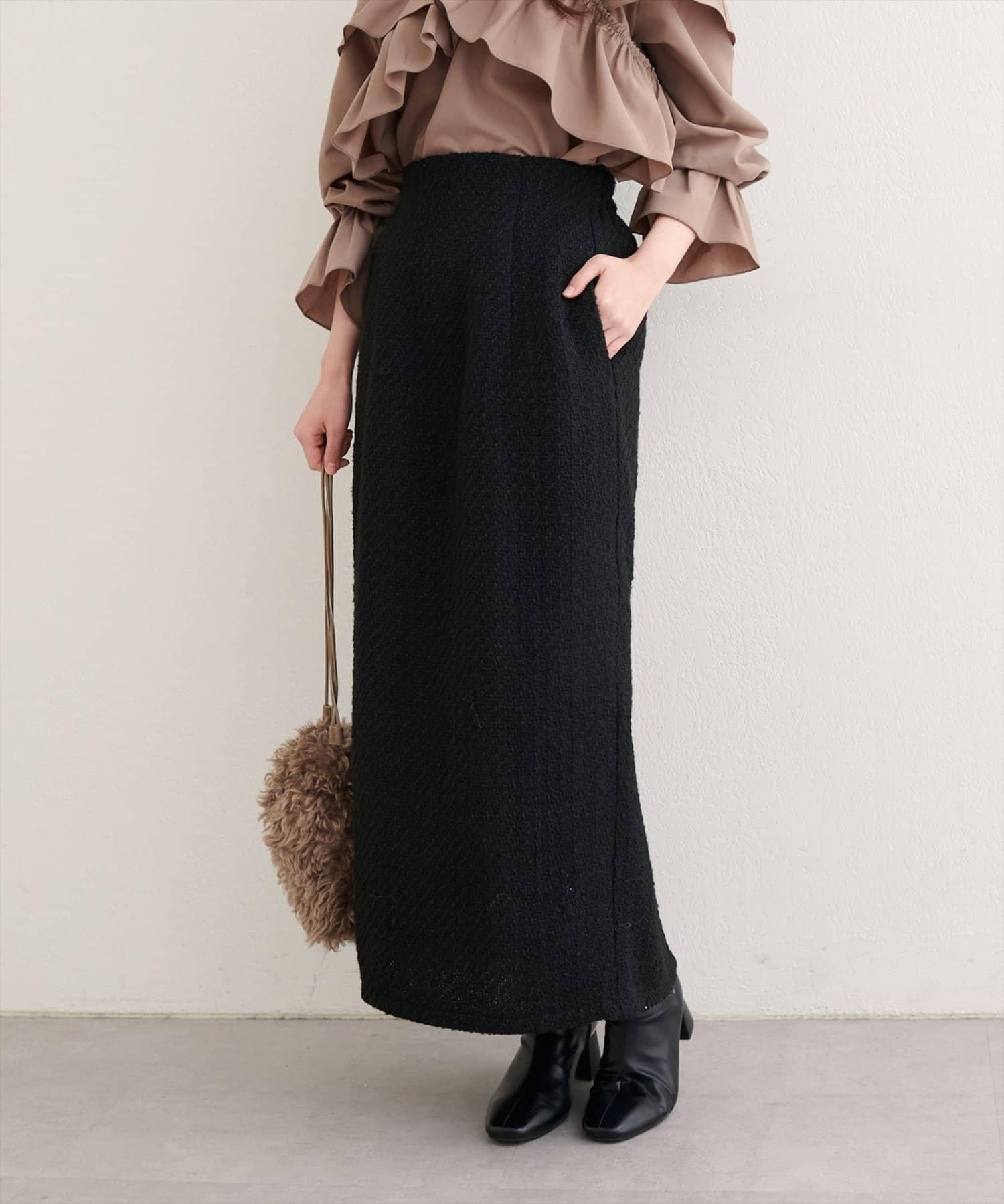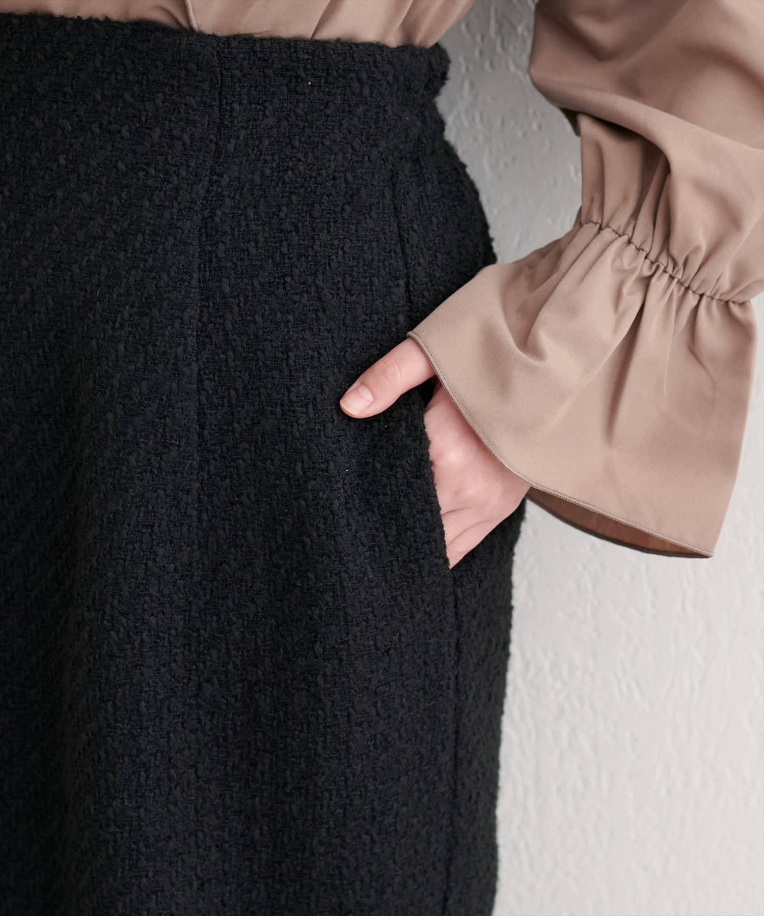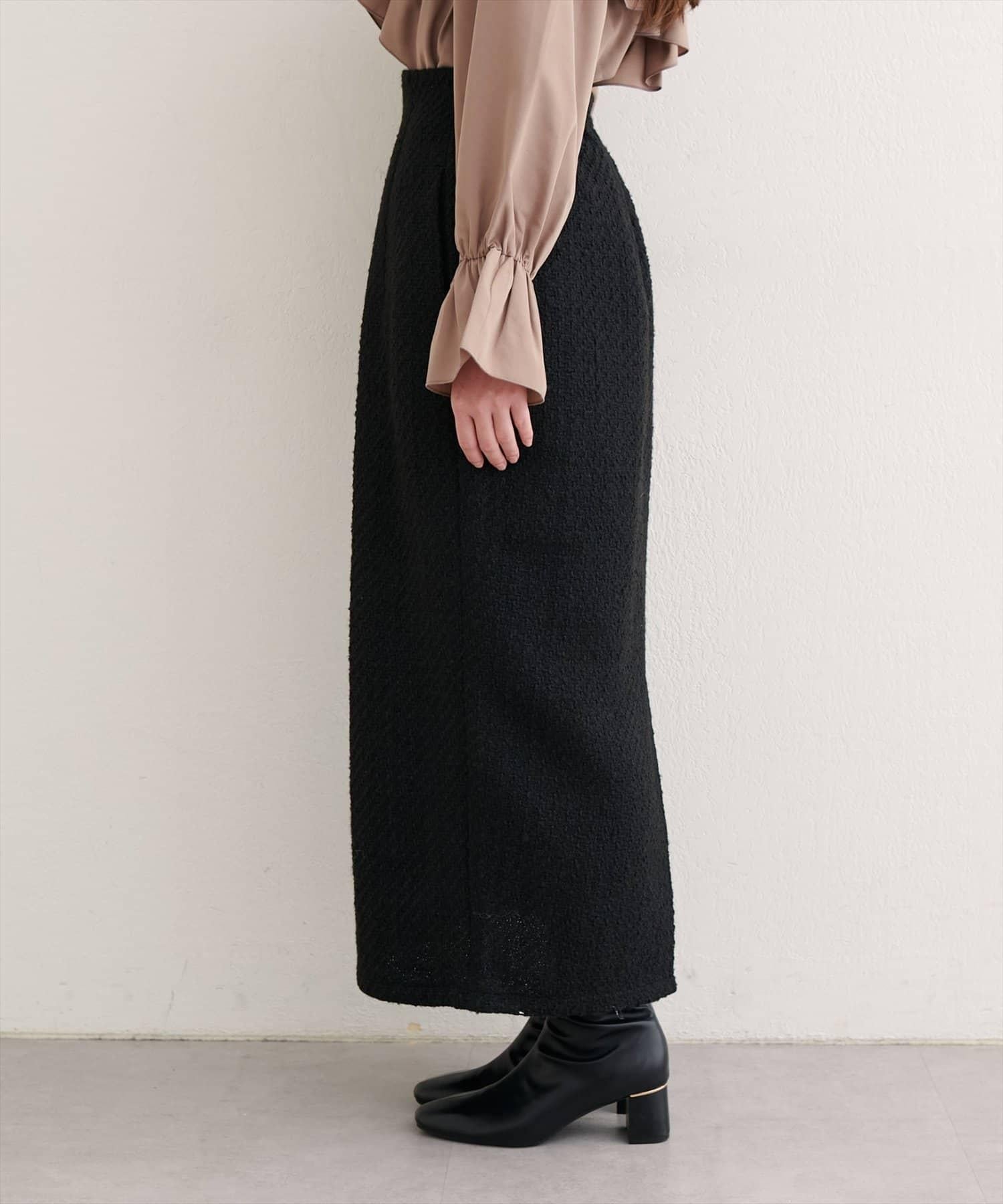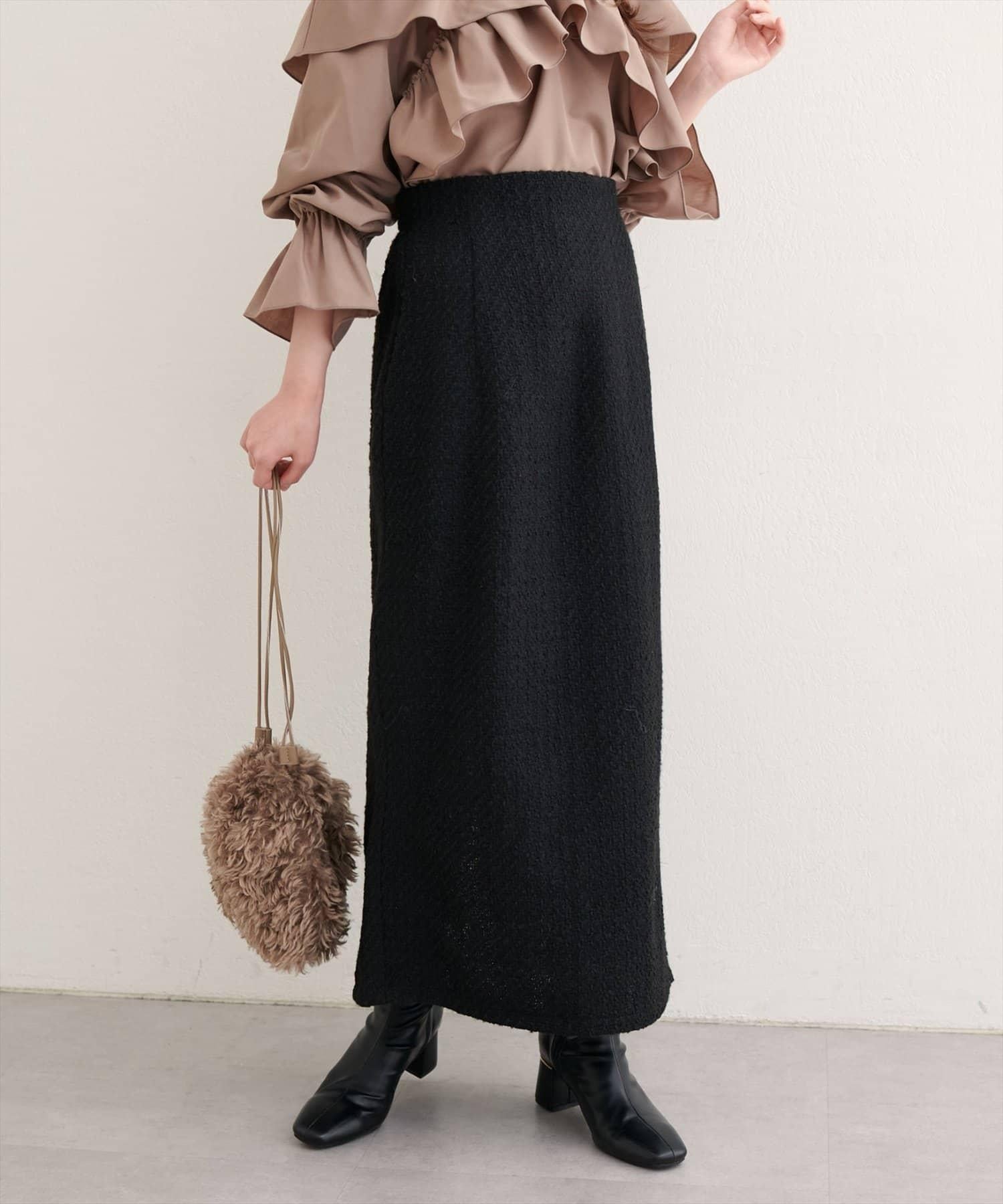 MIX 粗花呢高腰緊身裙將古典氣息與現代輪廓相結合。