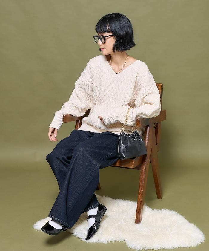 V 領針織衫給人以成熟、輕鬆的感覺。