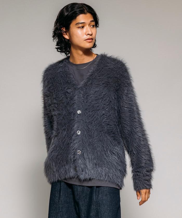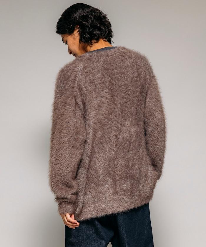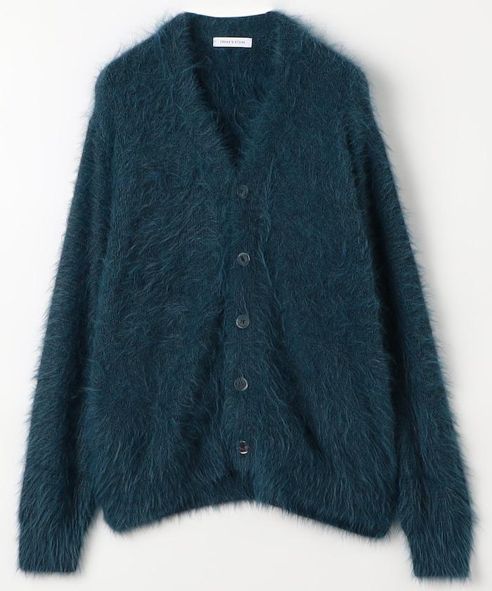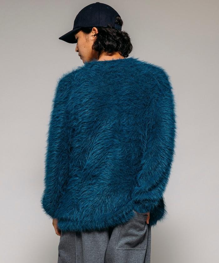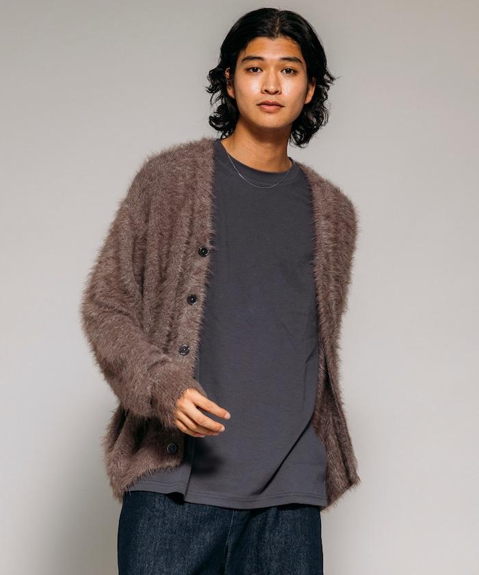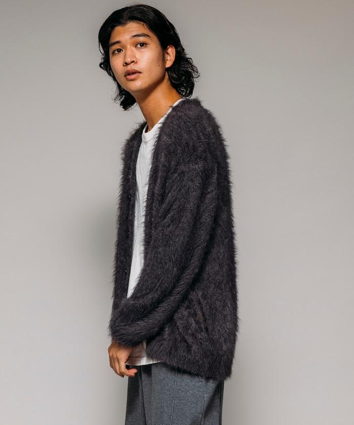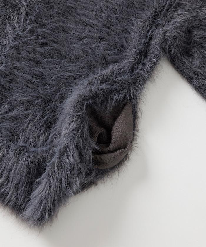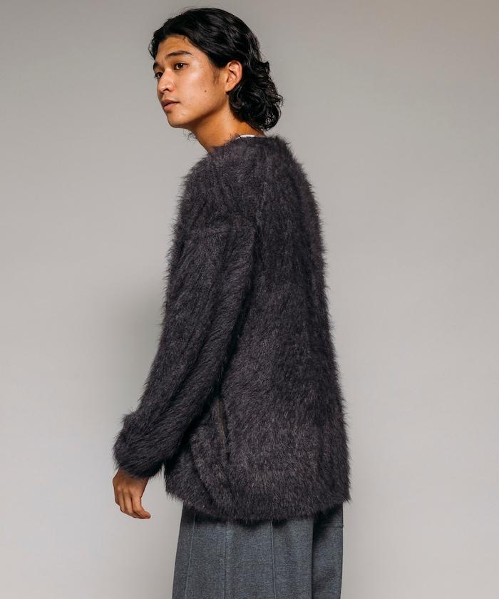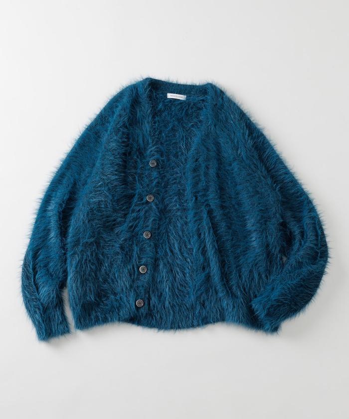 混色羽毛V領開衫
