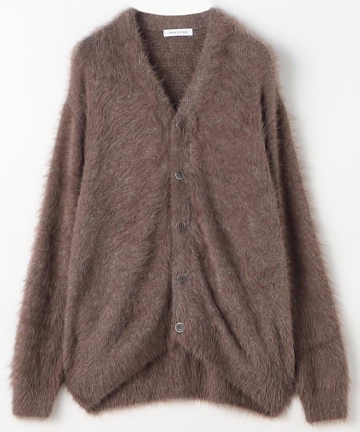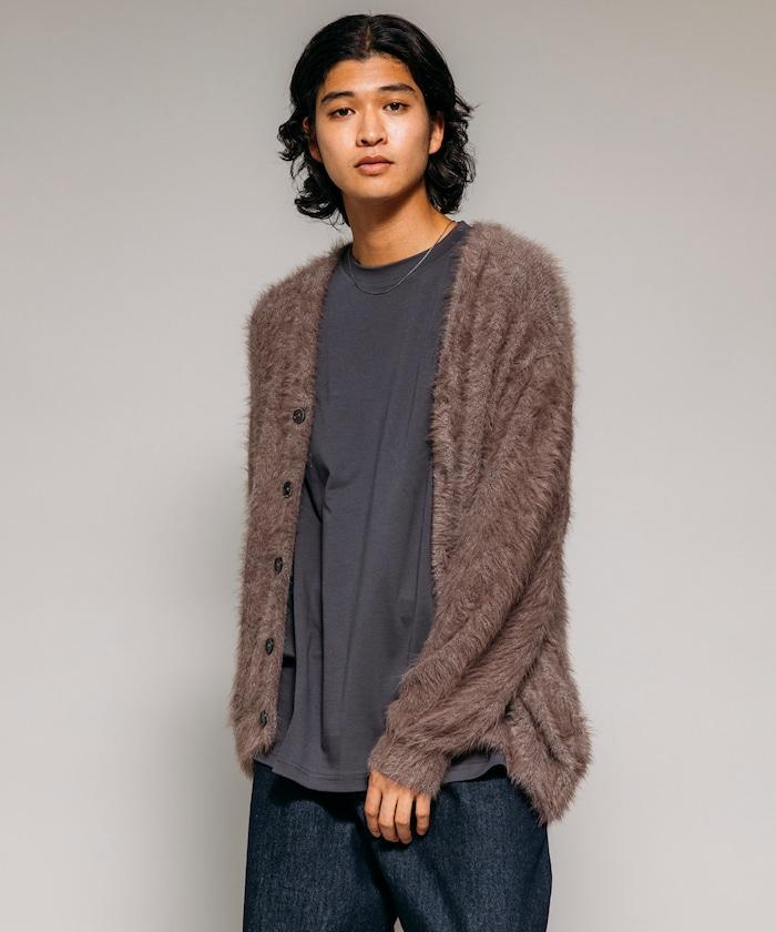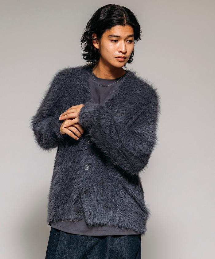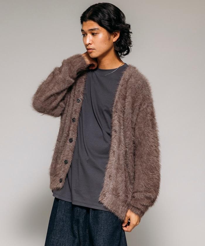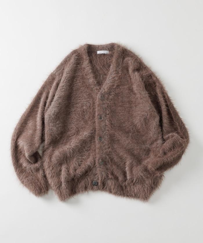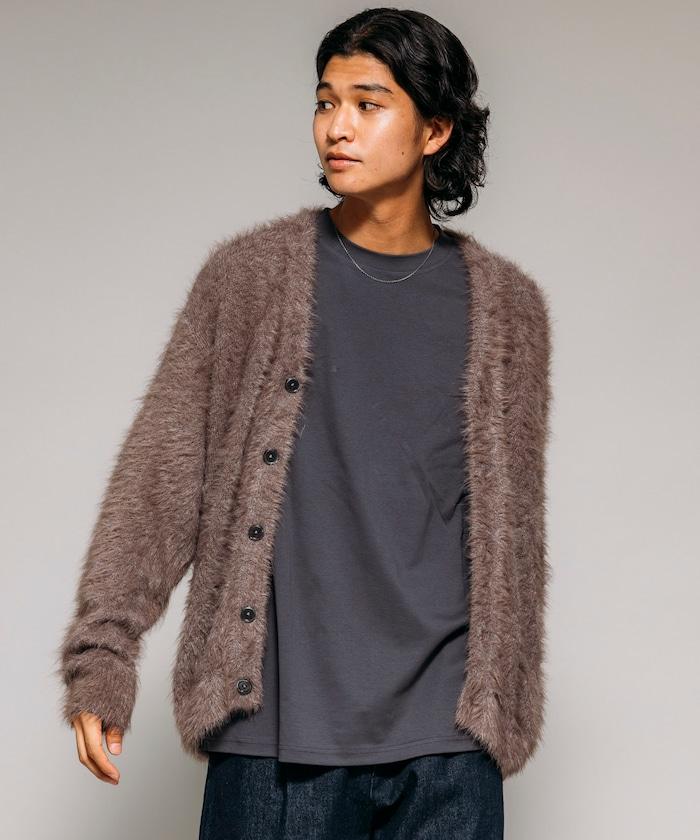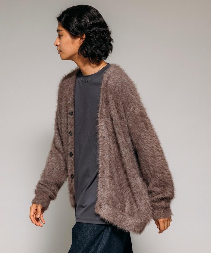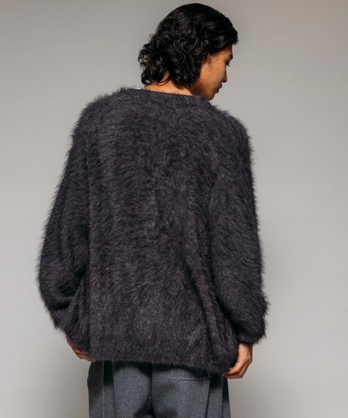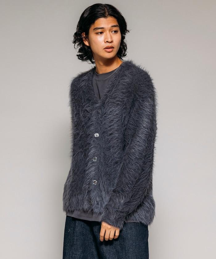 混色羽毛V領開衫