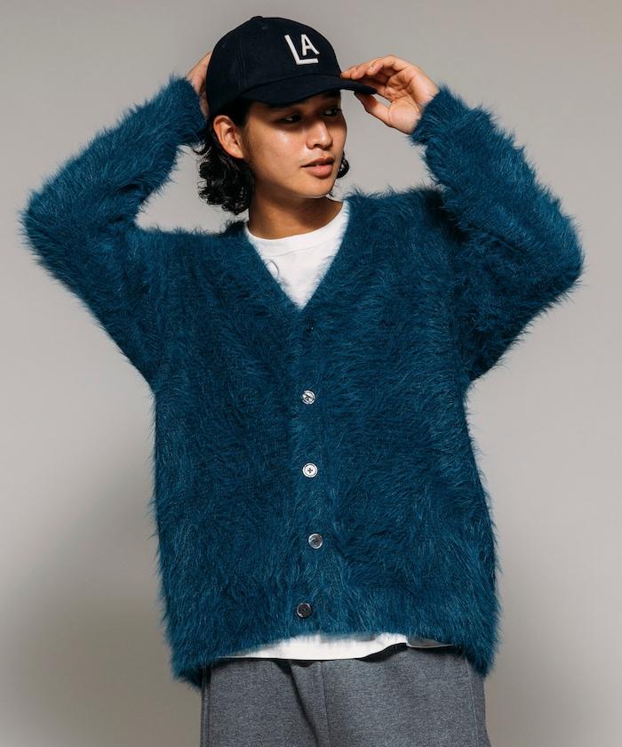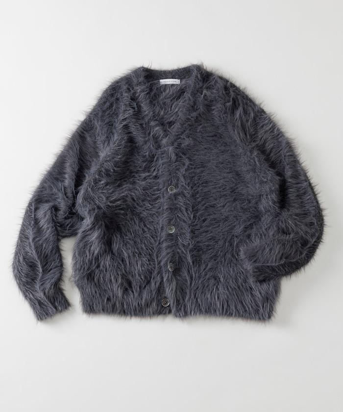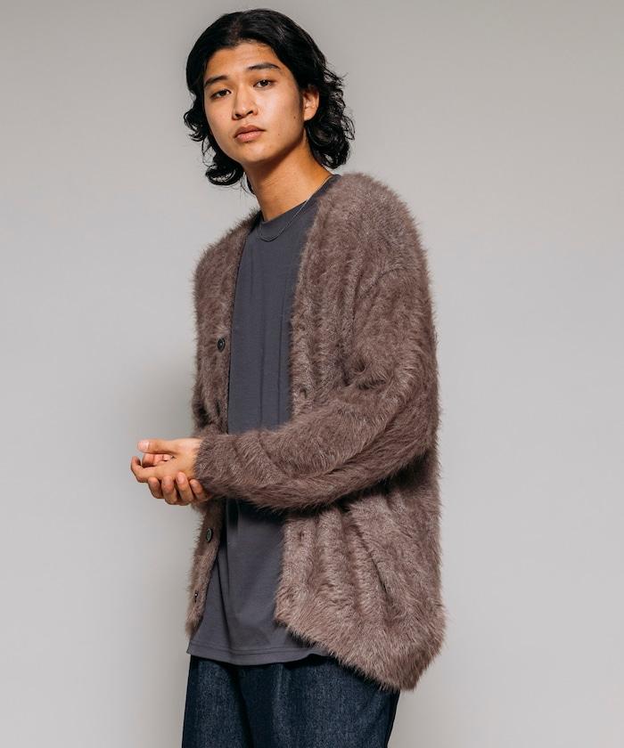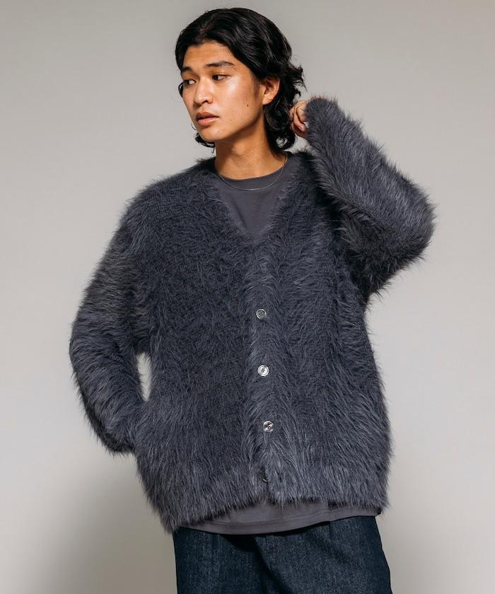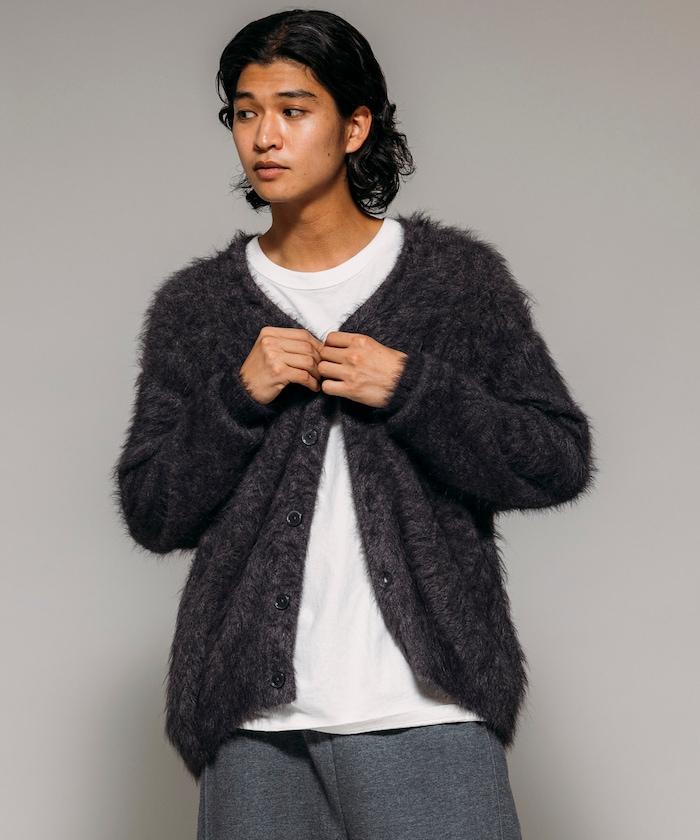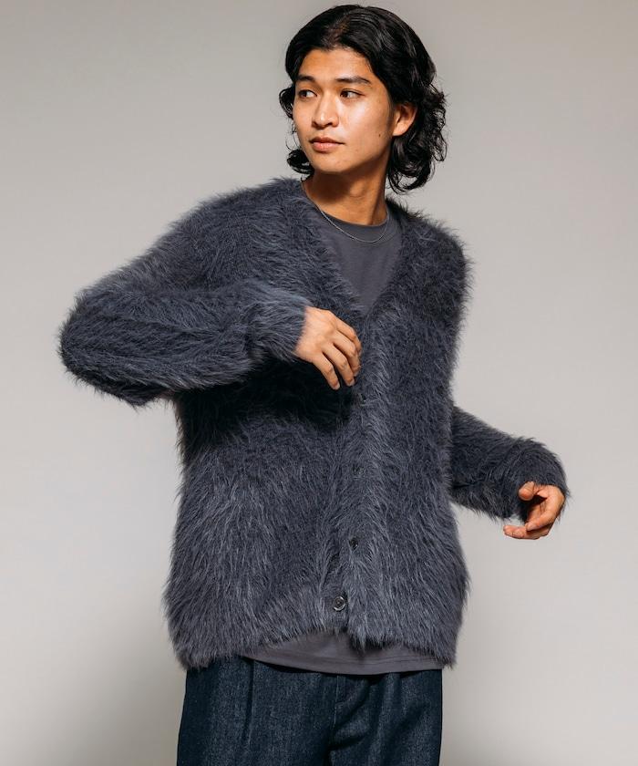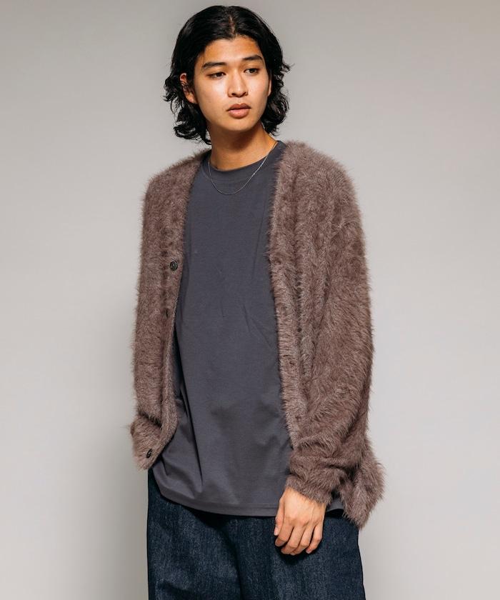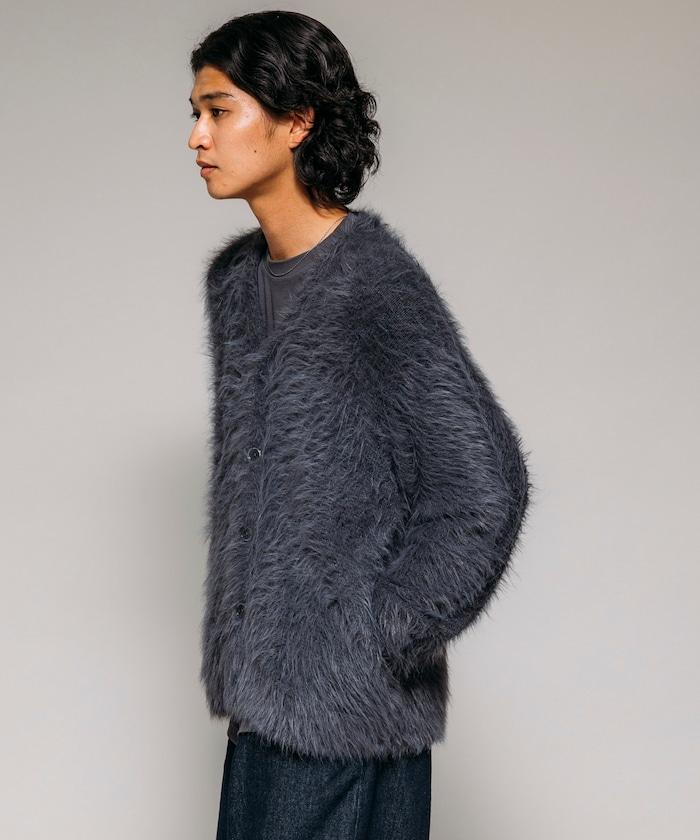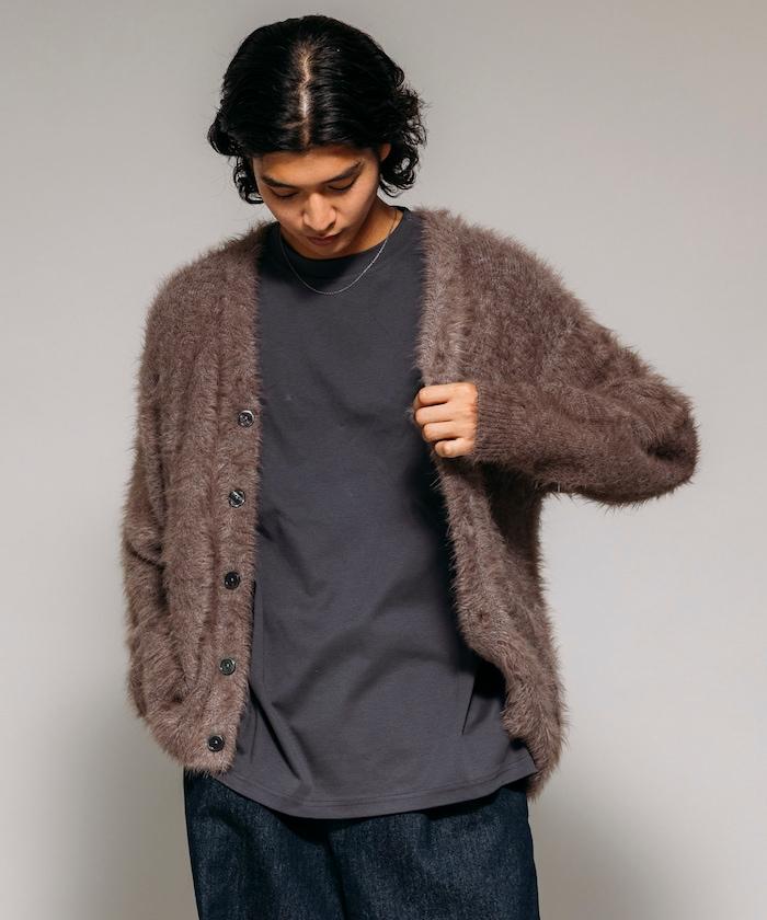 混色羽毛V領開衫