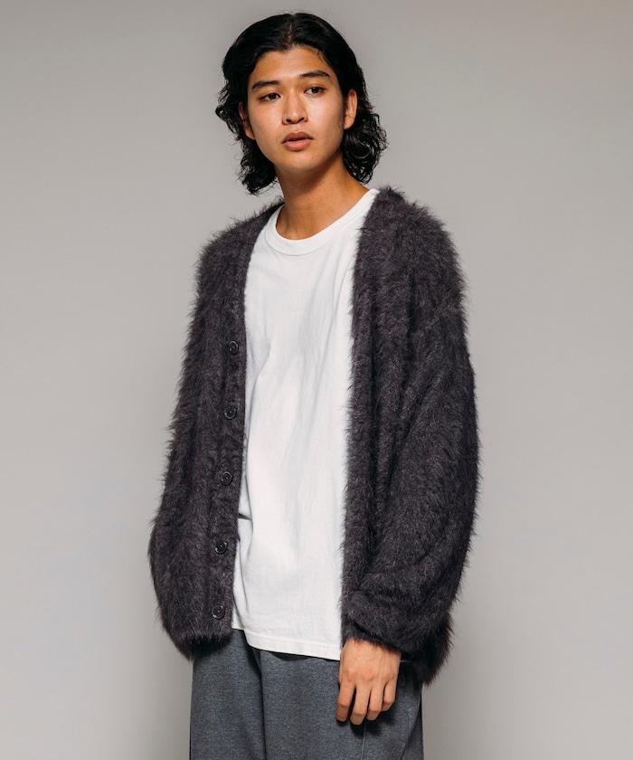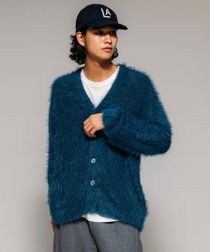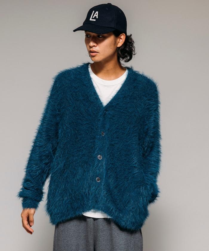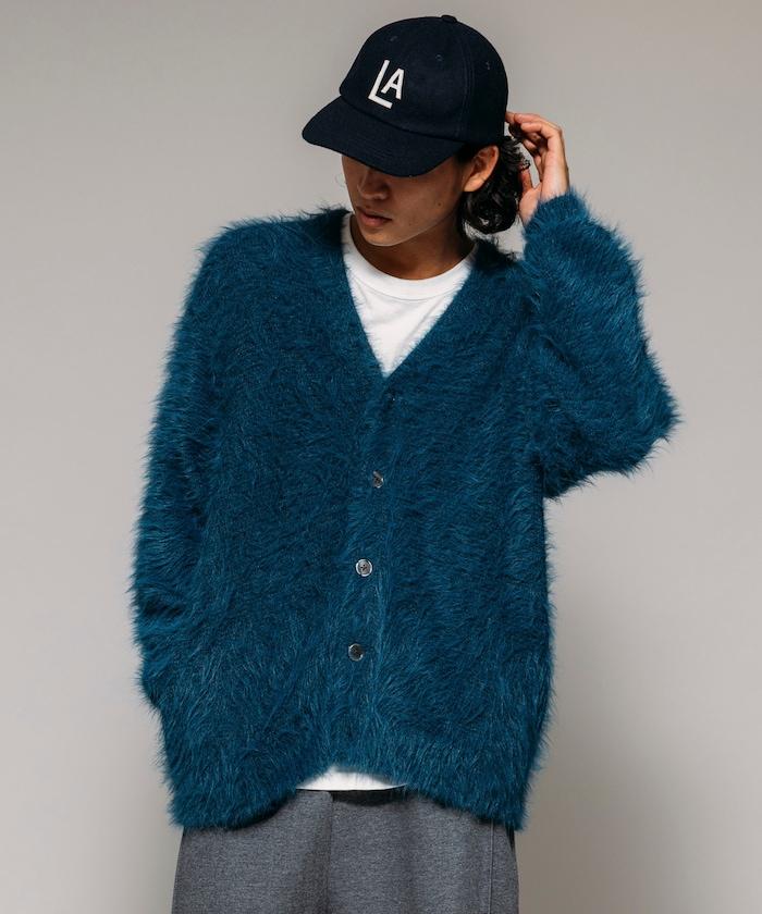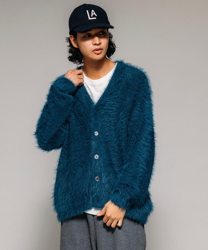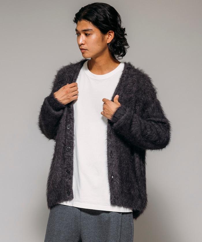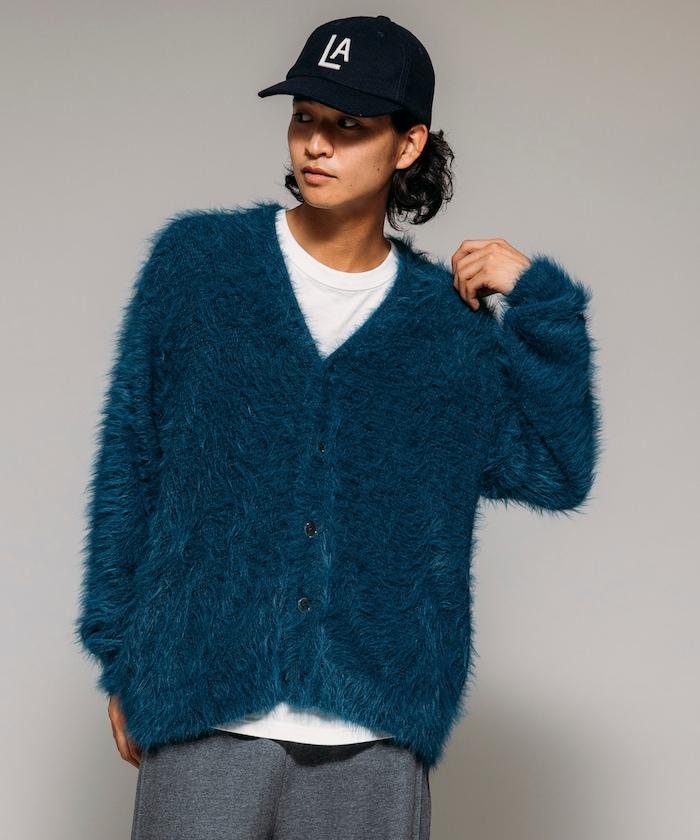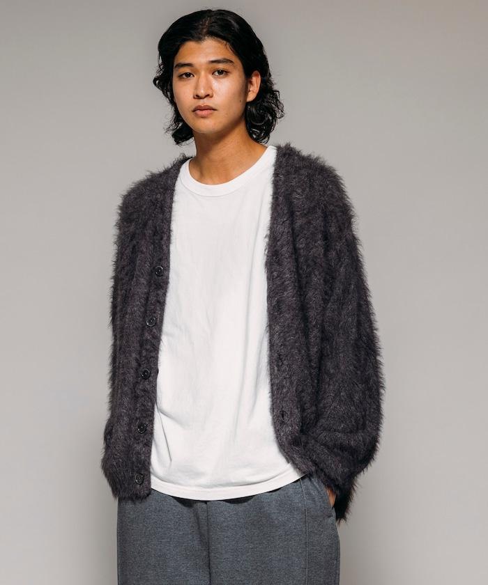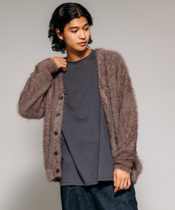 混色羽毛V領開衫