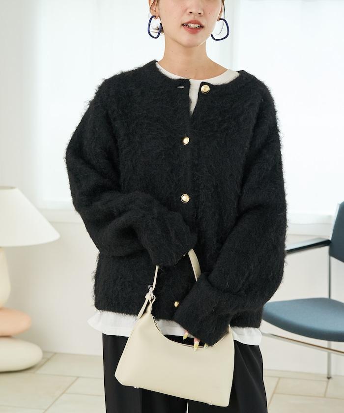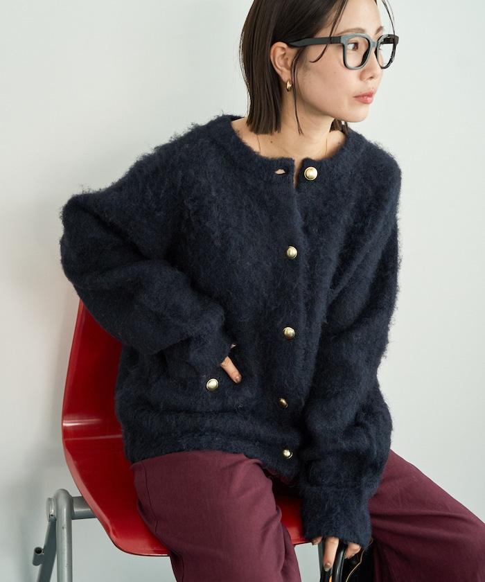 成人休閒開衫,採用蓬鬆毛茸茸的面料和金色紐扣,時尚感十足。