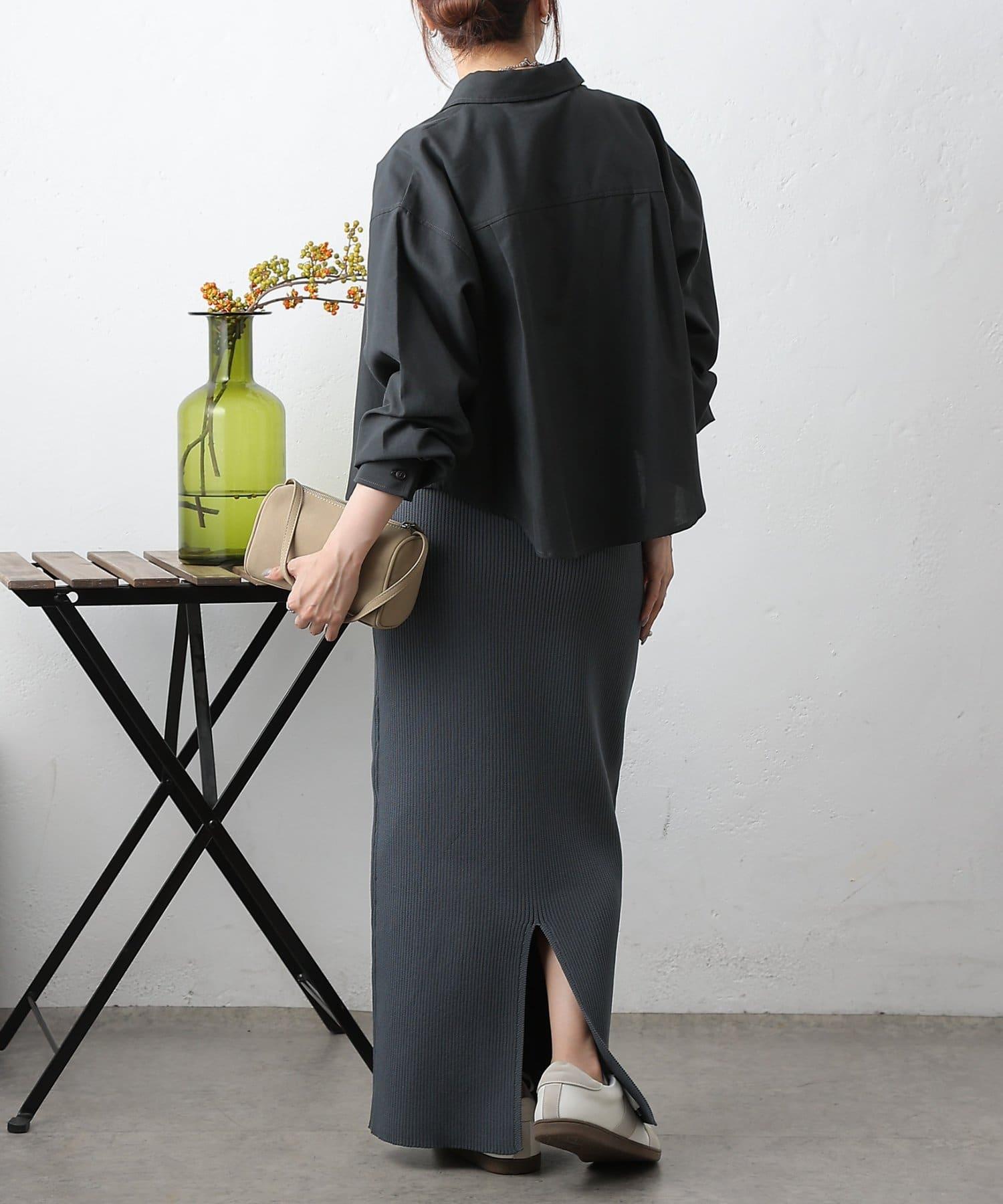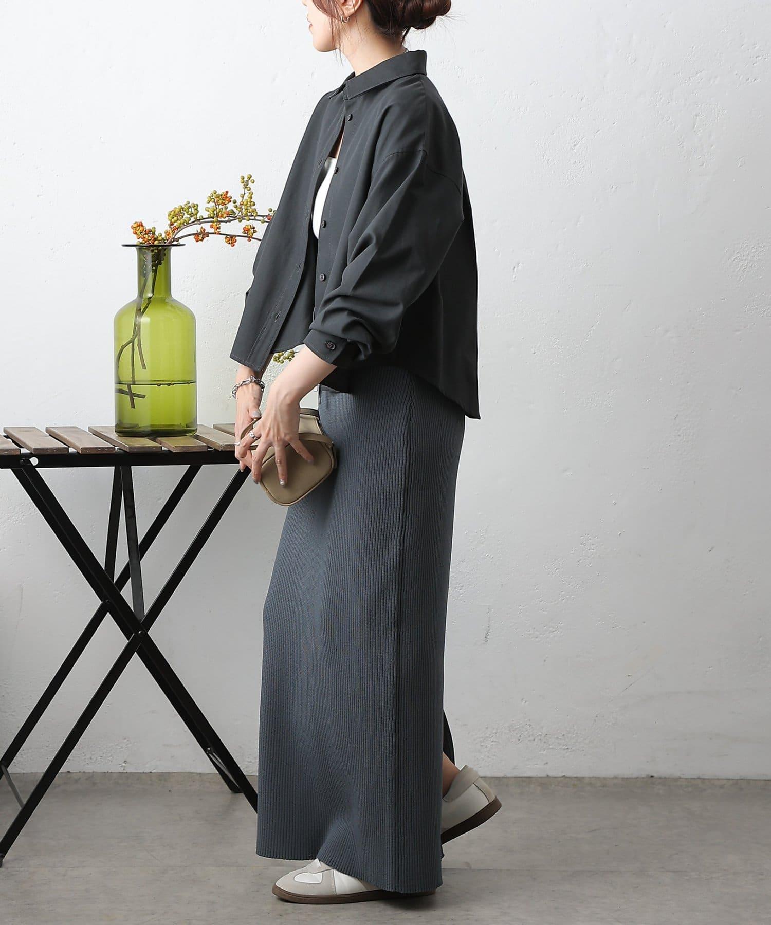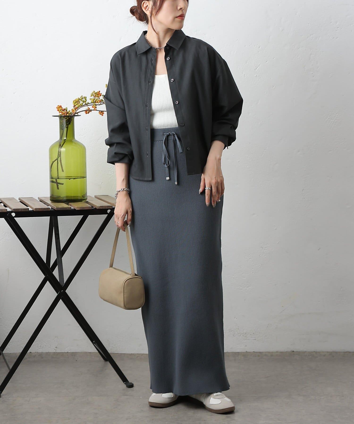 這款羅紋 I 字裙採用厚薄適中、柔軟的酯紗面料,外觀優雅。