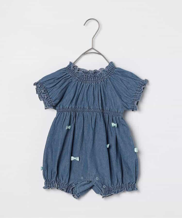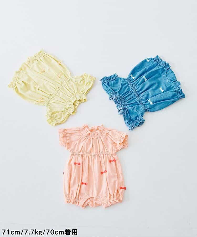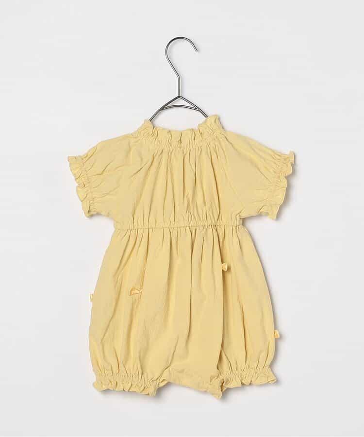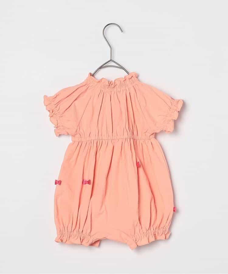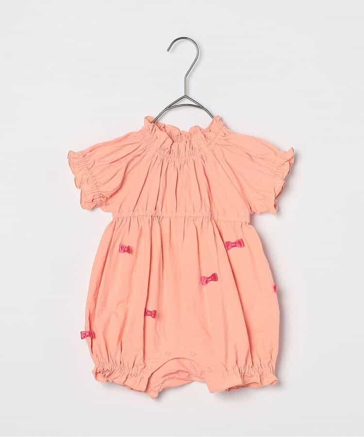 短袖連衣裙上有許多醒目的小蝴蝶結。