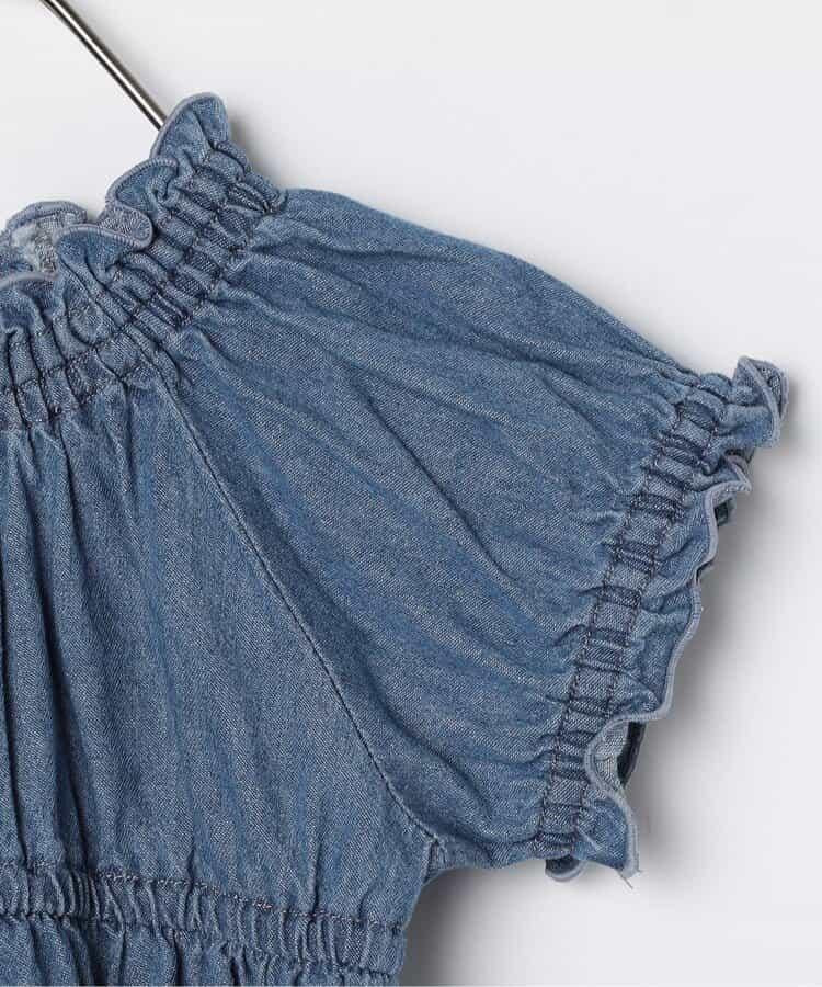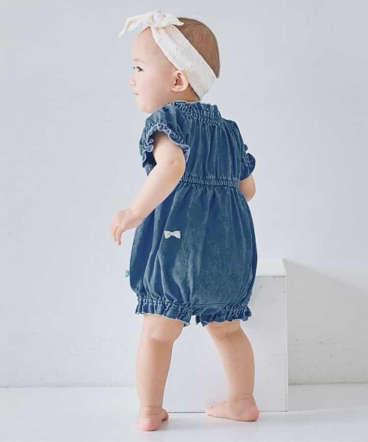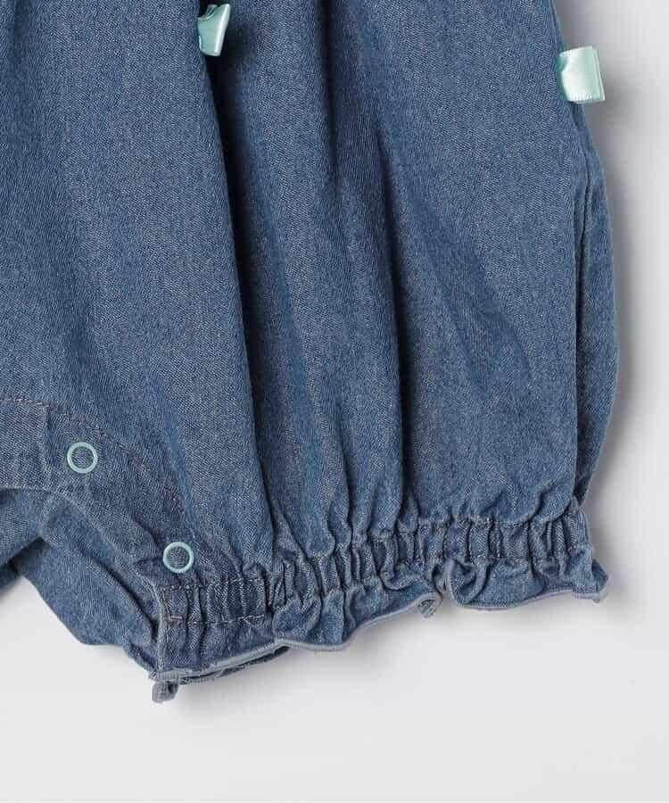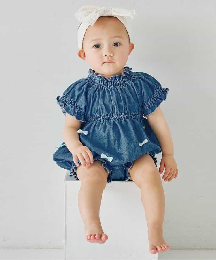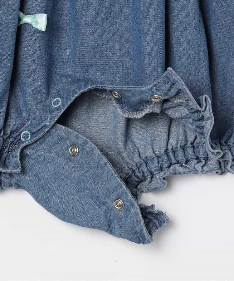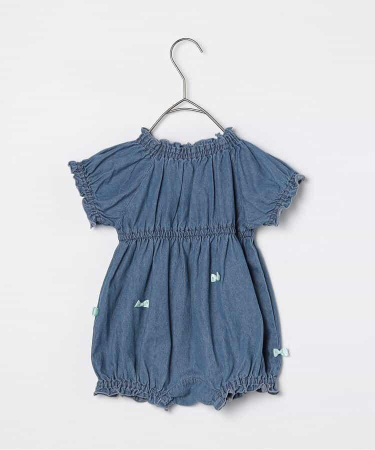 短袖連衣裙上有許多醒目的小蝴蝶結。