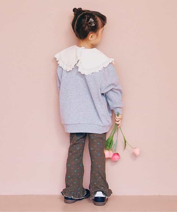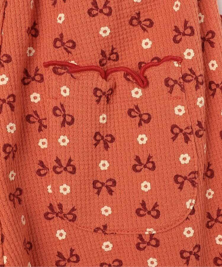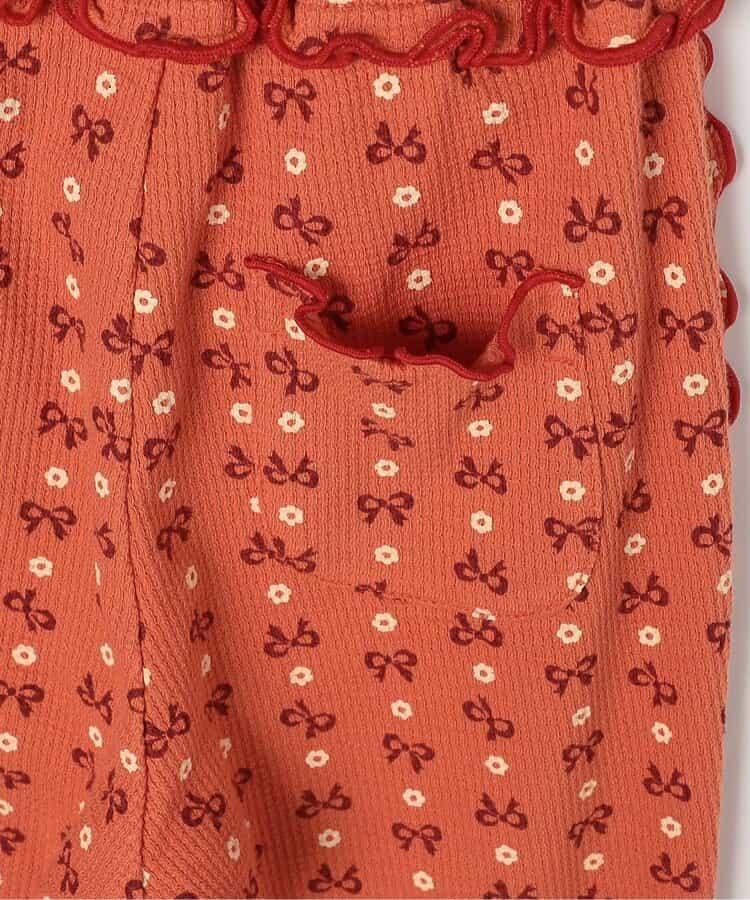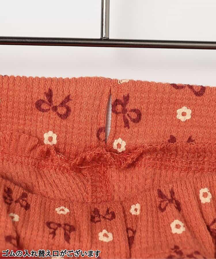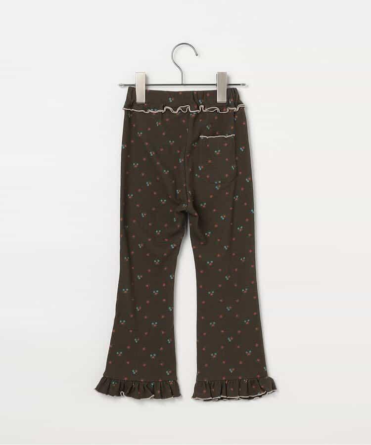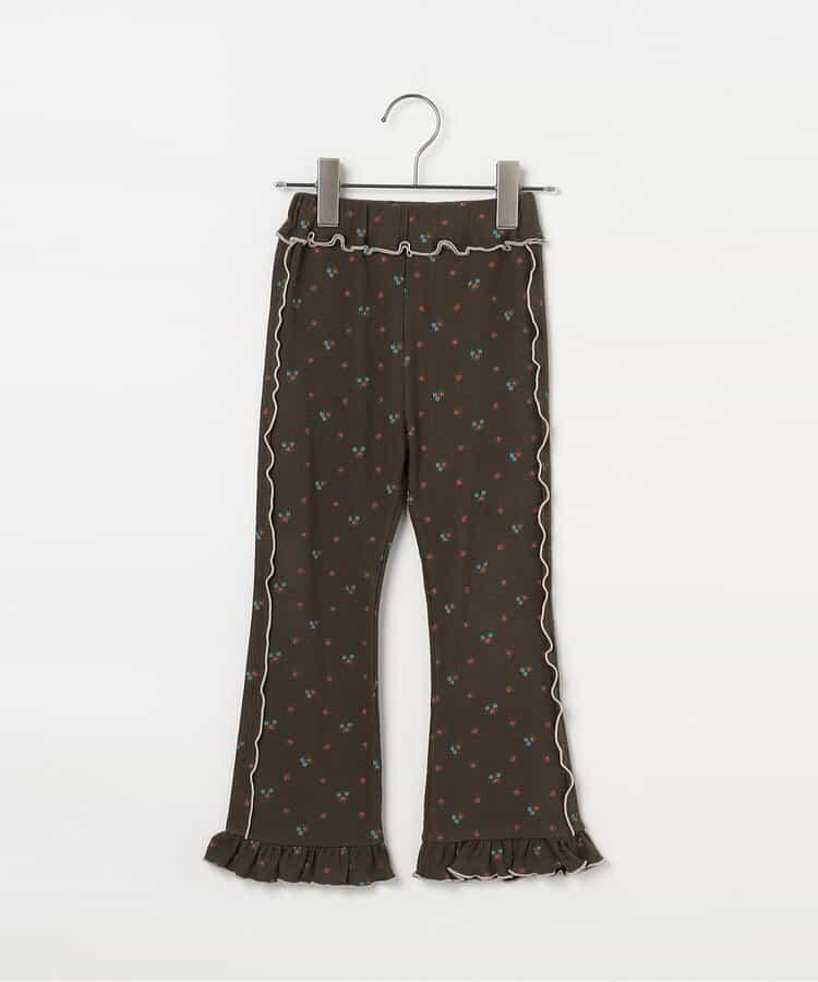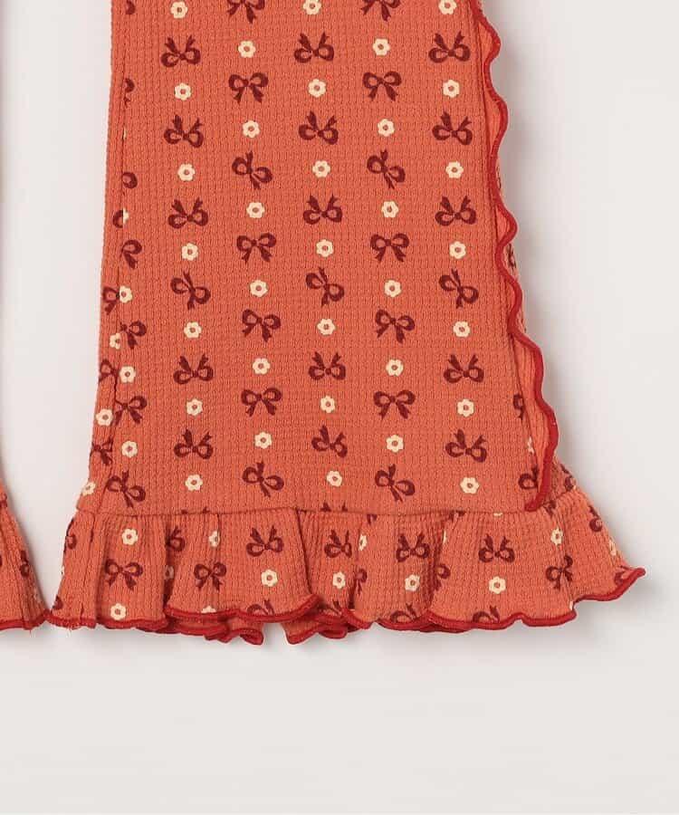 滿版圖案彈力華夫格下襬荷葉邊喇叭褲