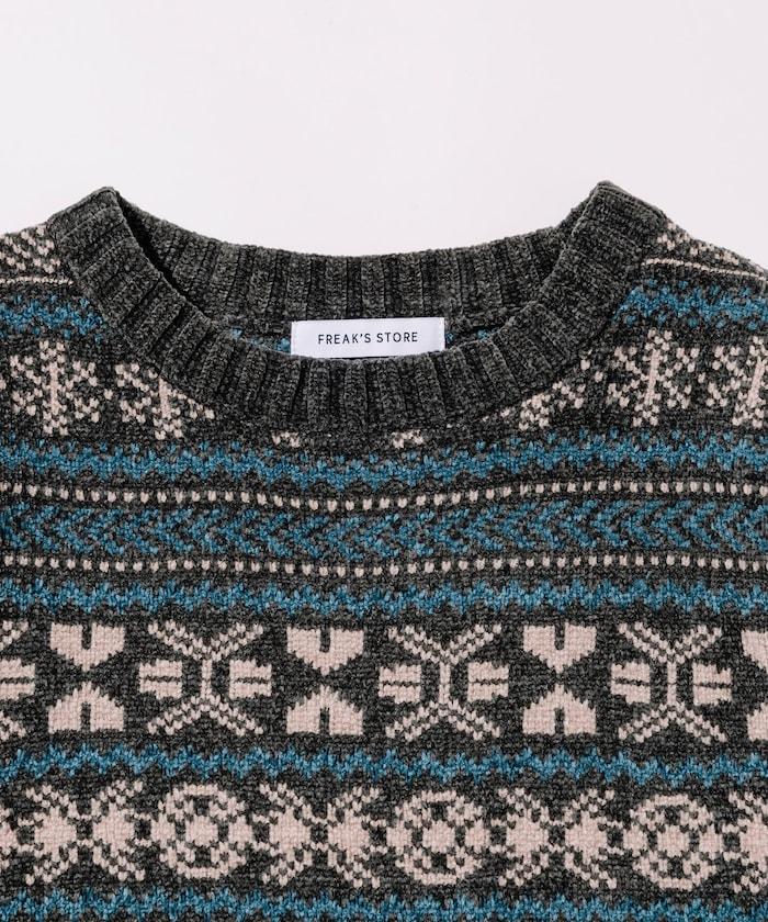 採用編織紗線這種時髦的面料製作的仙女織圖案圓領針織衫。