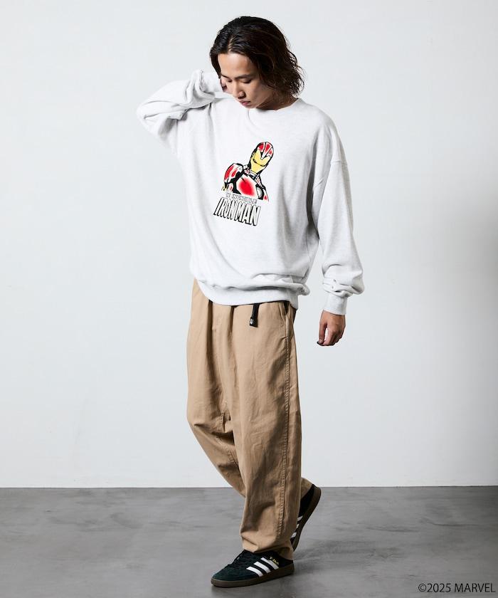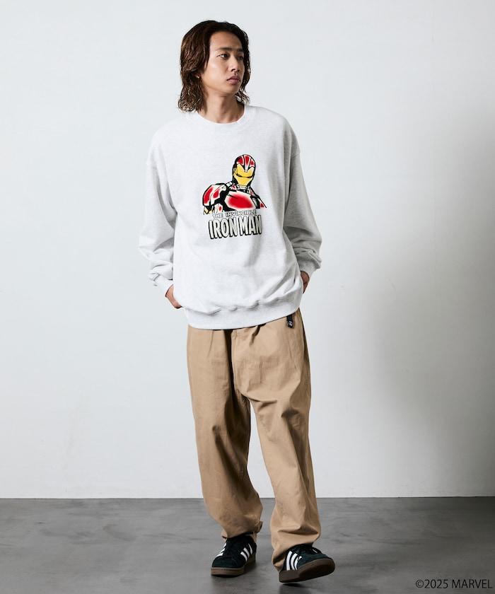 運動衫正面印有 "MARVEL"(漫威)人氣角色 "IRON MAN "的醒目圖案,極具存在感。