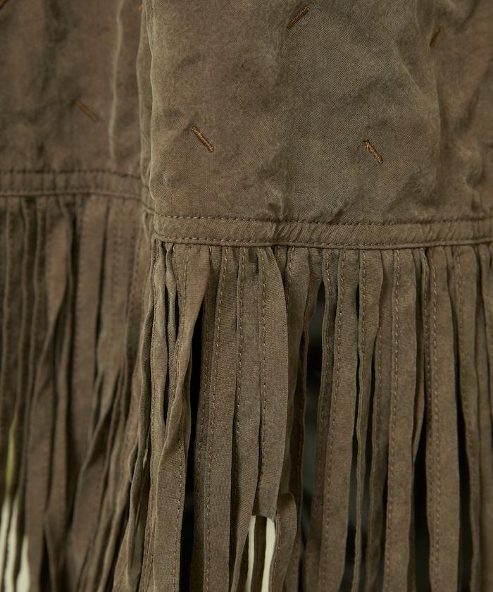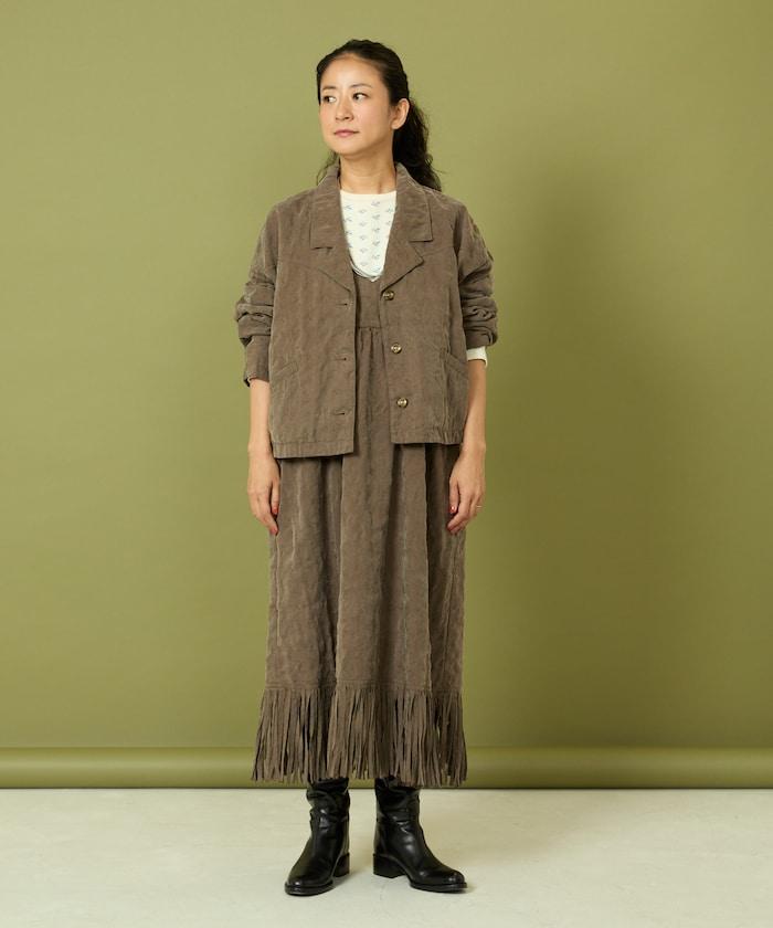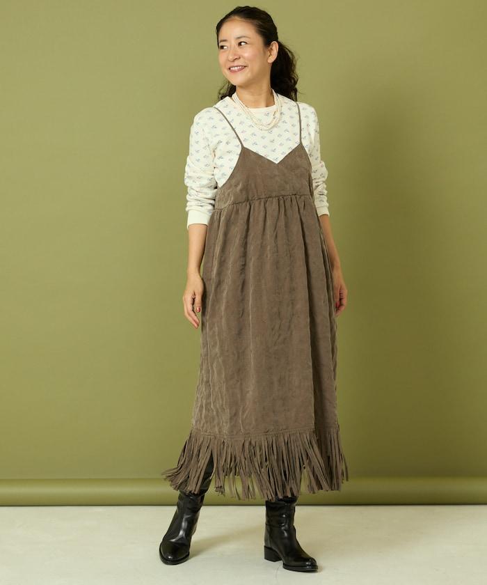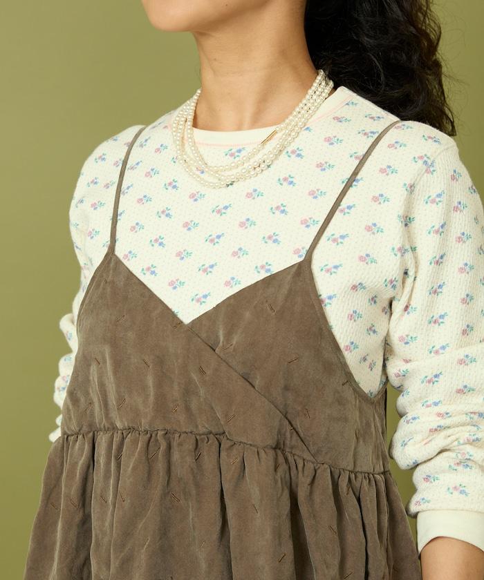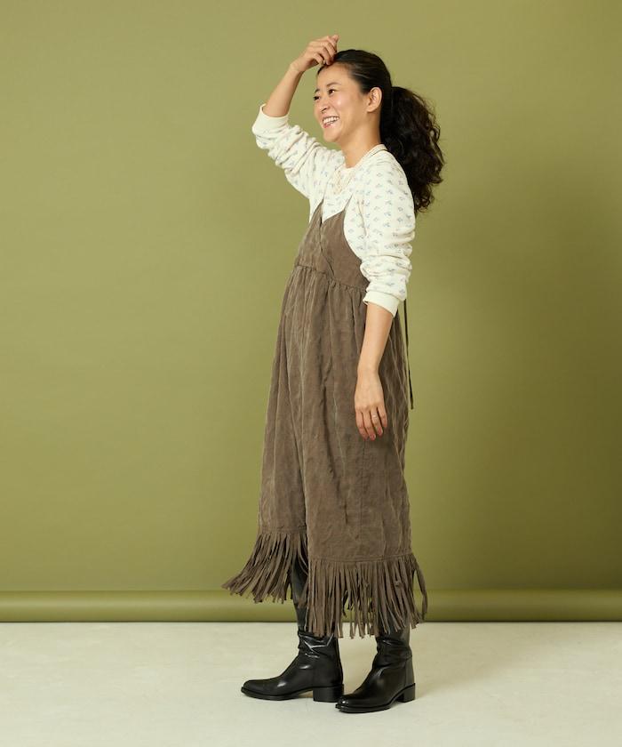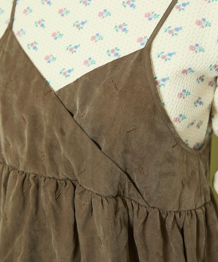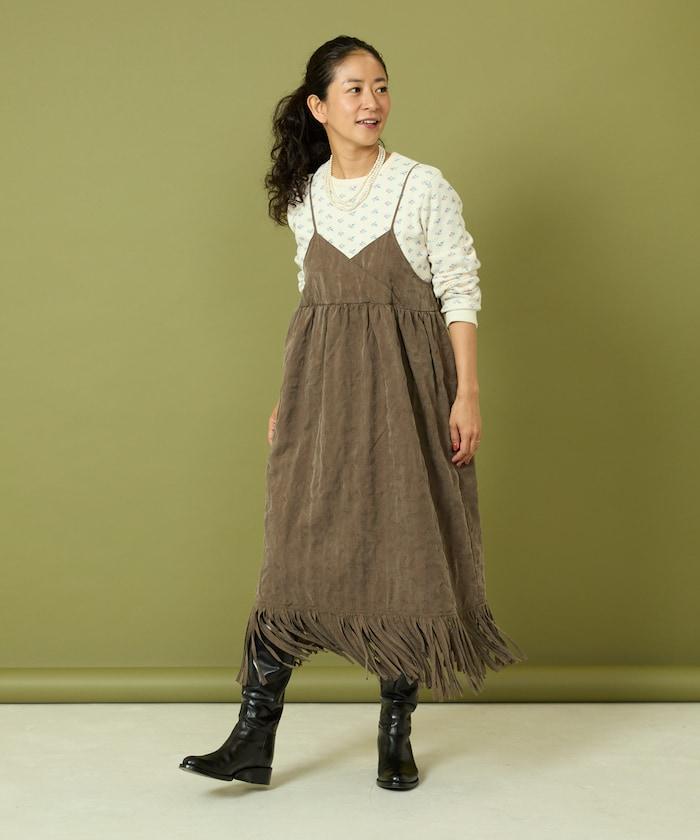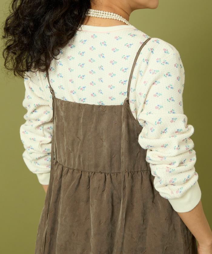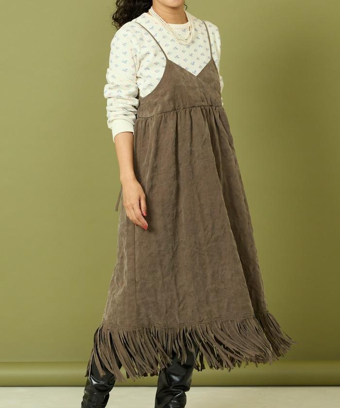 吊帶連衣裙,採用仿麂皮絨面料,打造時髦造型。