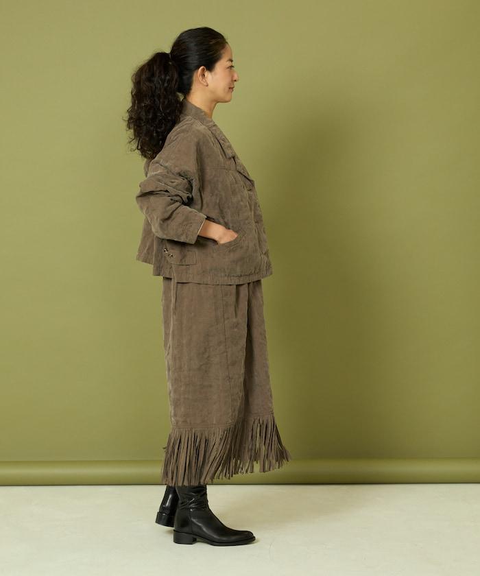 面料在縫製後經過水洗,使其呈現出獨特的皺紋和凹凸紋理,就像隨著時間推移而變質的舊絲綢一樣。