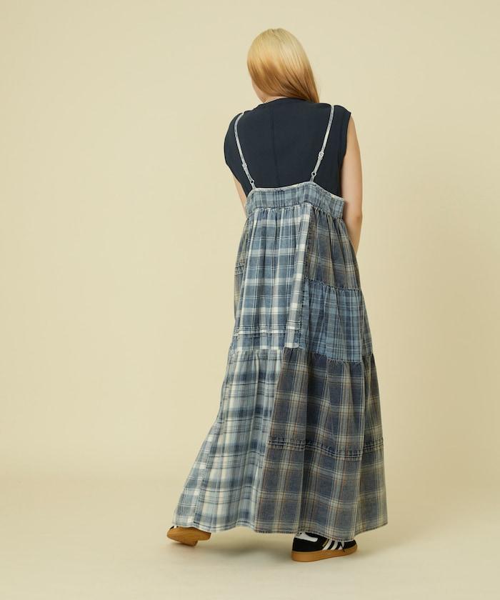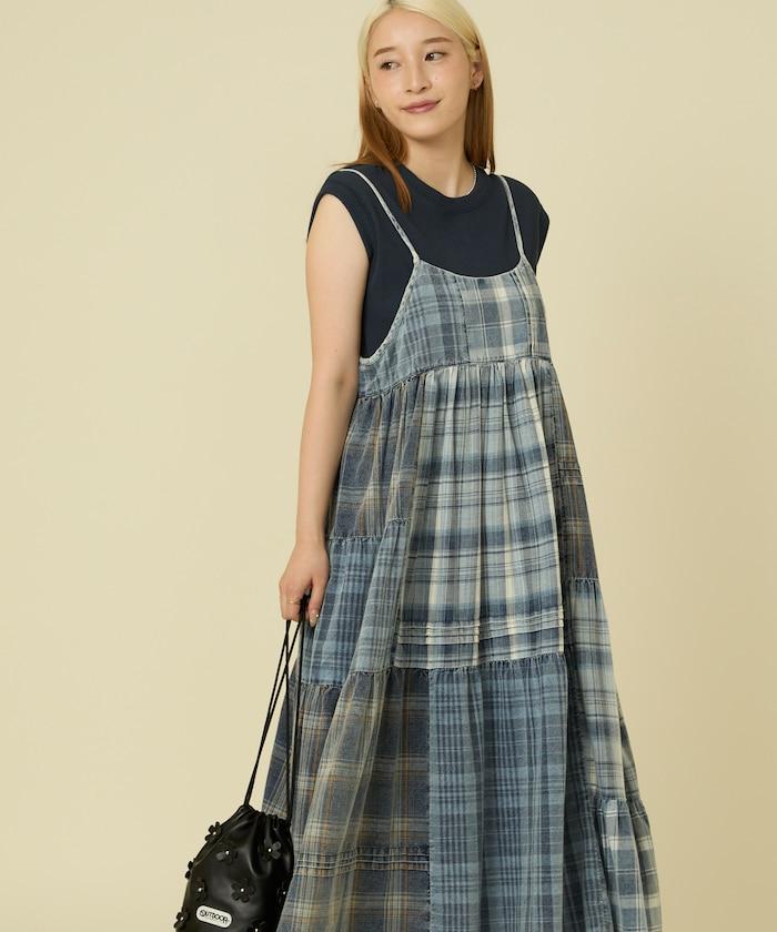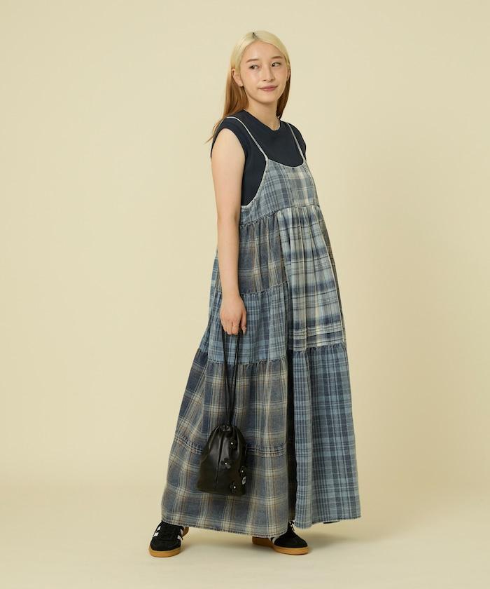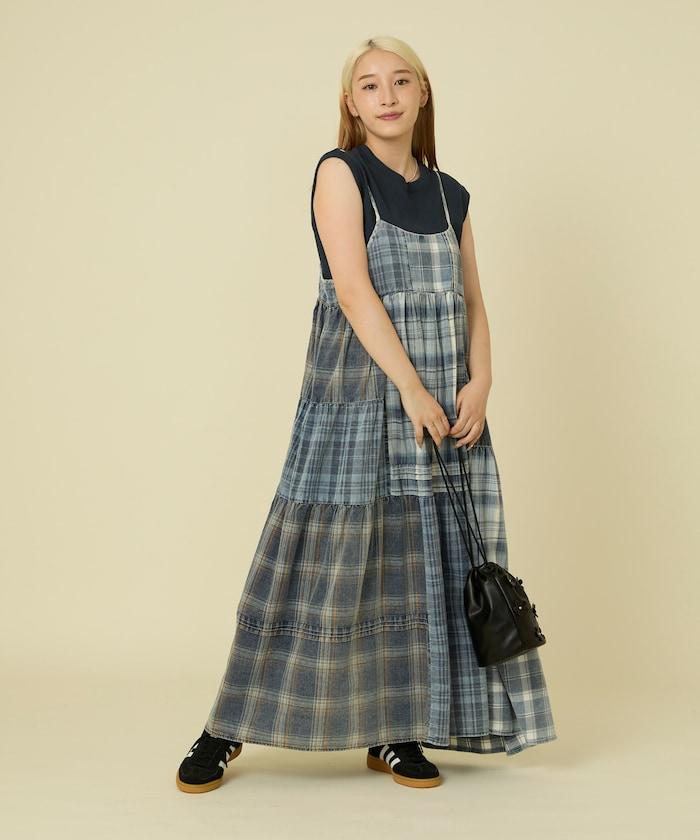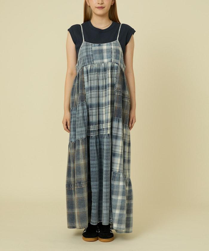 在拼接圖案中融合了不同的格紋,是一款表現力豐富的連衣裙。