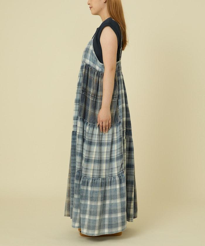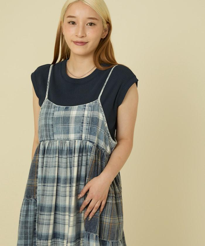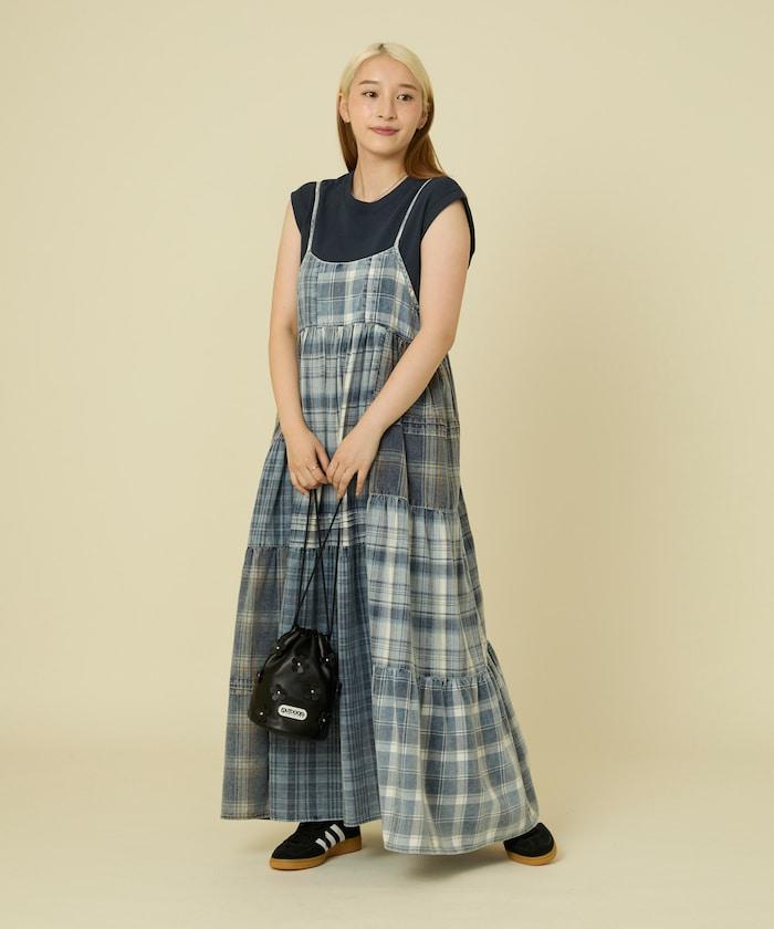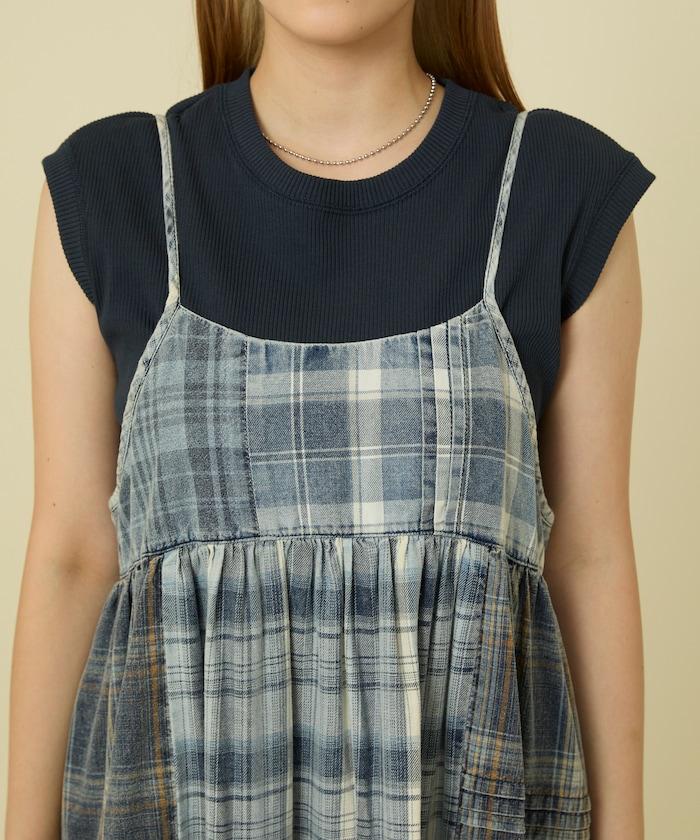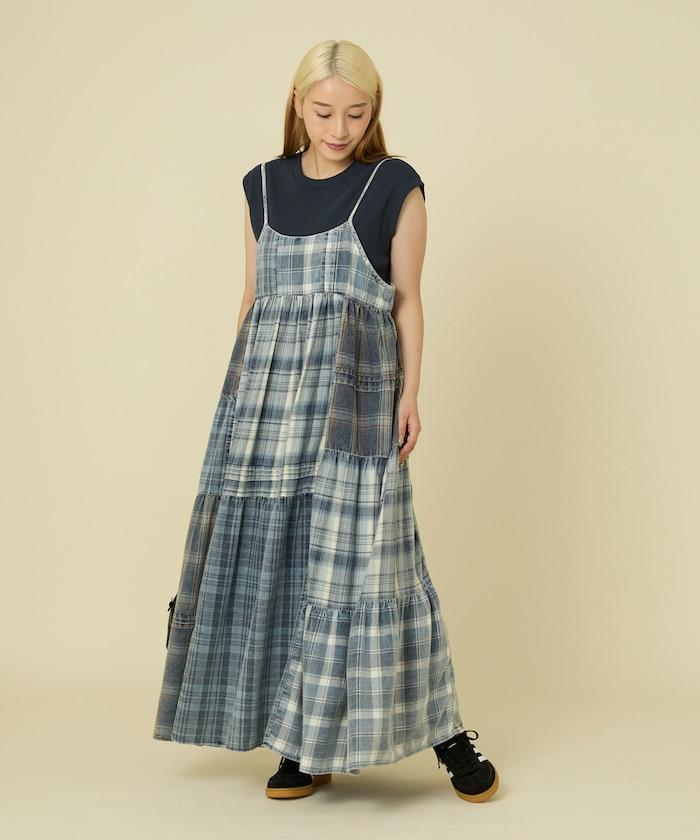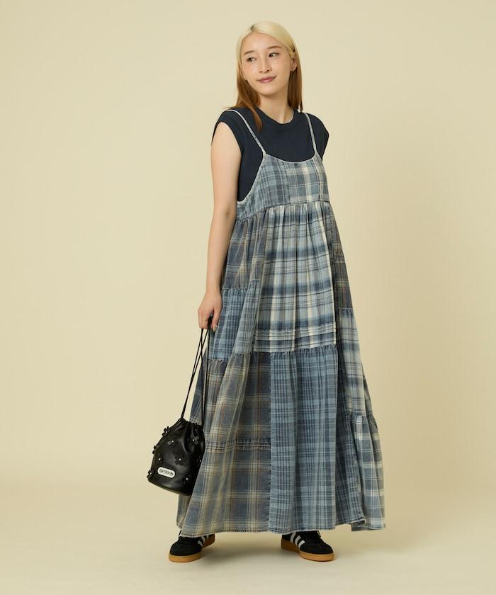 在拼接圖案中融合了不同的格紋,是一款表現力豐富的連衣裙。