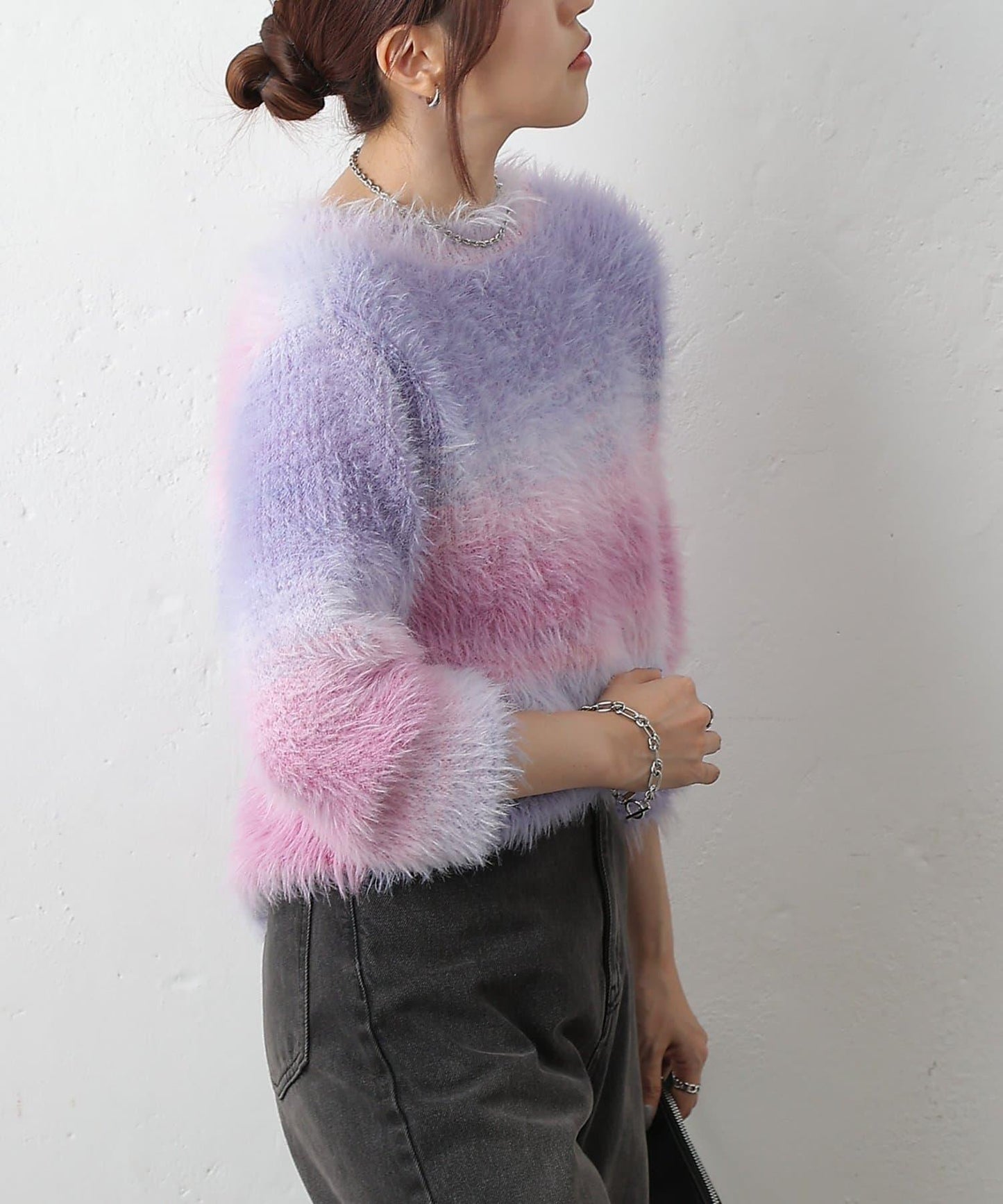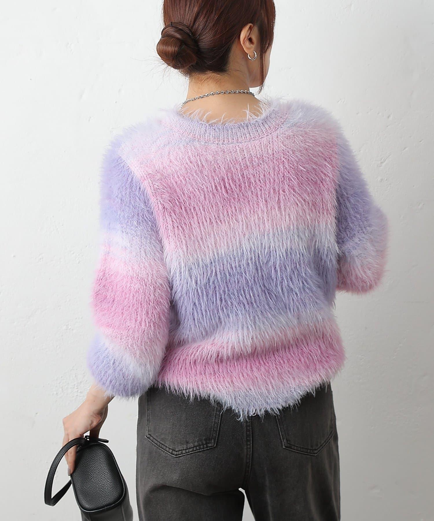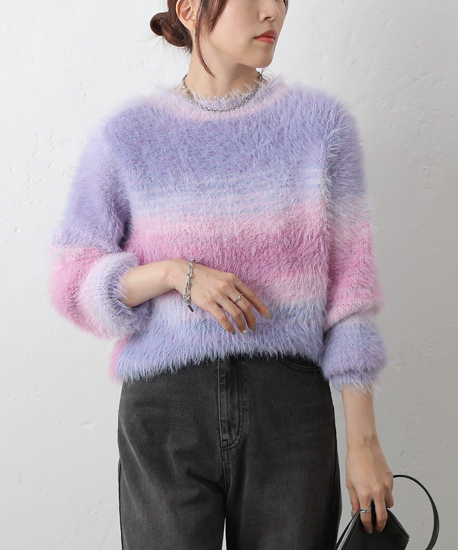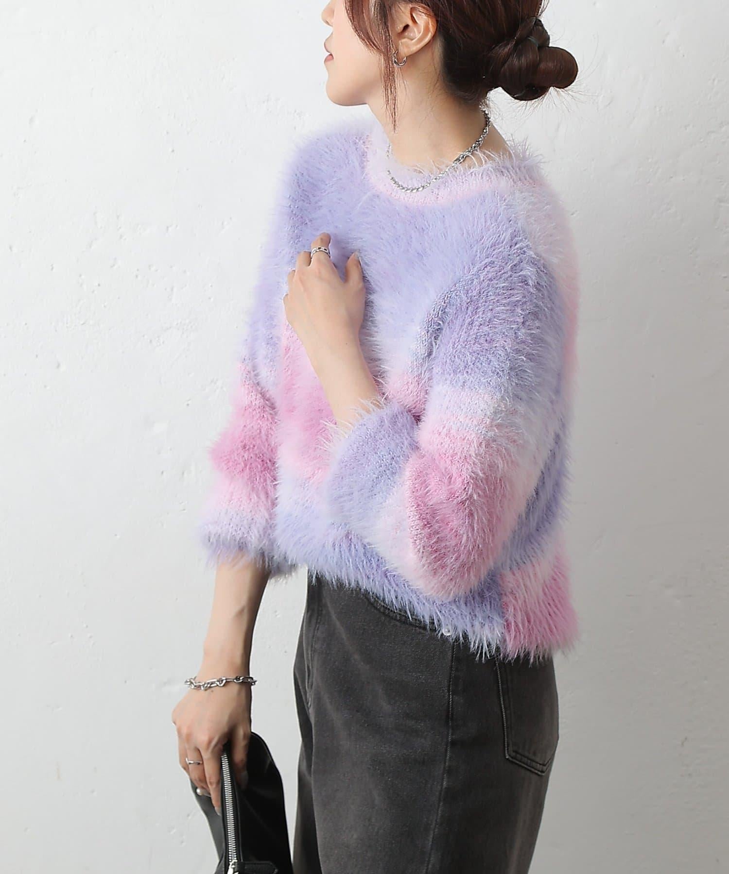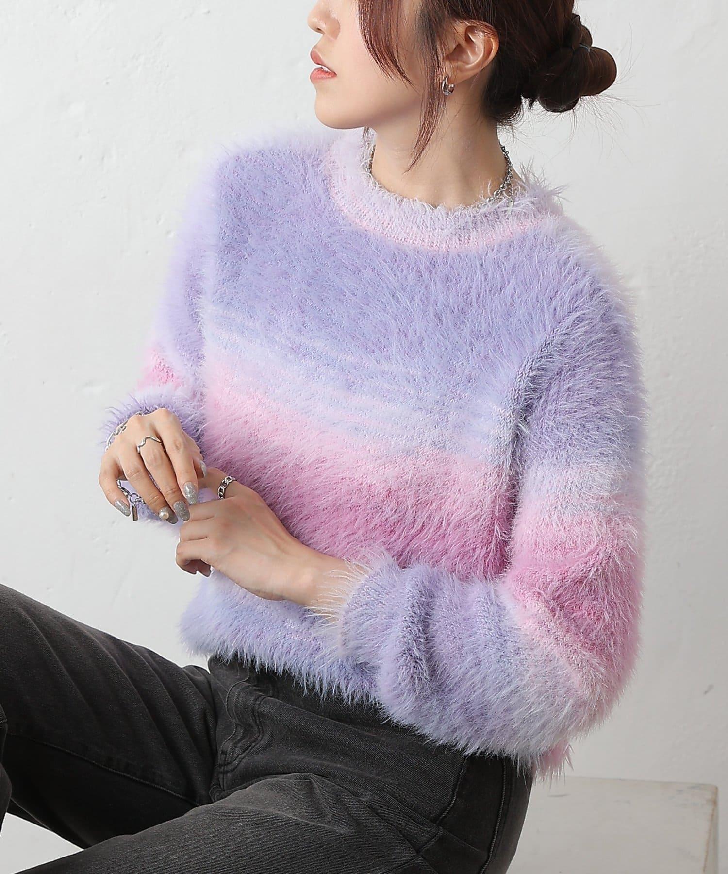 這款針織上衣採用蓬鬆的羽毛紗線和精緻的漸變色,十分搶眼。
