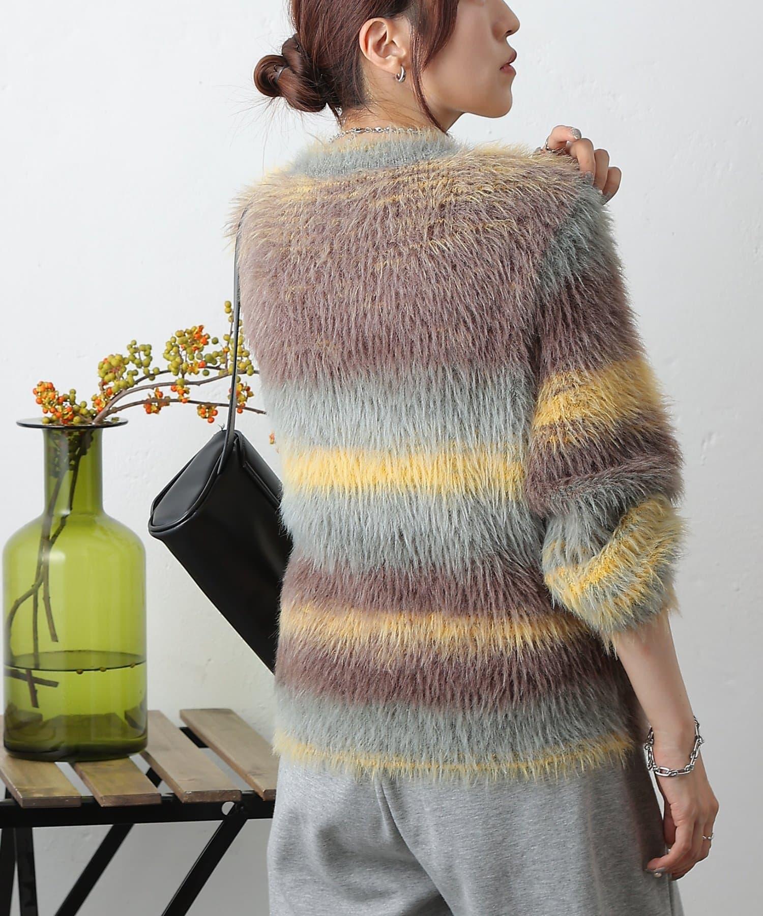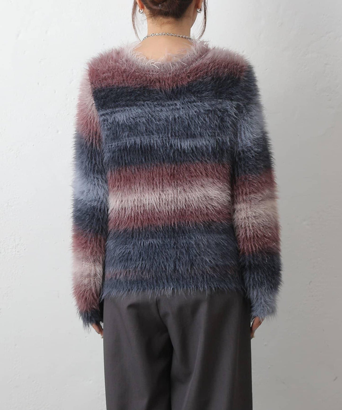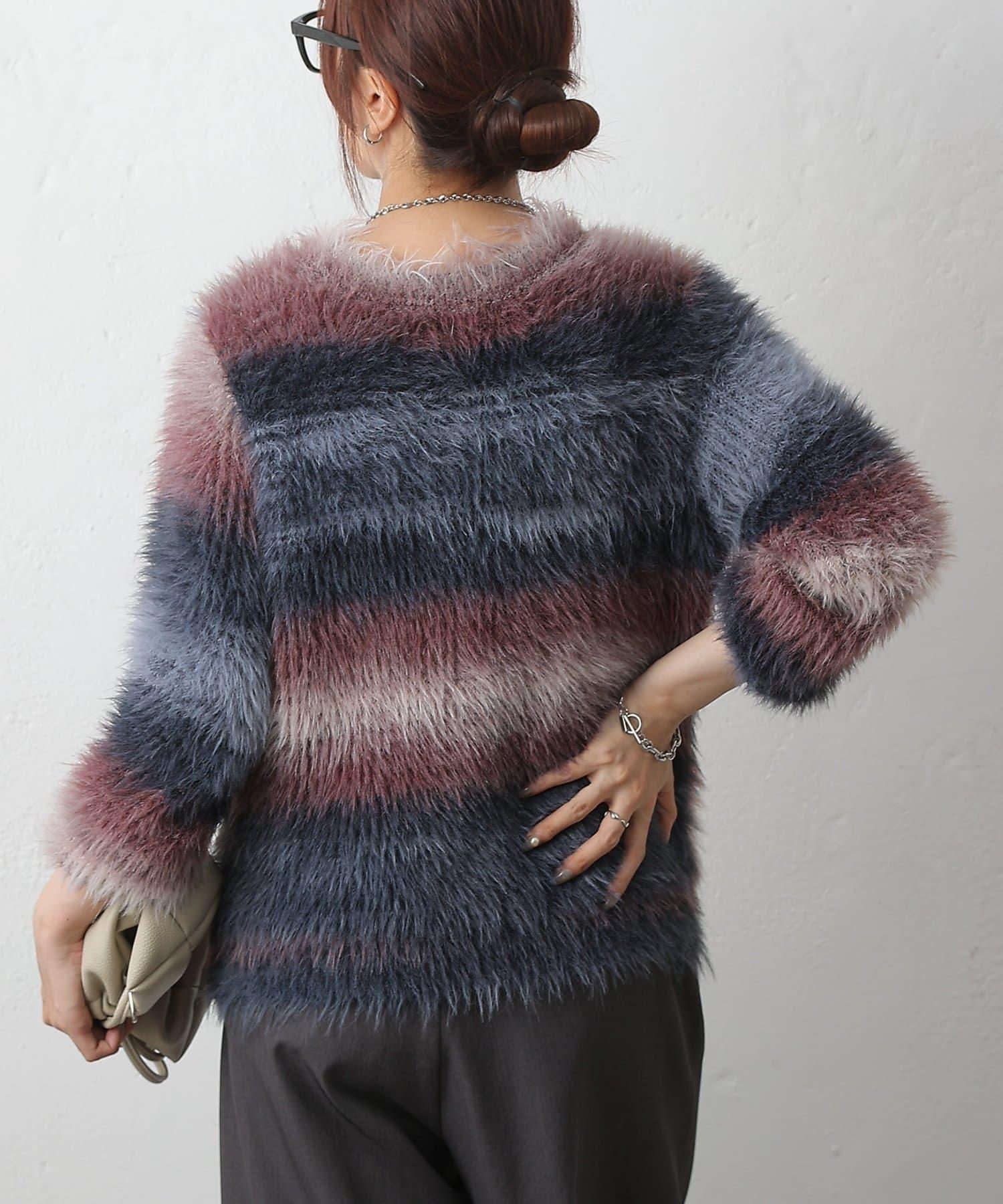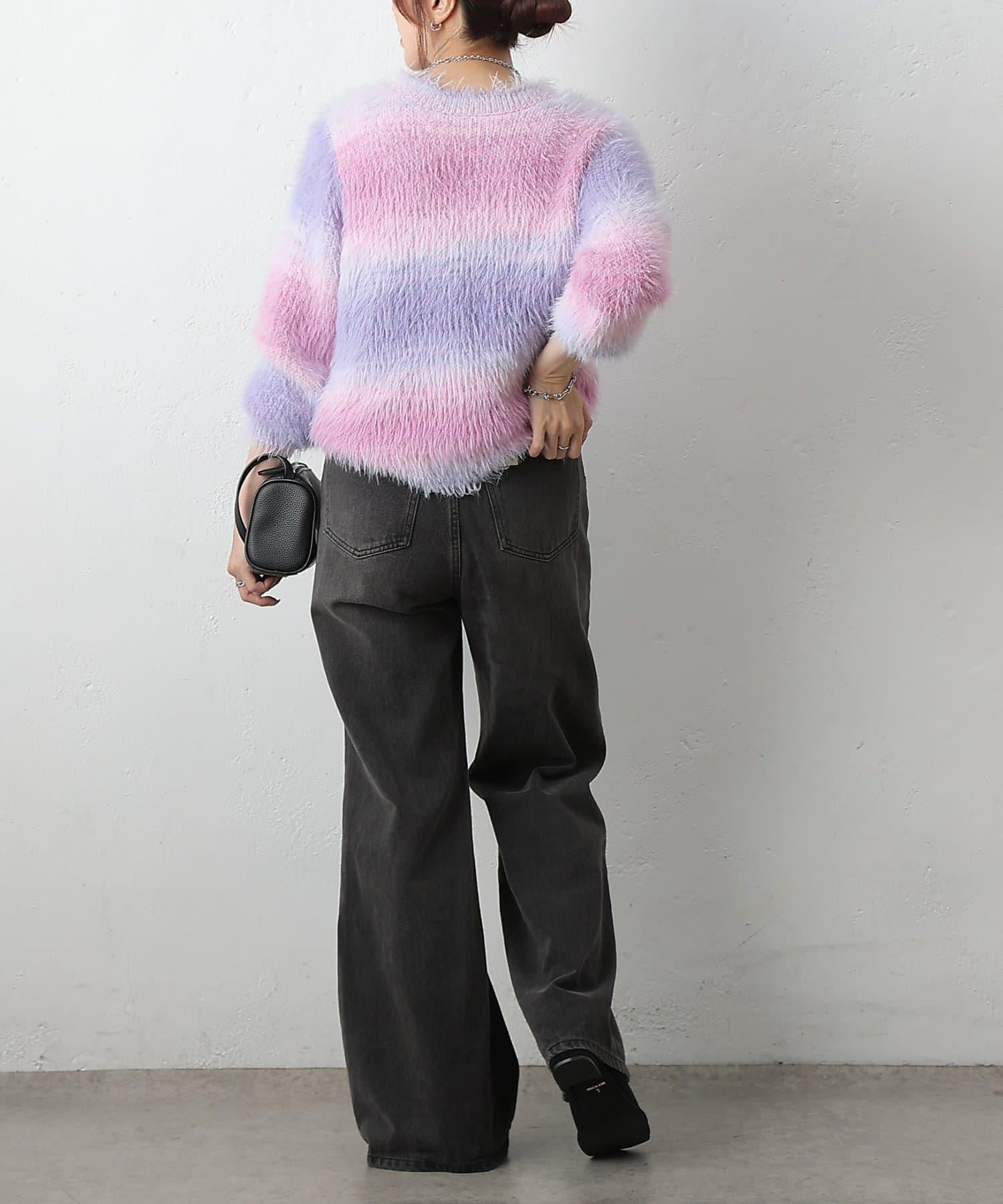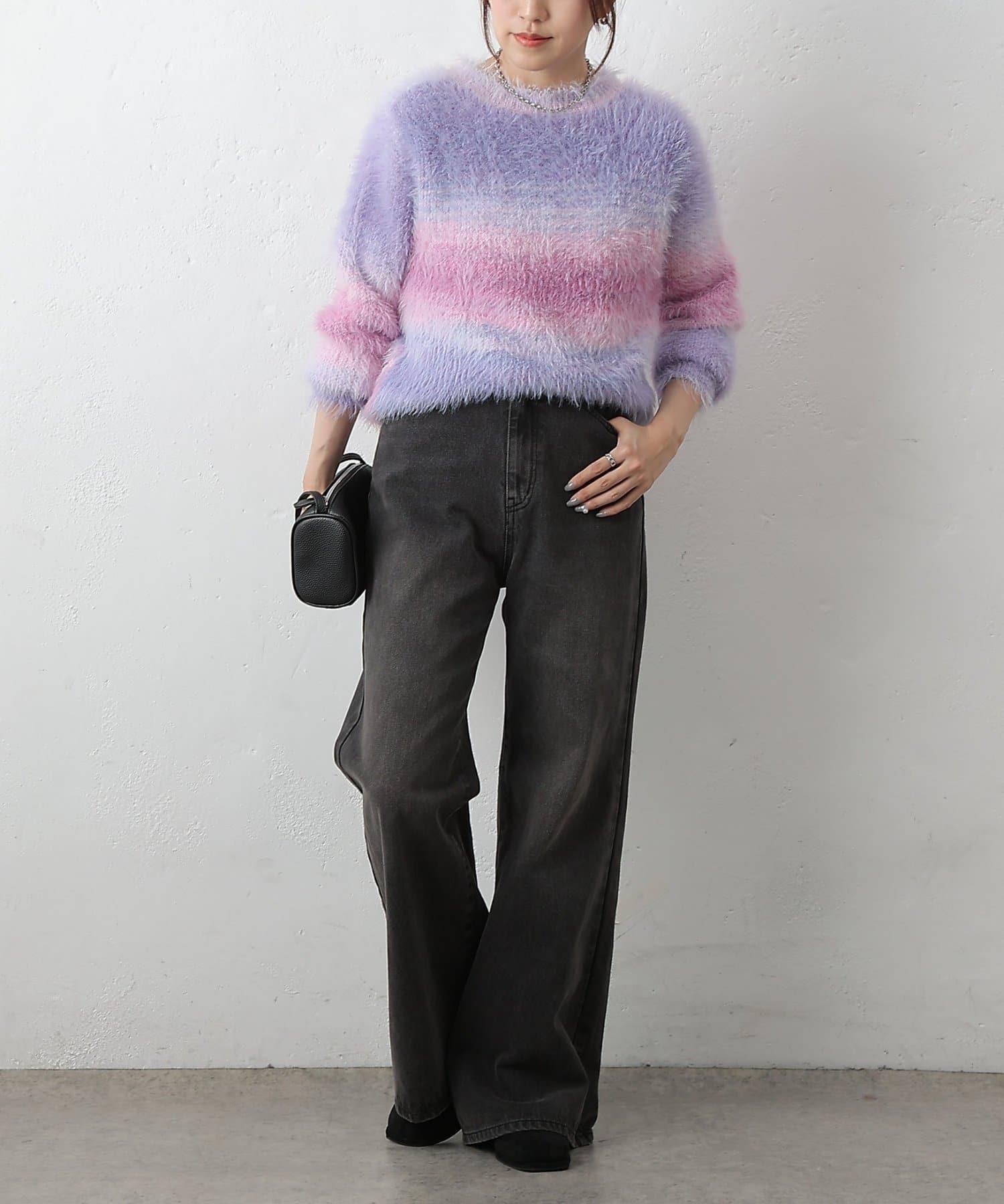 這款針織上衣採用蓬鬆的羽毛紗線和精緻的漸變色,十分搶眼。