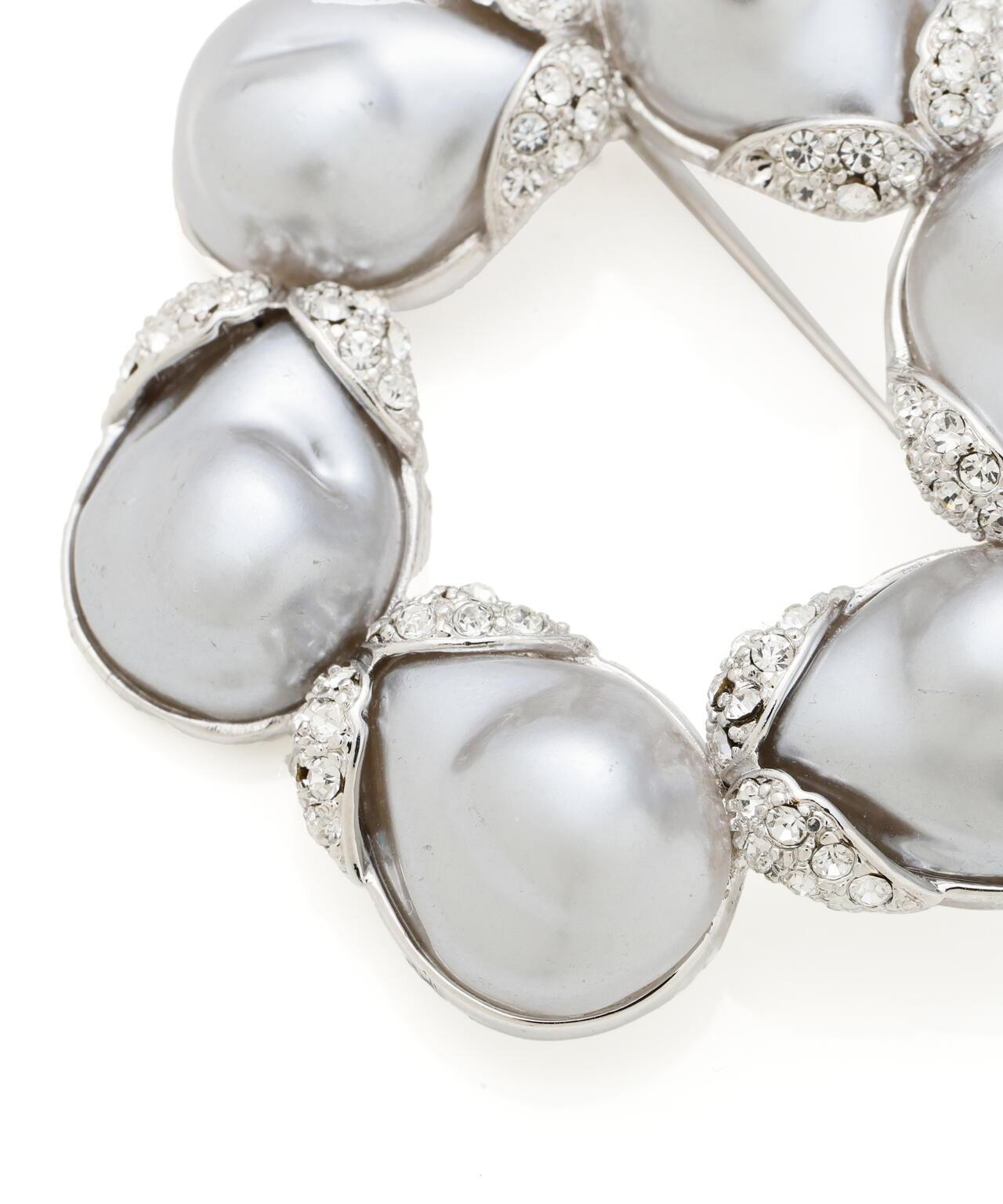 灰色圓形胸針,外觀精緻 灰色珍珠色胸針。胸針的自然形狀使其看起來像一顆真正的巴洛克珍珠,但它非常輕巧,可以搭配高規格的針織衫。