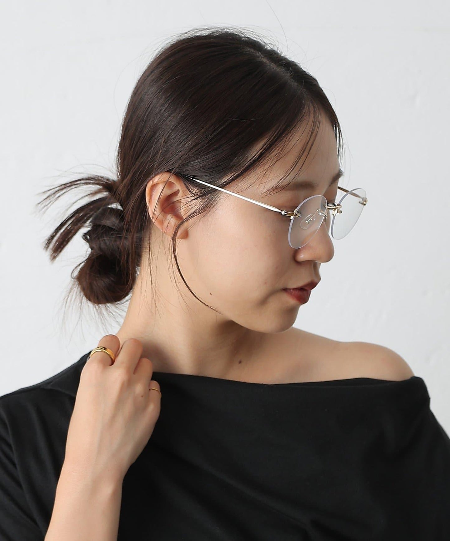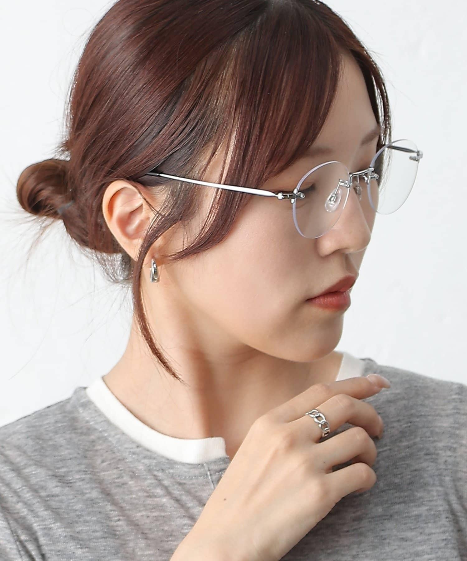 這款無框眼鏡的鏡框極小,給人以簡約、精緻的印象。