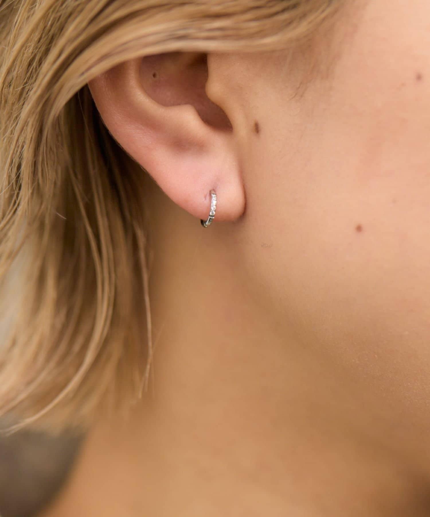 鑲嵌水晶的超簡約環形耳環
