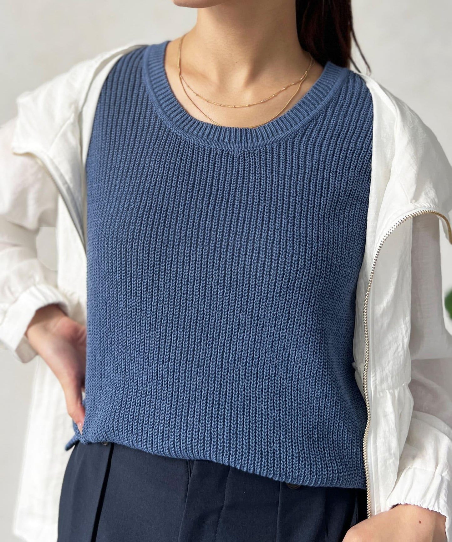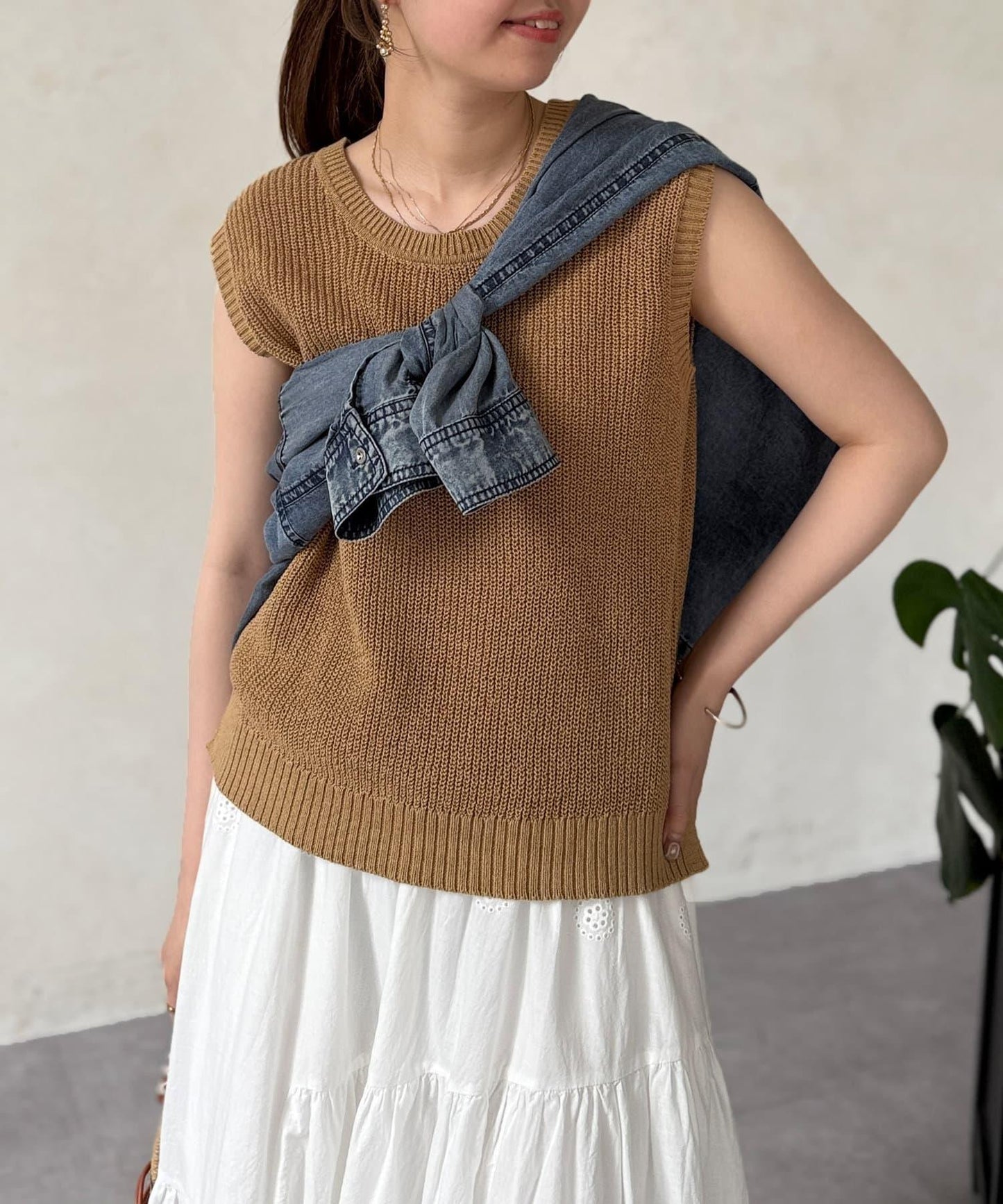 無袖針織衫,版型寬鬆,不挑身材線條。
