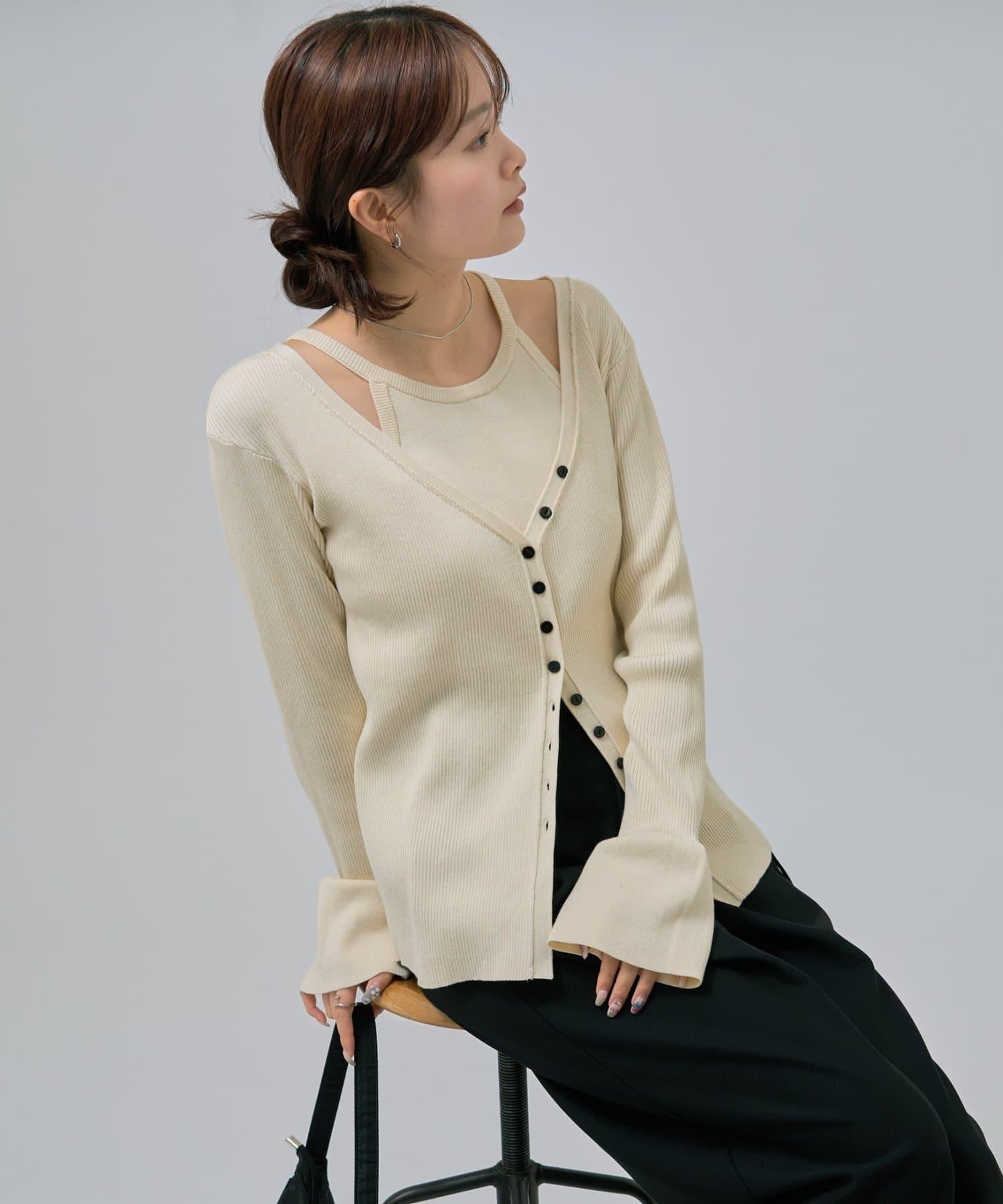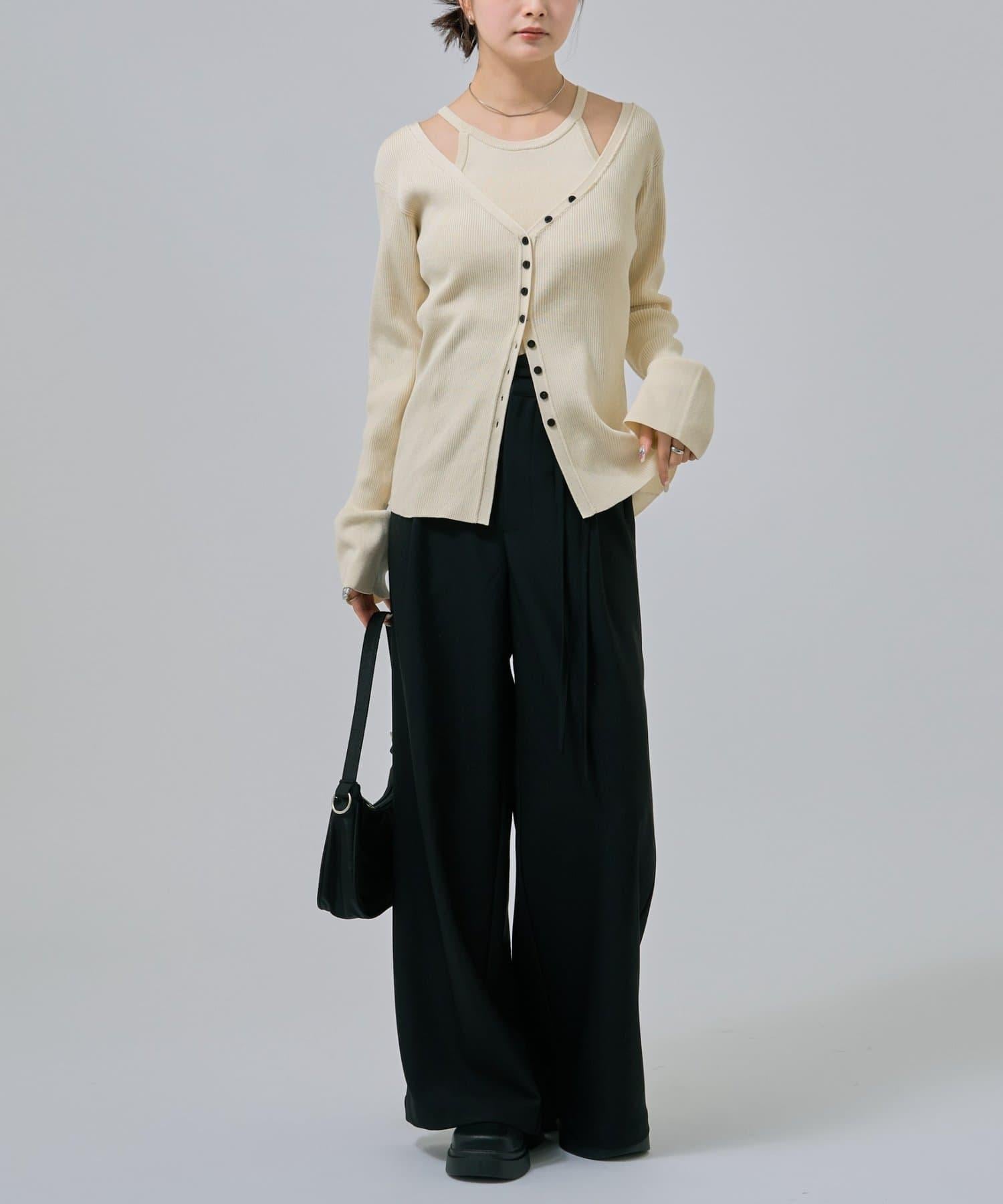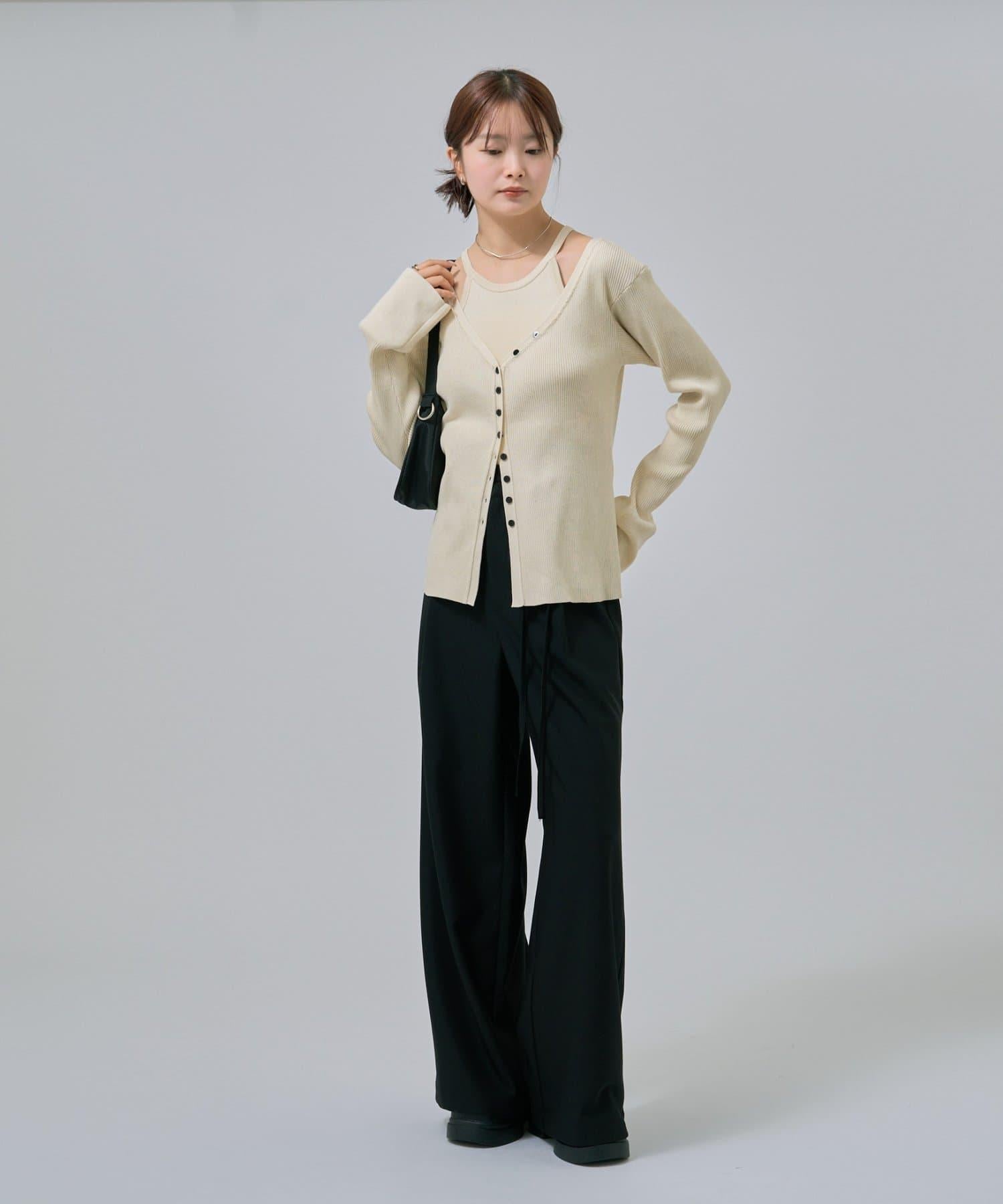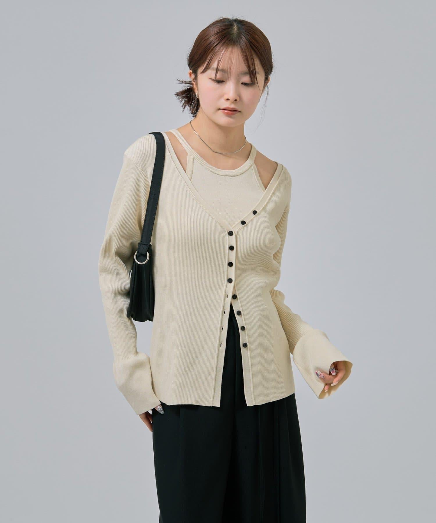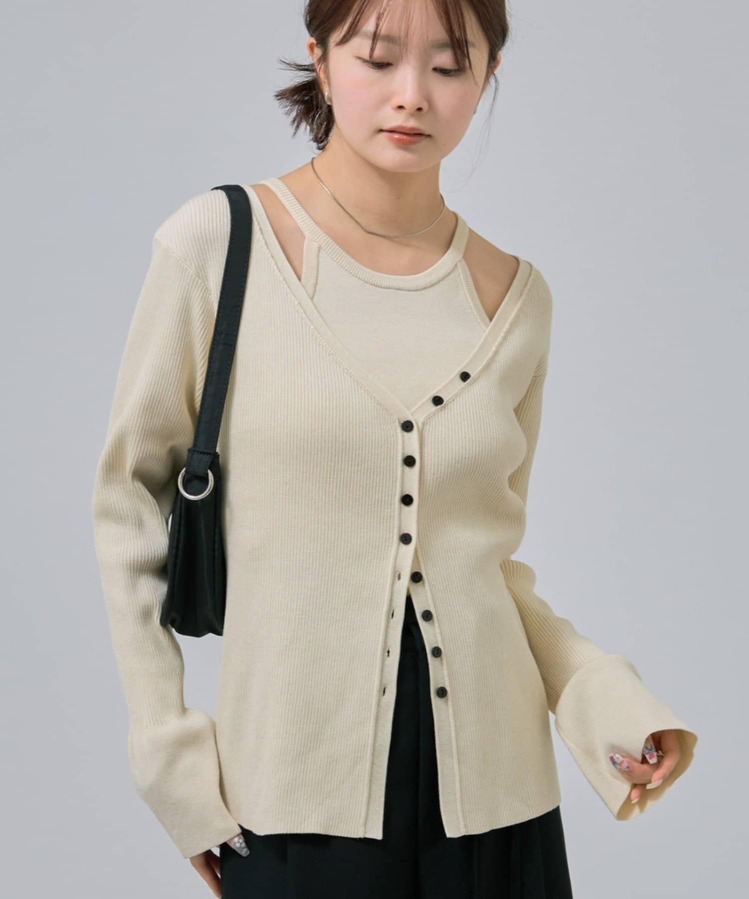 此款是背心和開衫的組合,可作為套裝穿著,打造出具有強烈存在感的協調造型!