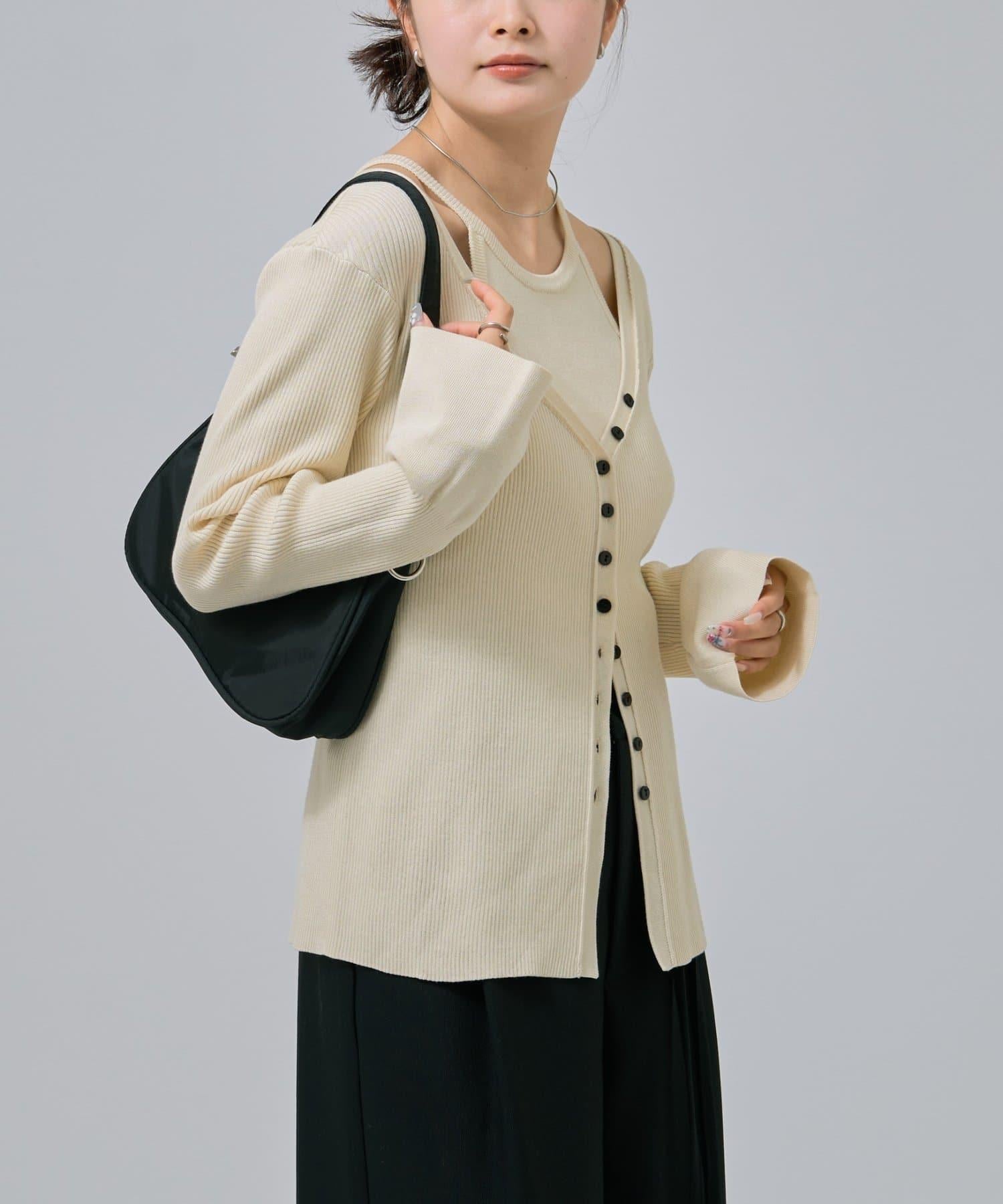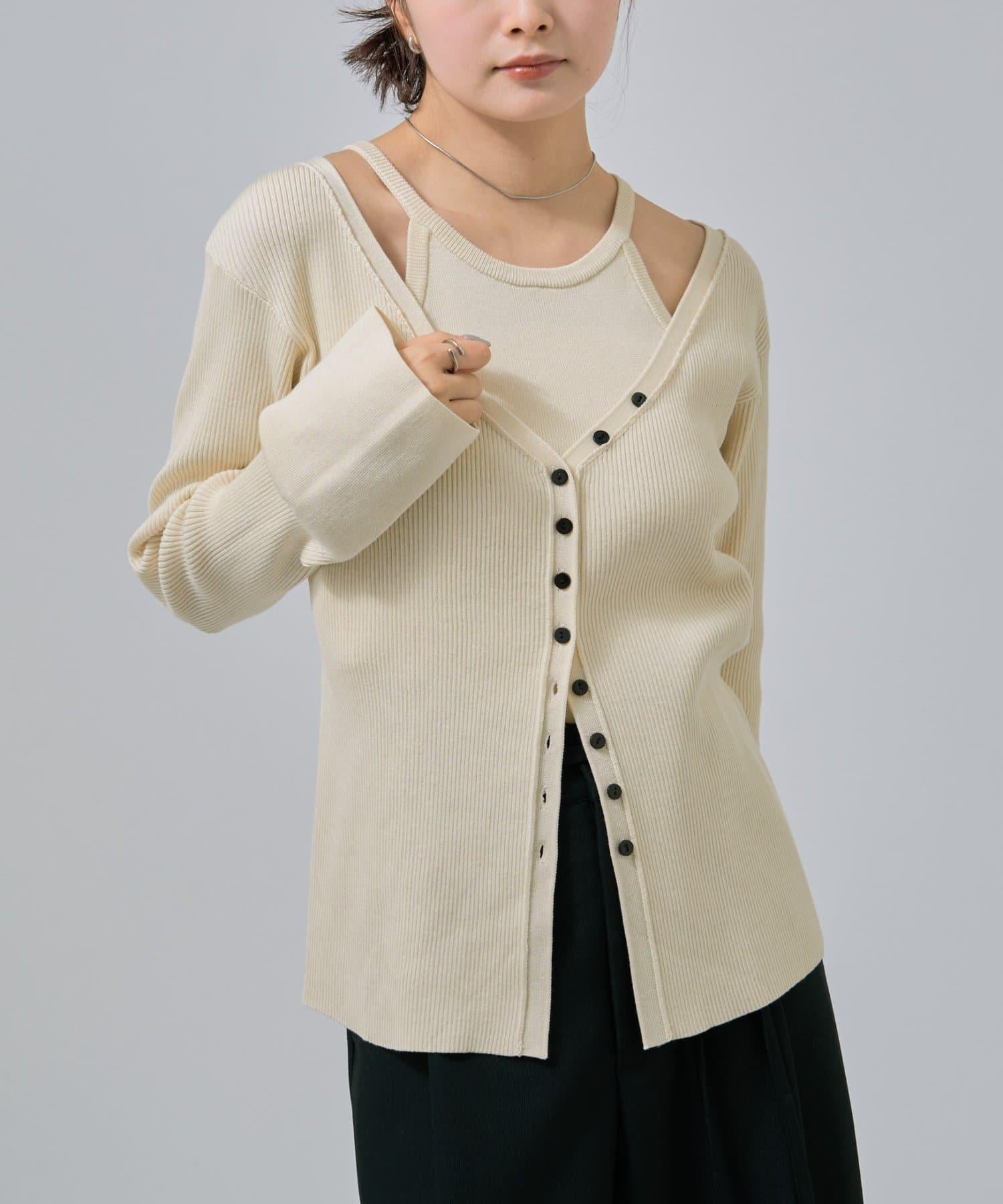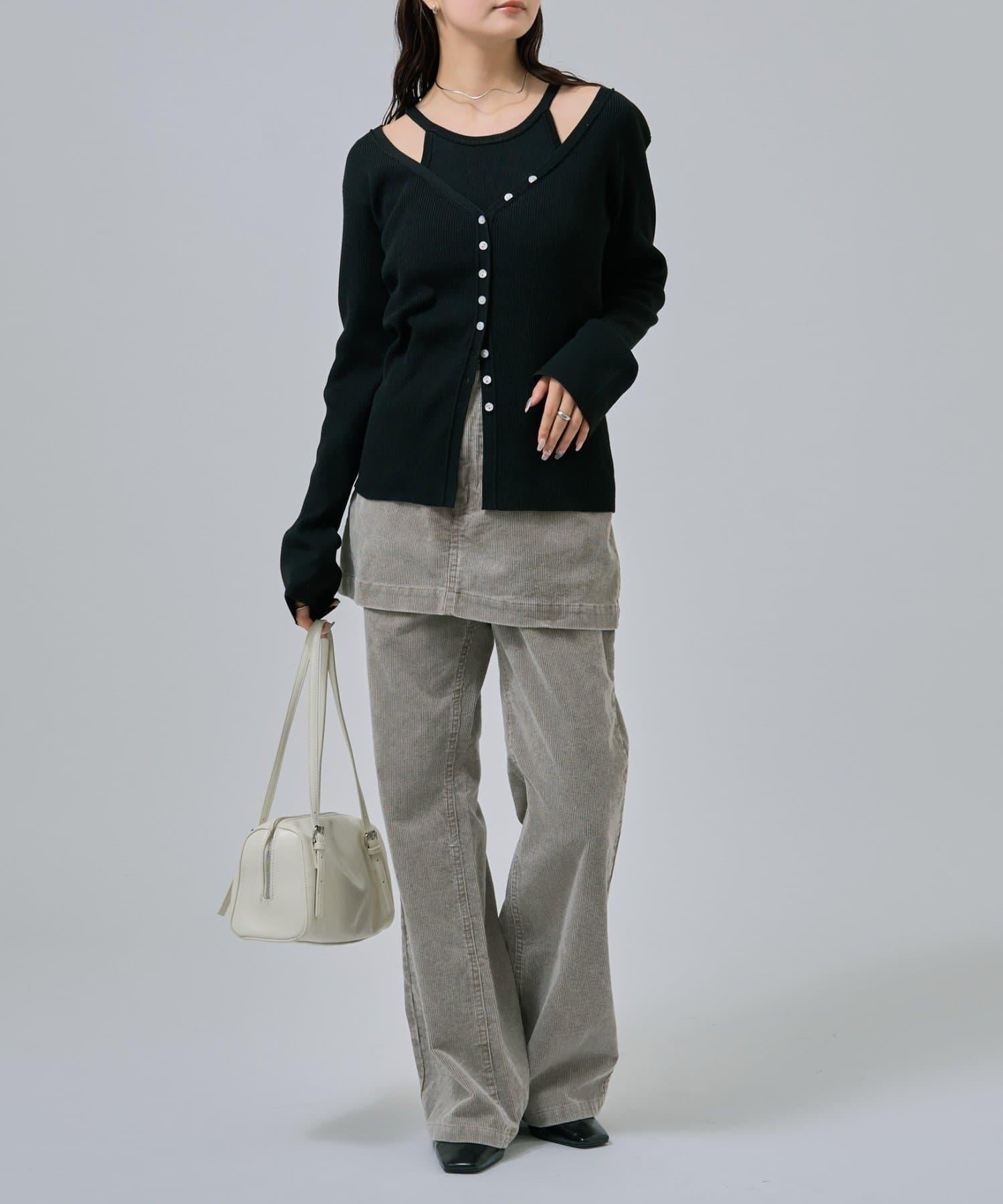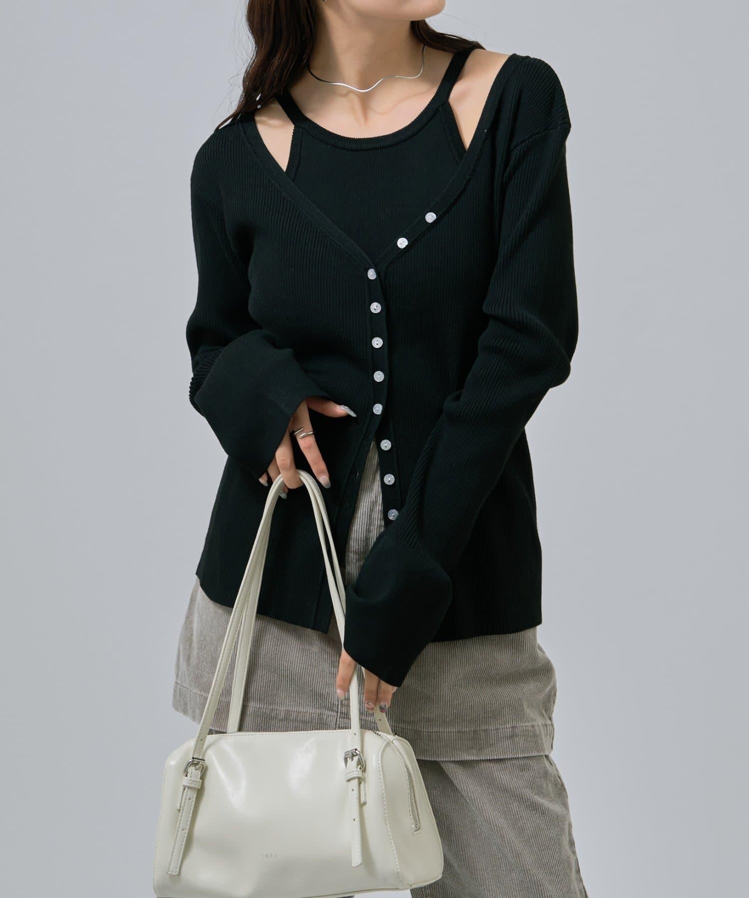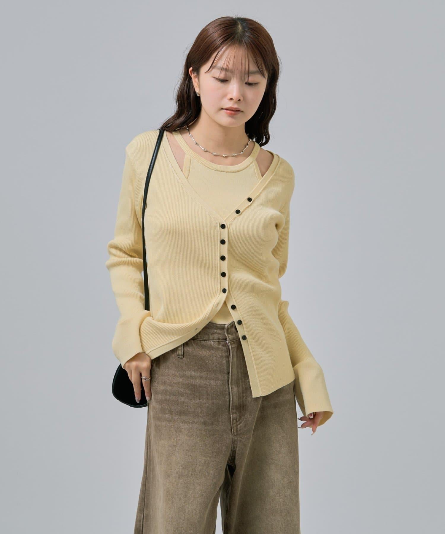 此款是背心和開衫的組合,可作為套裝穿著,打造出具有強烈存在感的協調造型!