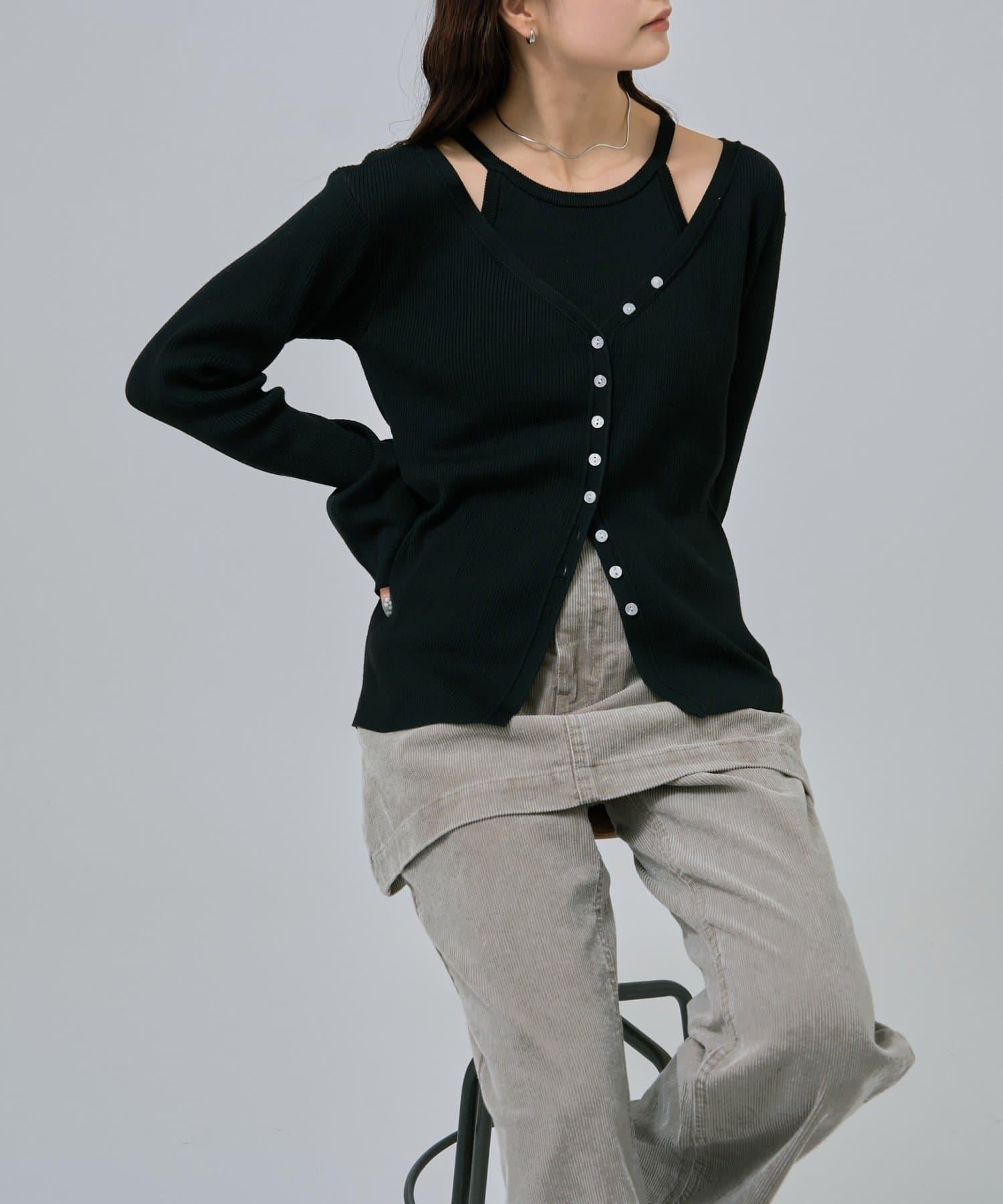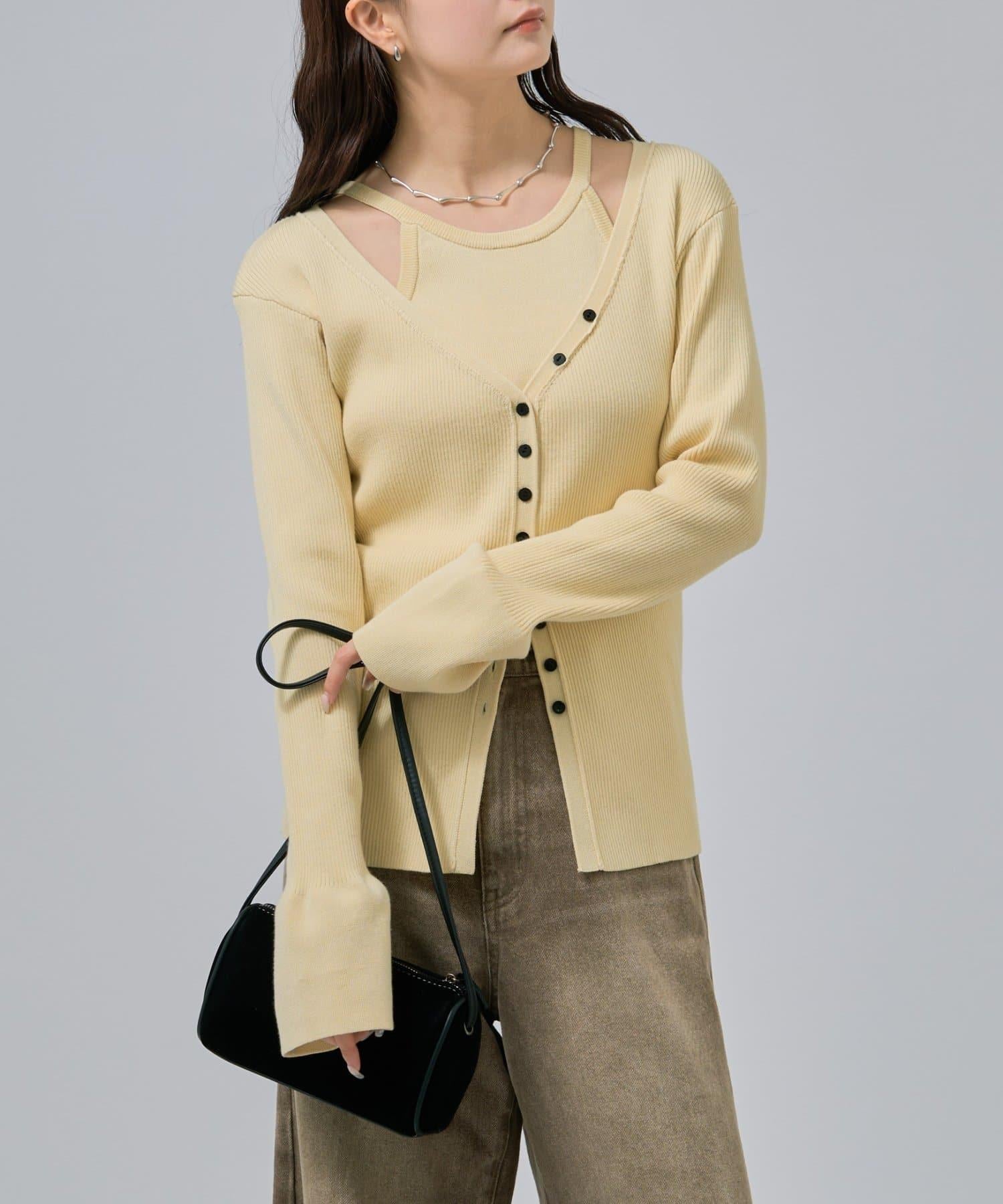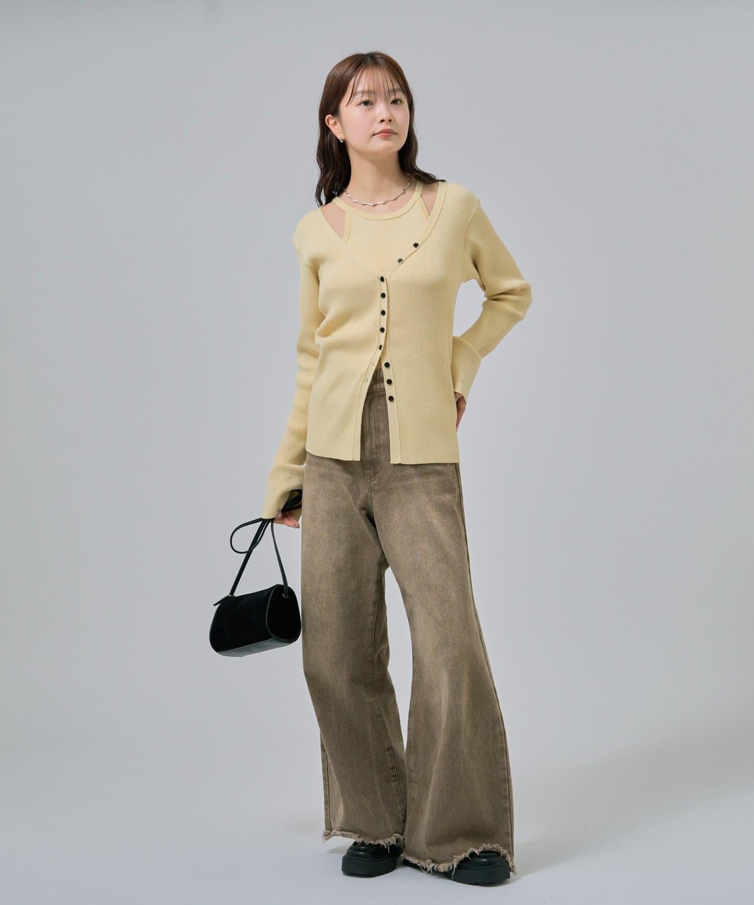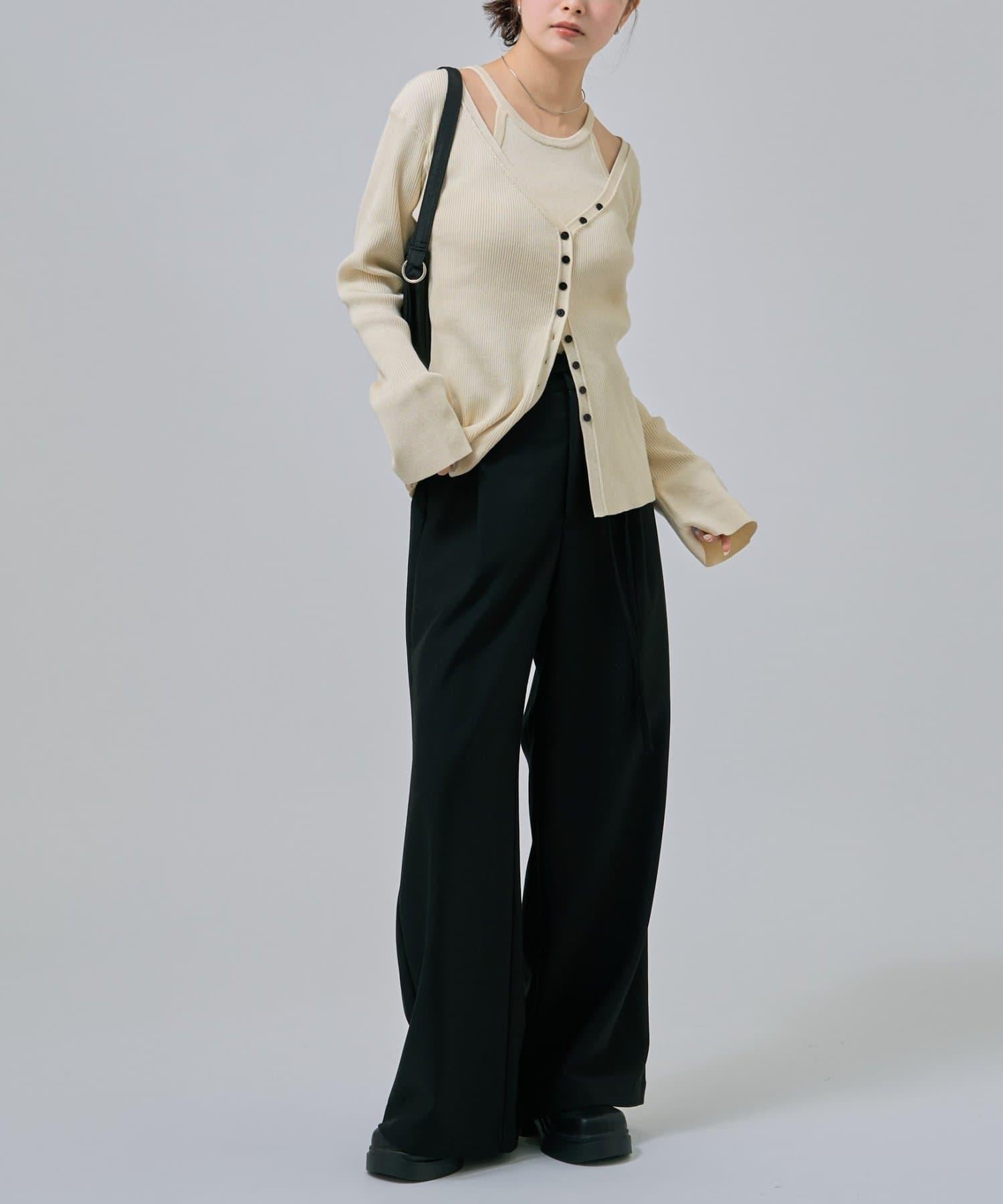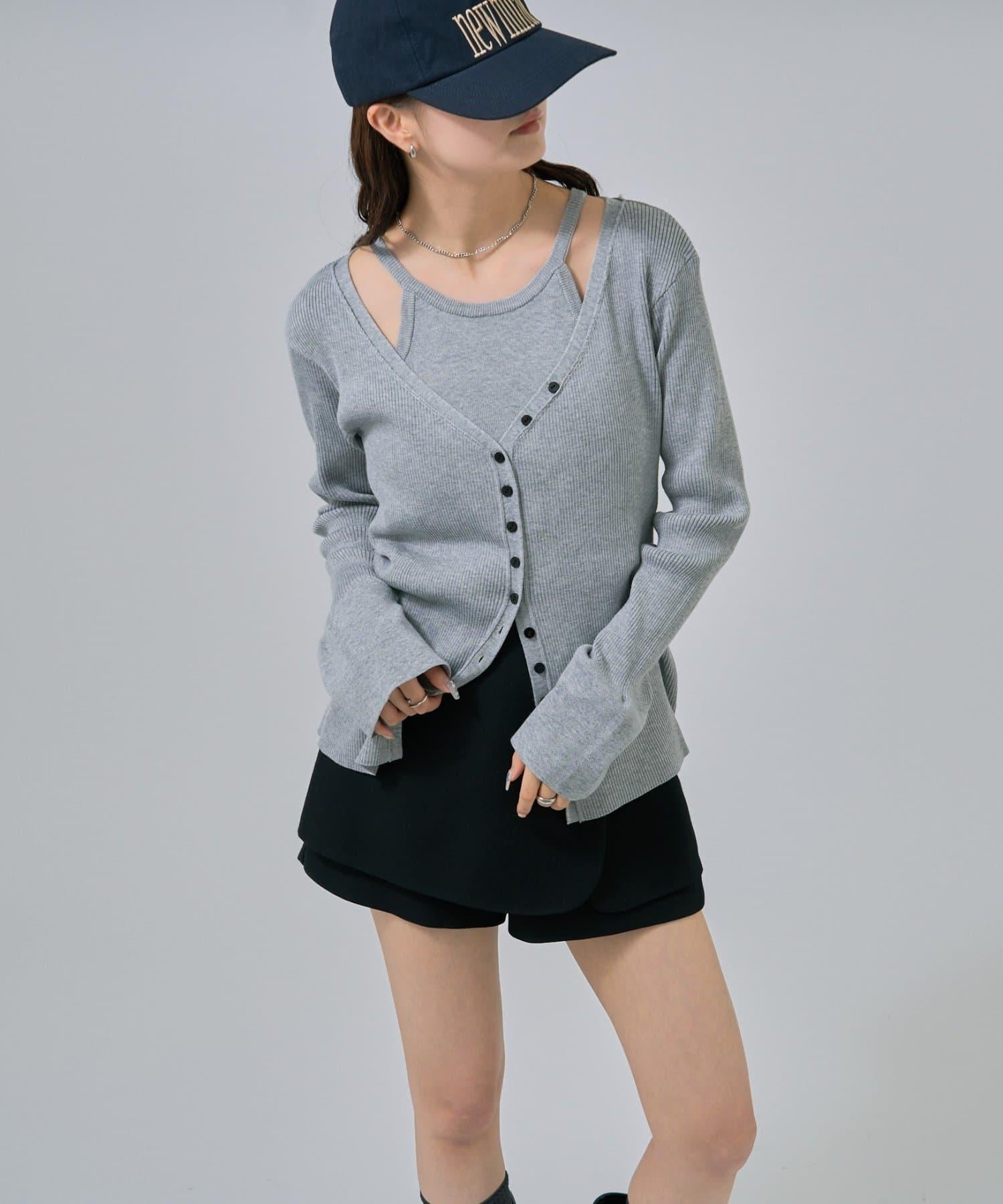 此款是背心和開衫的組合,可作為套裝穿著,打造出具有強烈存在感的協調造型!