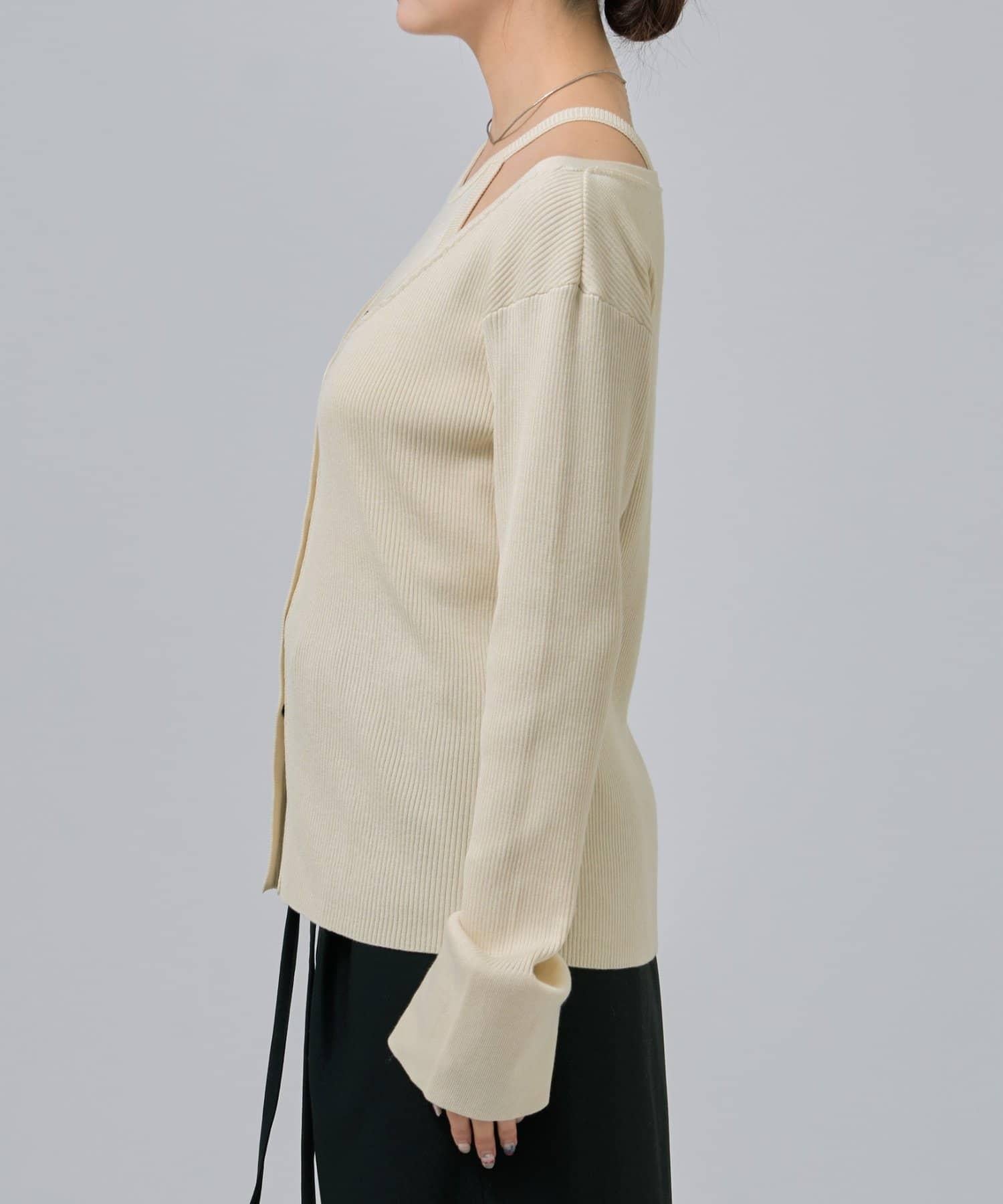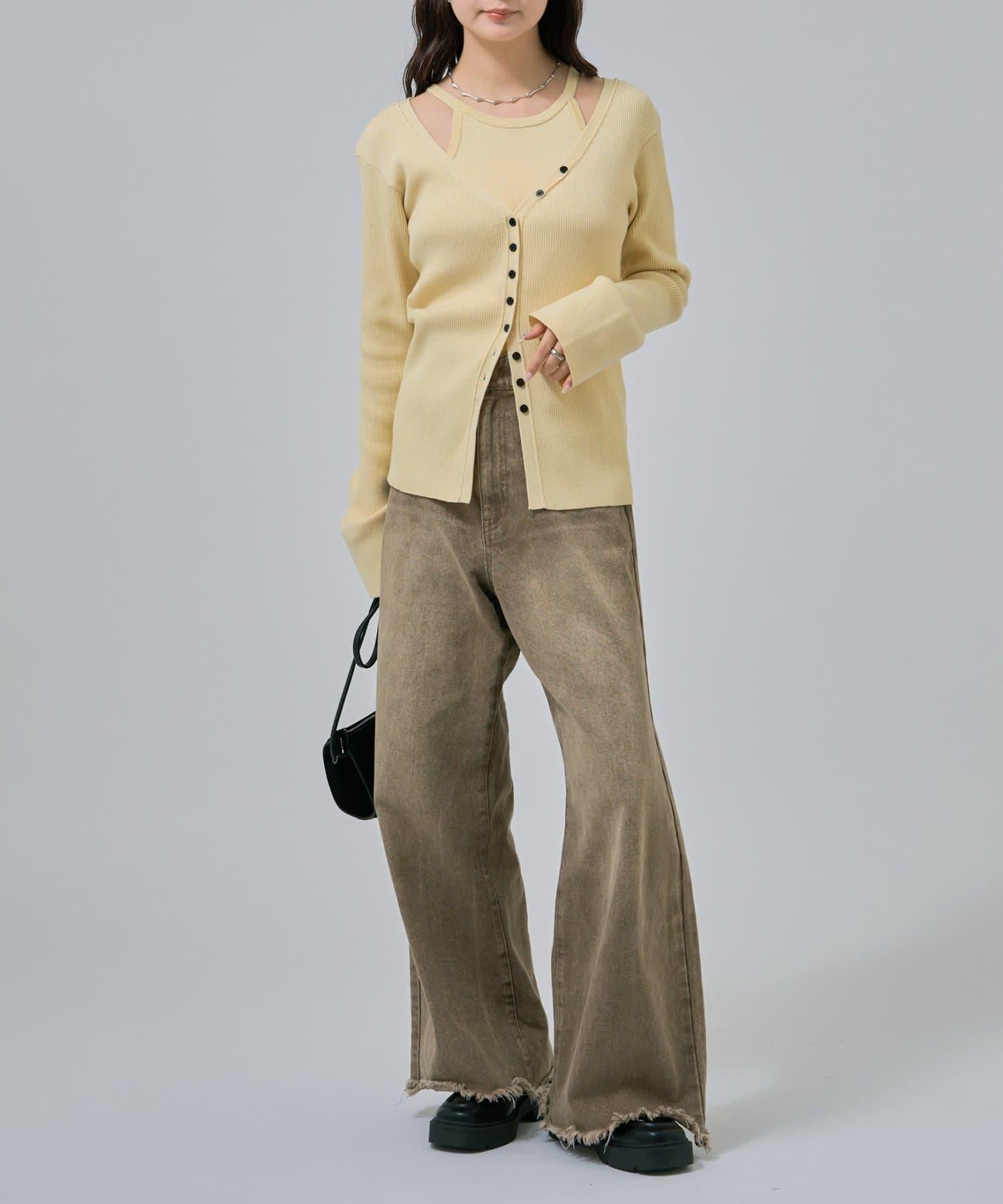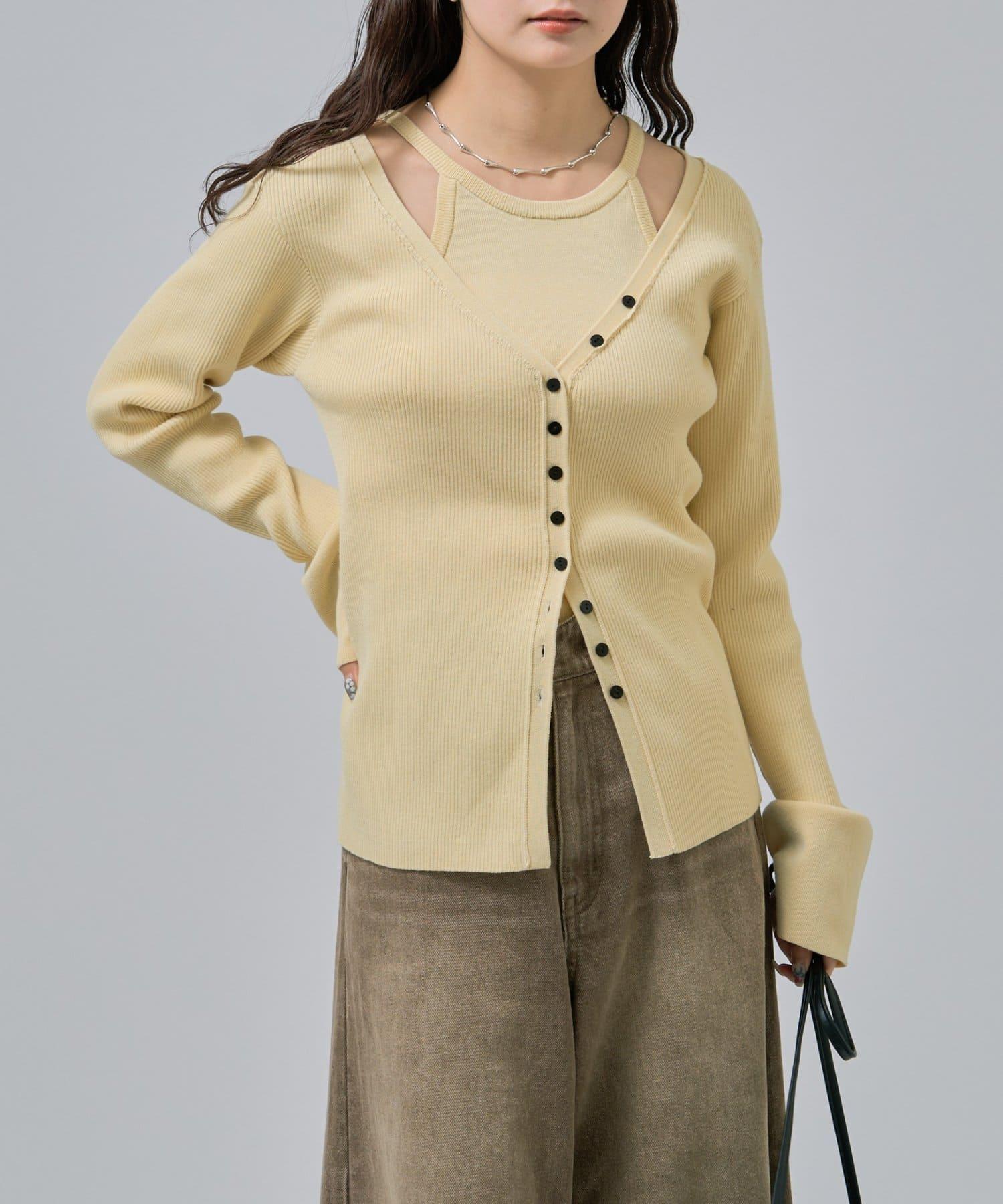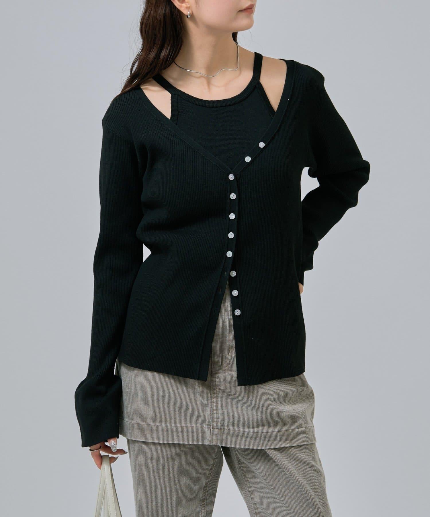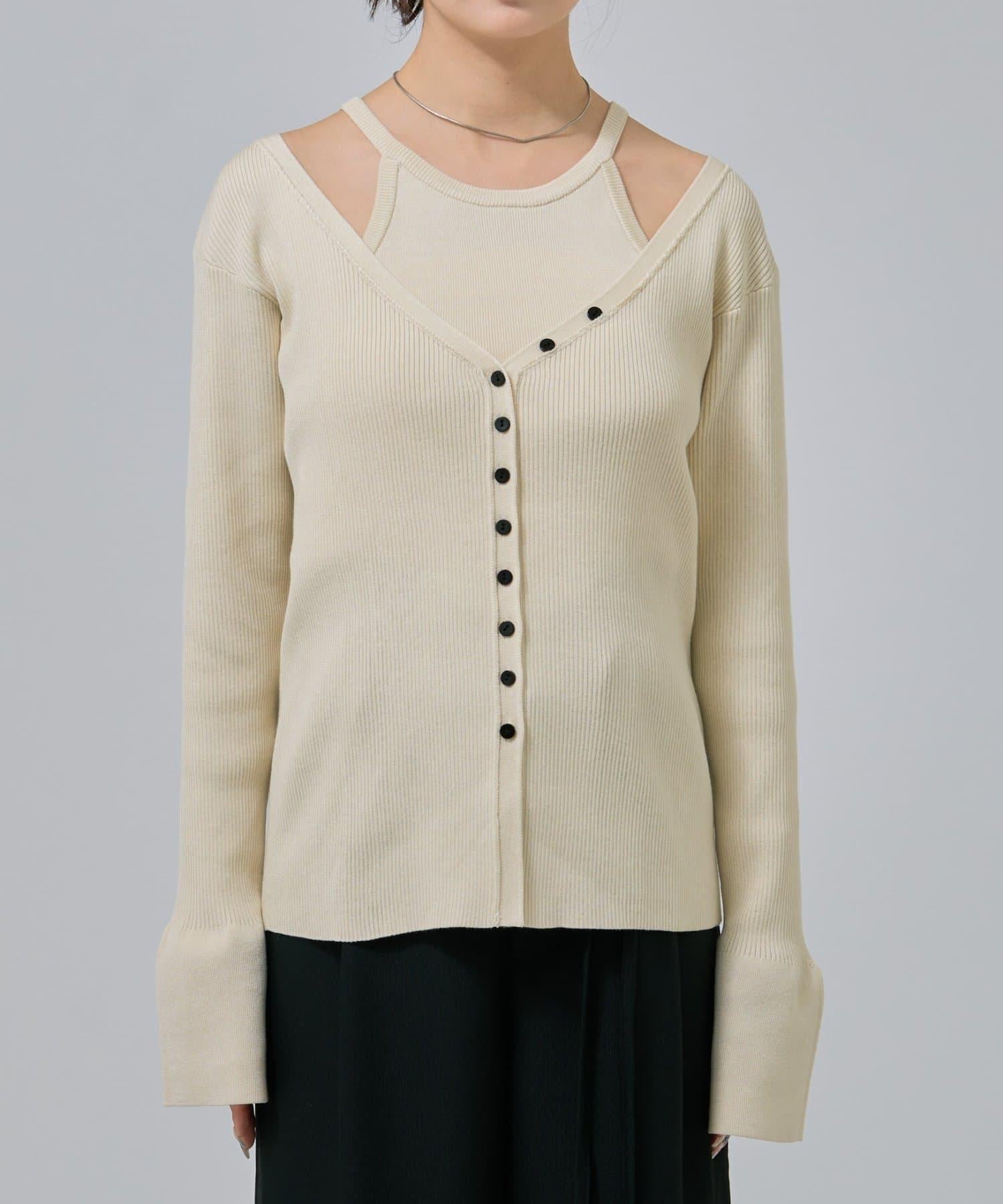 此款是背心和開衫的組合,可作為套裝穿著,打造出具有強烈存在感的協調造型!