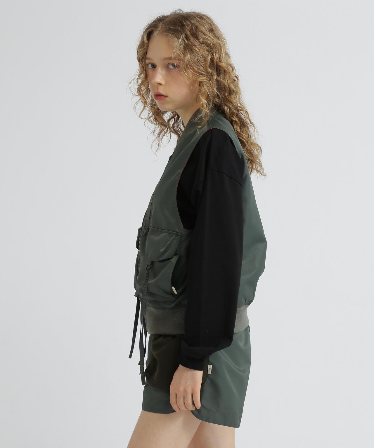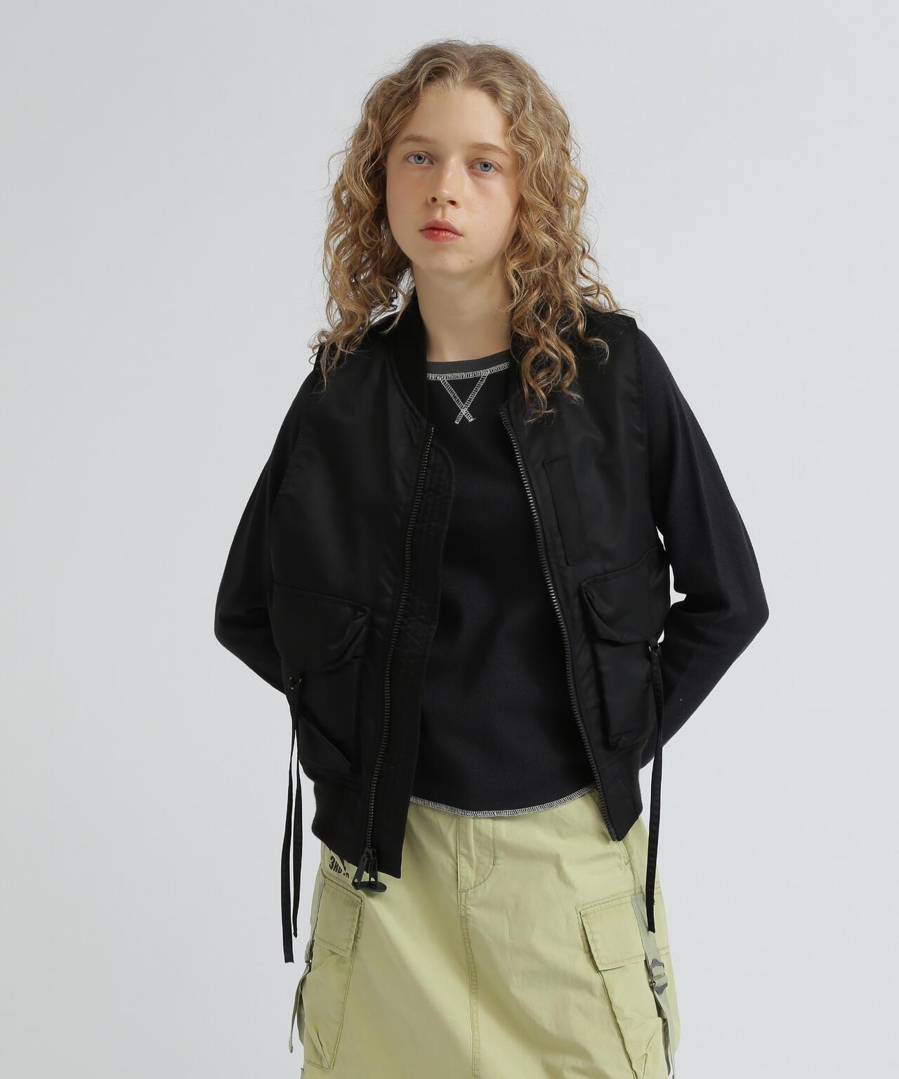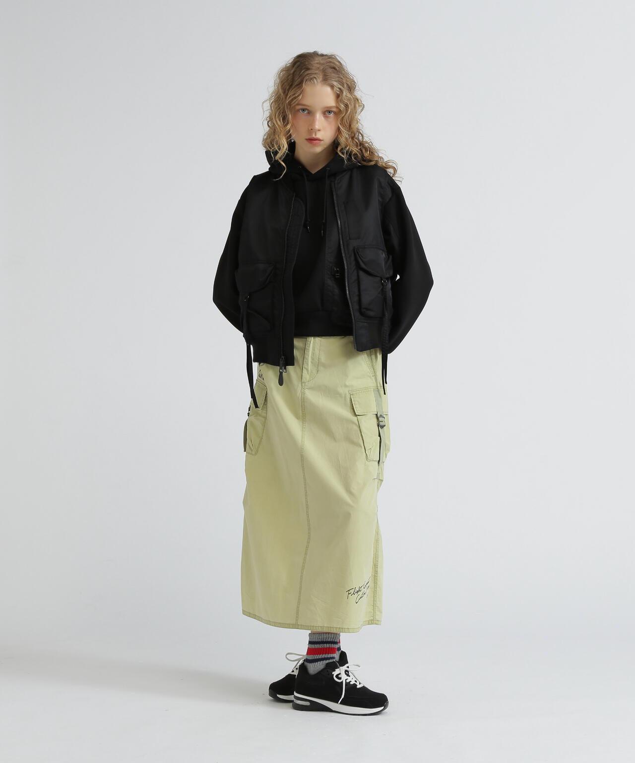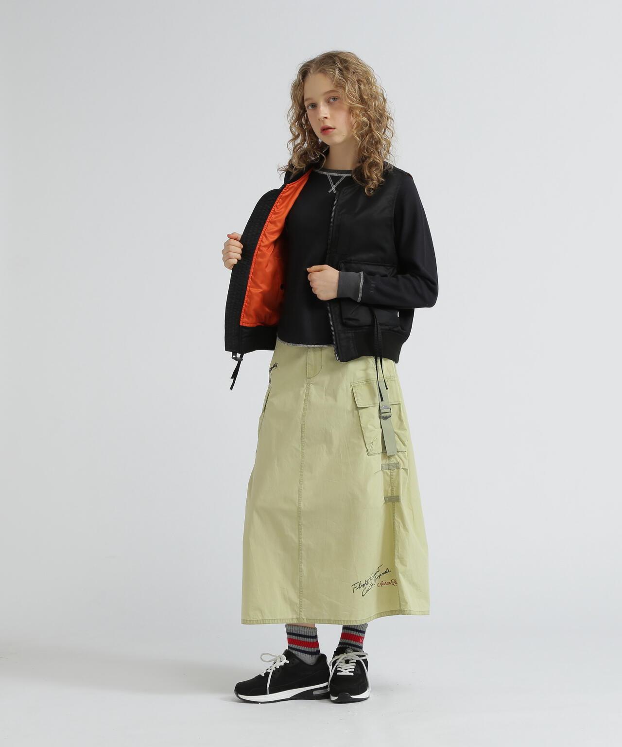 衣身寬大,臂腋較深,便於疊穿。衣身口袋上的長繩設計也是一大亮點。同系列還有外衣(貨號 7835252603)、上衣(貨號 7835231602)、裙子(貨號 7835216605)、短褲(貨號 7835213601)和長褲(貨號 7835210603)。AVIREX WOMAN] 該系列將純正軍裝的功能性和設計感融入女式休閒裝。作為一個具有個性和永恆性的女裝品牌,它為聰明、自由、好奇、高貴和活潑的成年職業女性提供女式休閒裝。