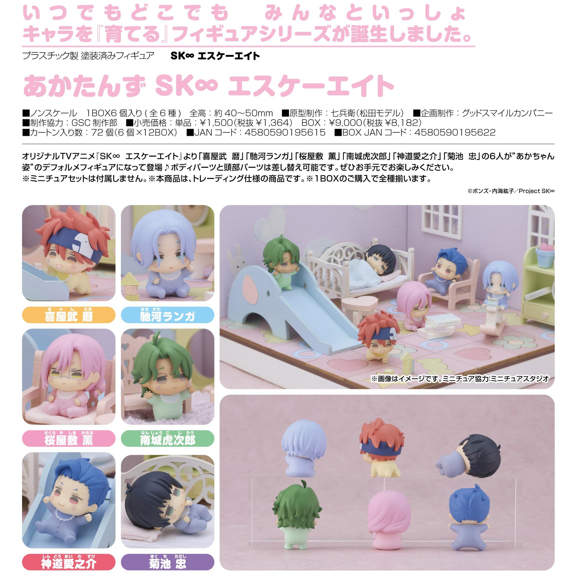 來自原版 TV 動畫系列 "SK∞ Esk8 "的六位角色的變形人偶--京步玲樹、長谷川蘭香、櫻敷薰、南條虎次郎、上戶愛之助和菊池忠志。