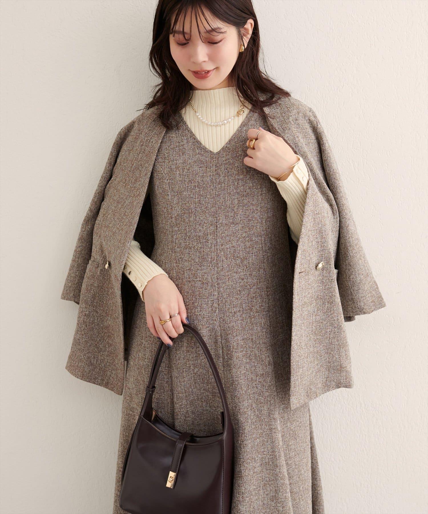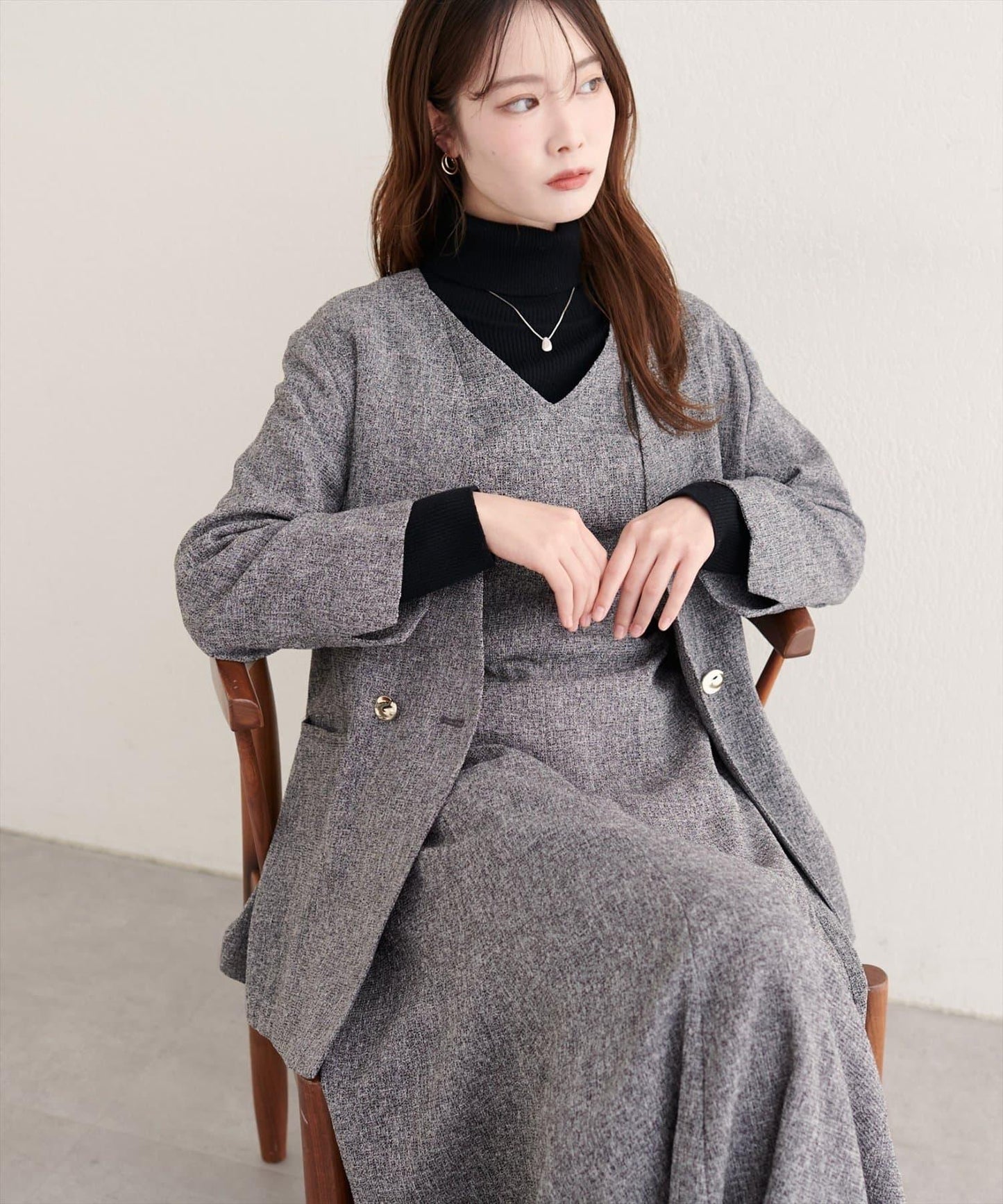 外搭簡單的圓領 T 恤或高領設計的無袖針織衫、