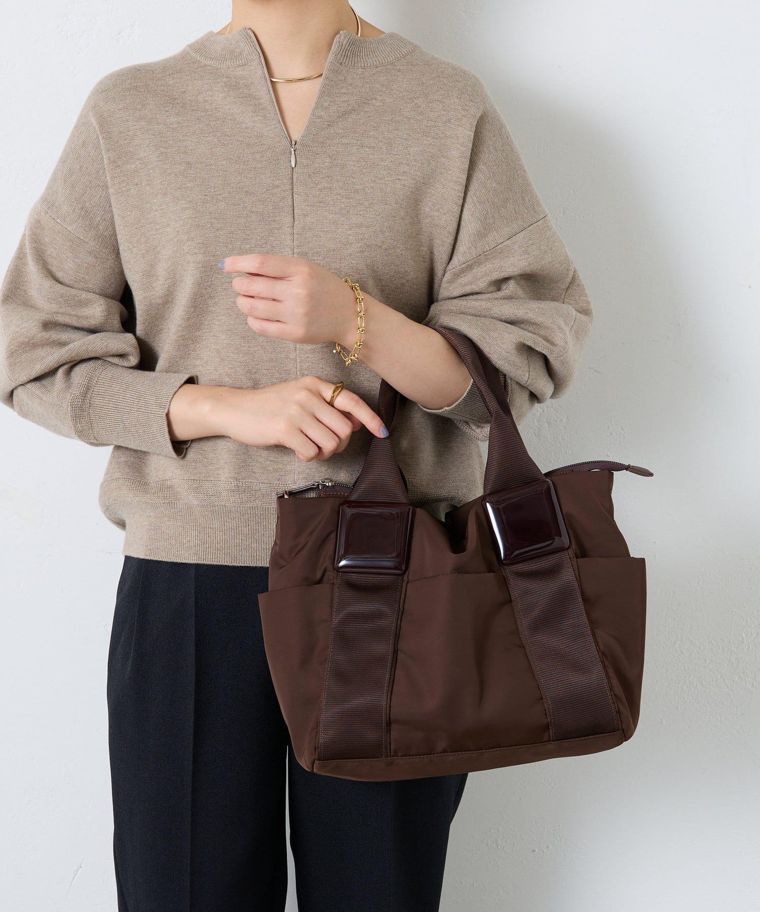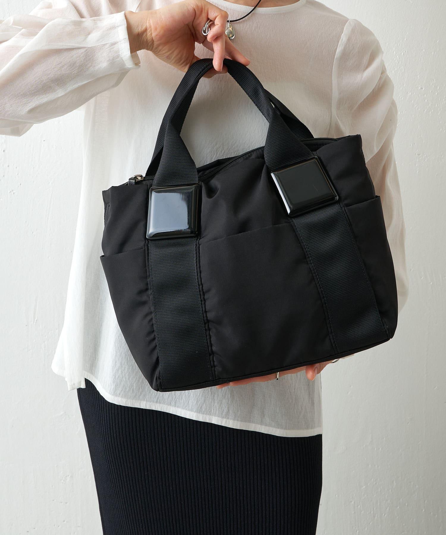 這是一款設計簡潔的手提包,採用了非常受歡迎的 PAPILLONNER 方形樹脂部件。