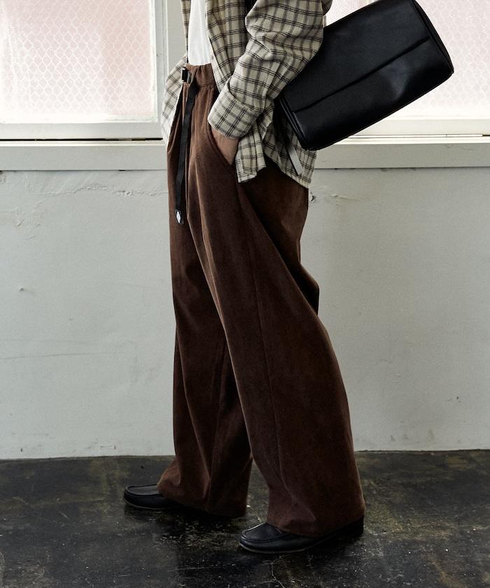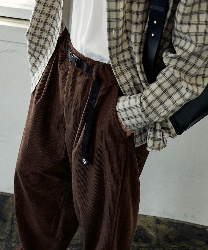 柔軟燈芯絨面料的簡易長褲,既休閒又優雅。