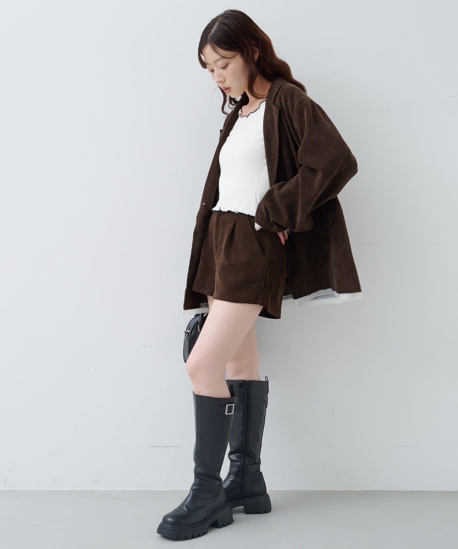 夾克由保暖燈芯絨製成,帶有襯裡。