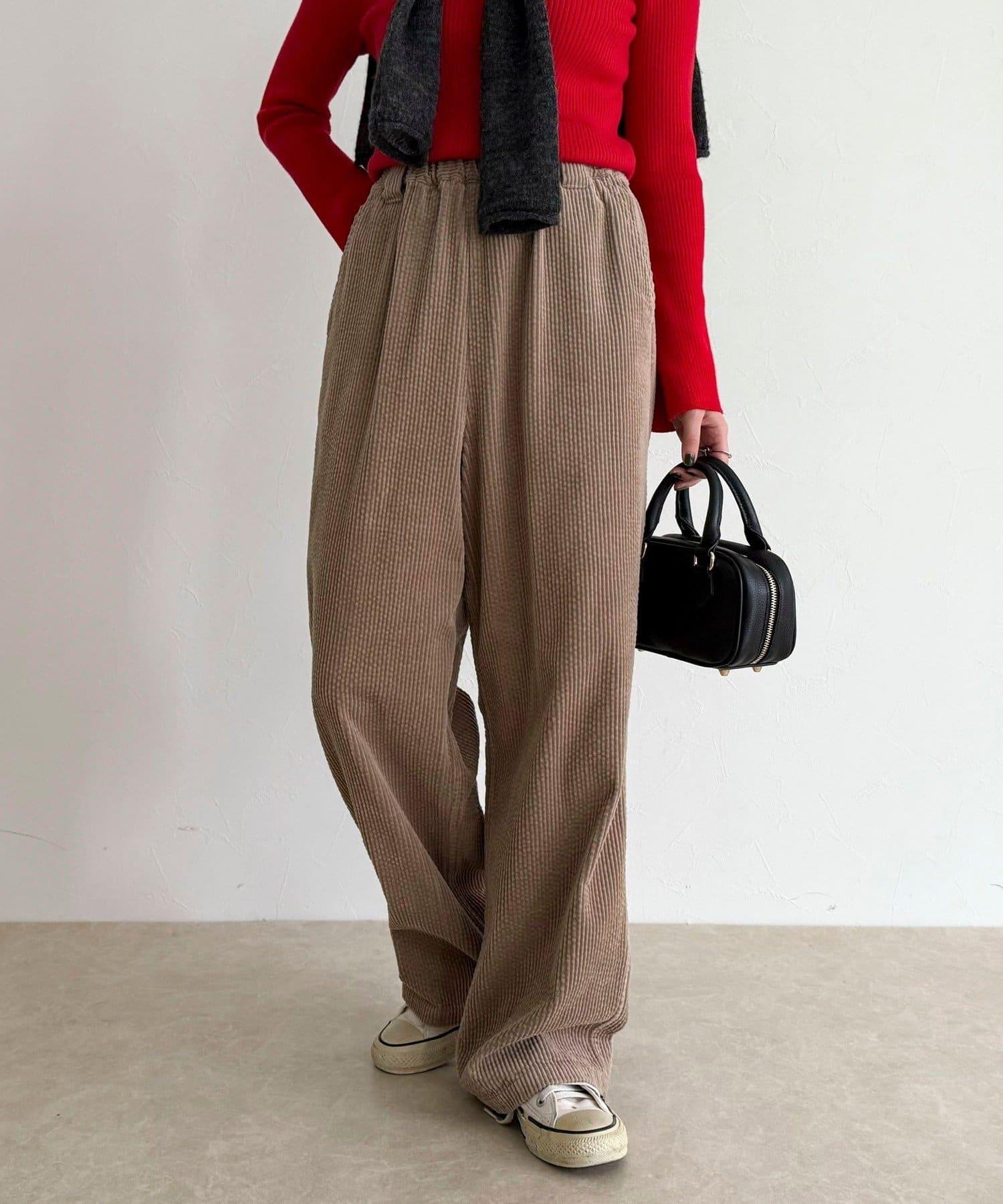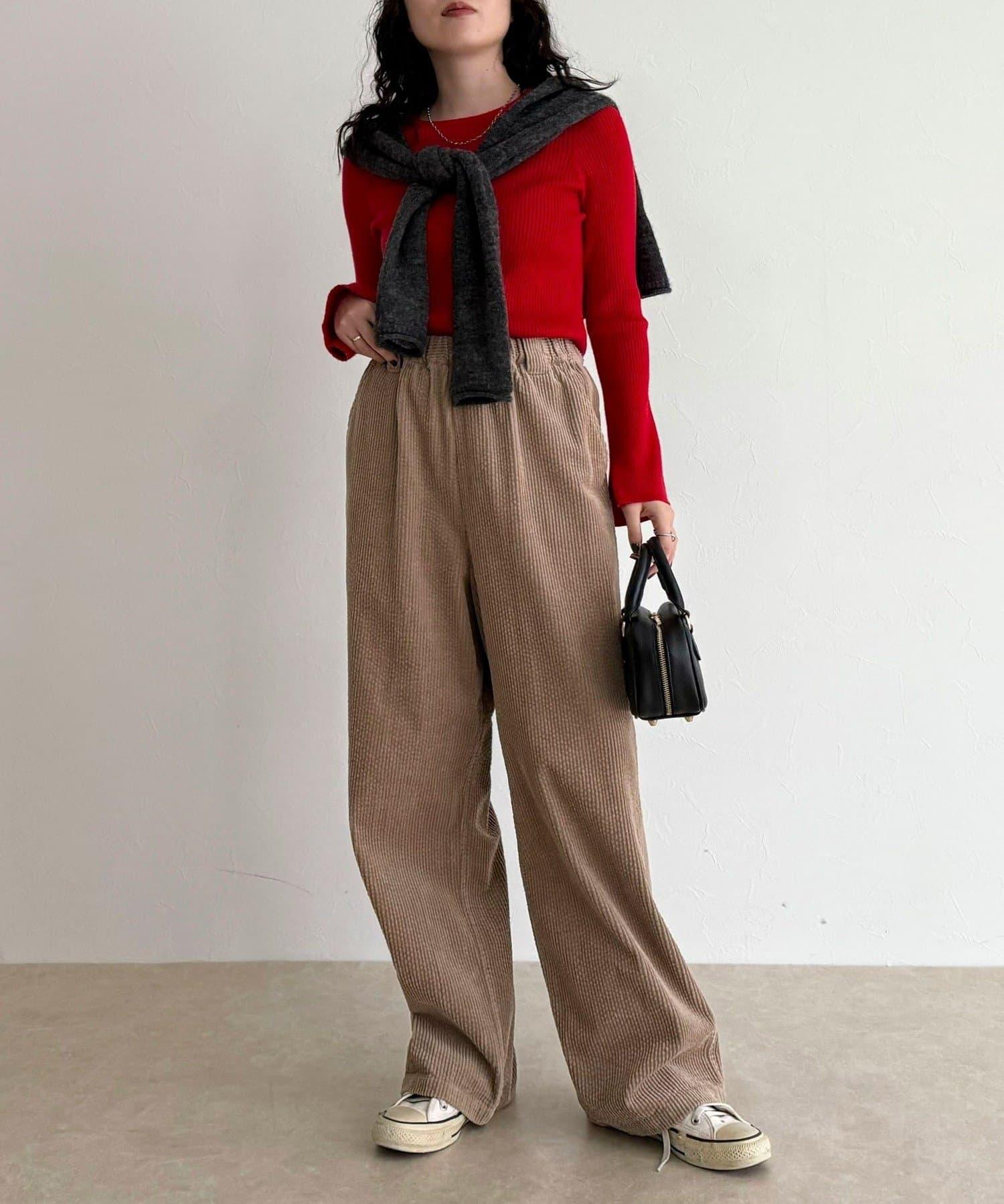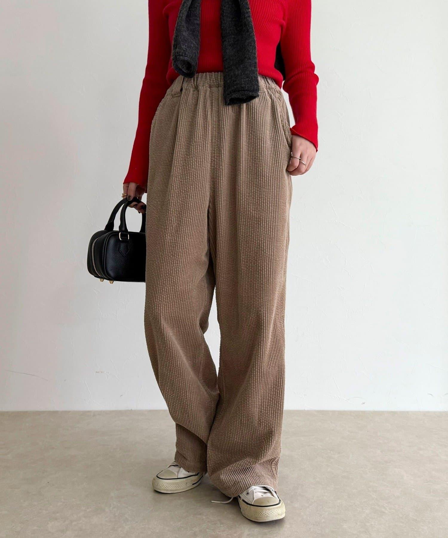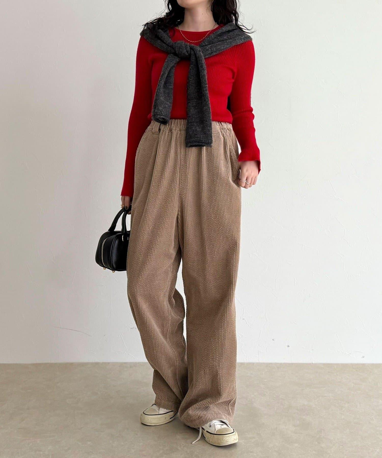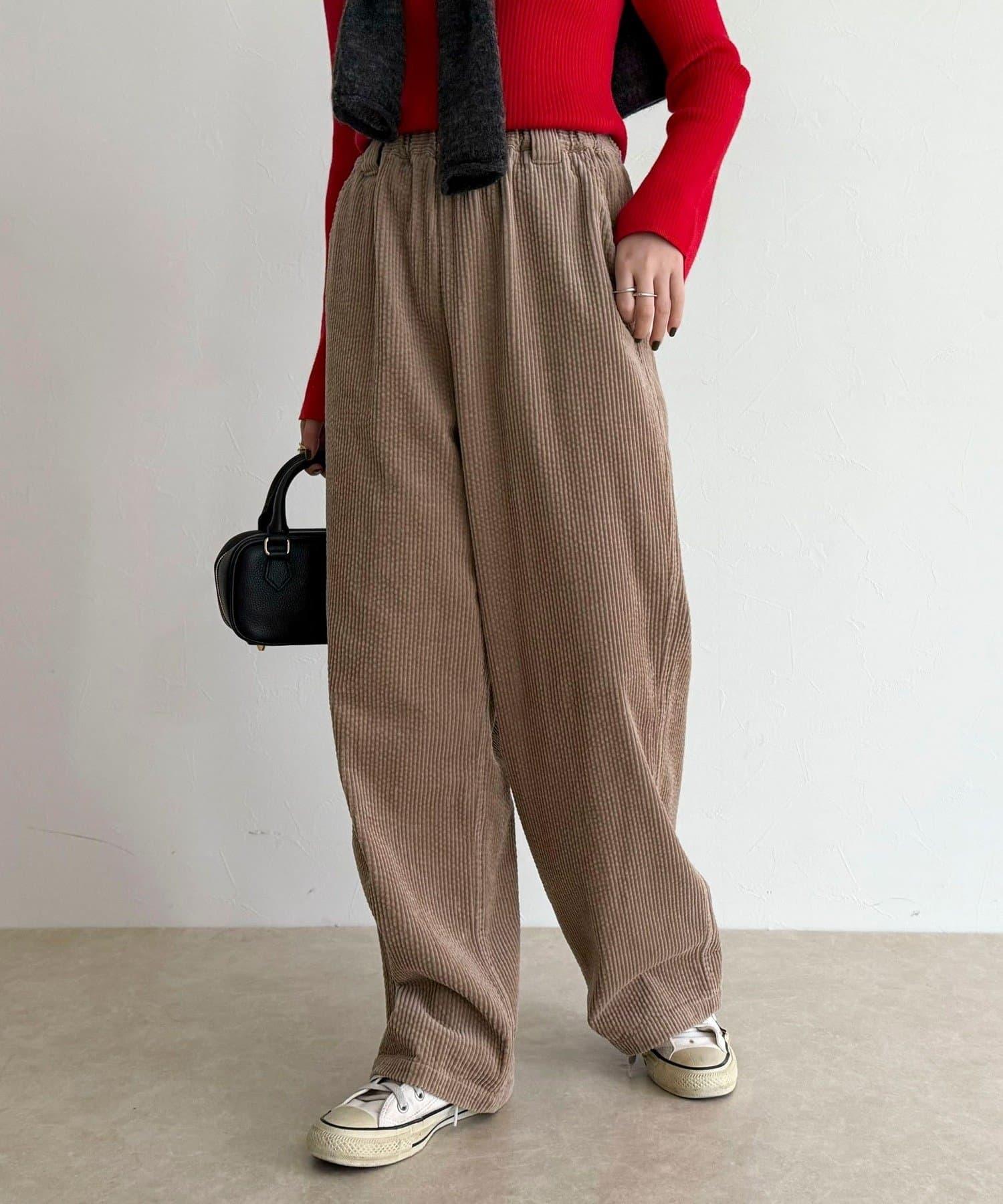 燈芯絨面料的休閒褲,具有秋冬的溫暖感。
