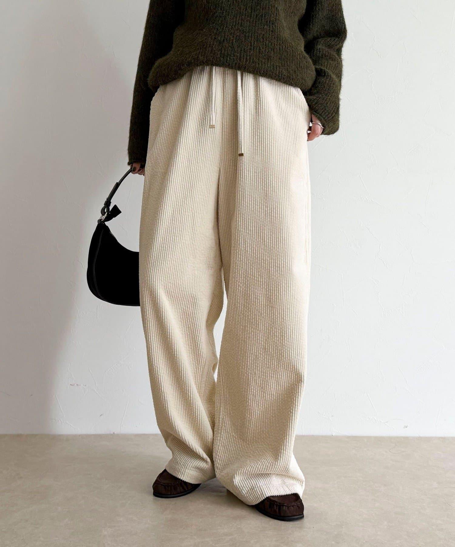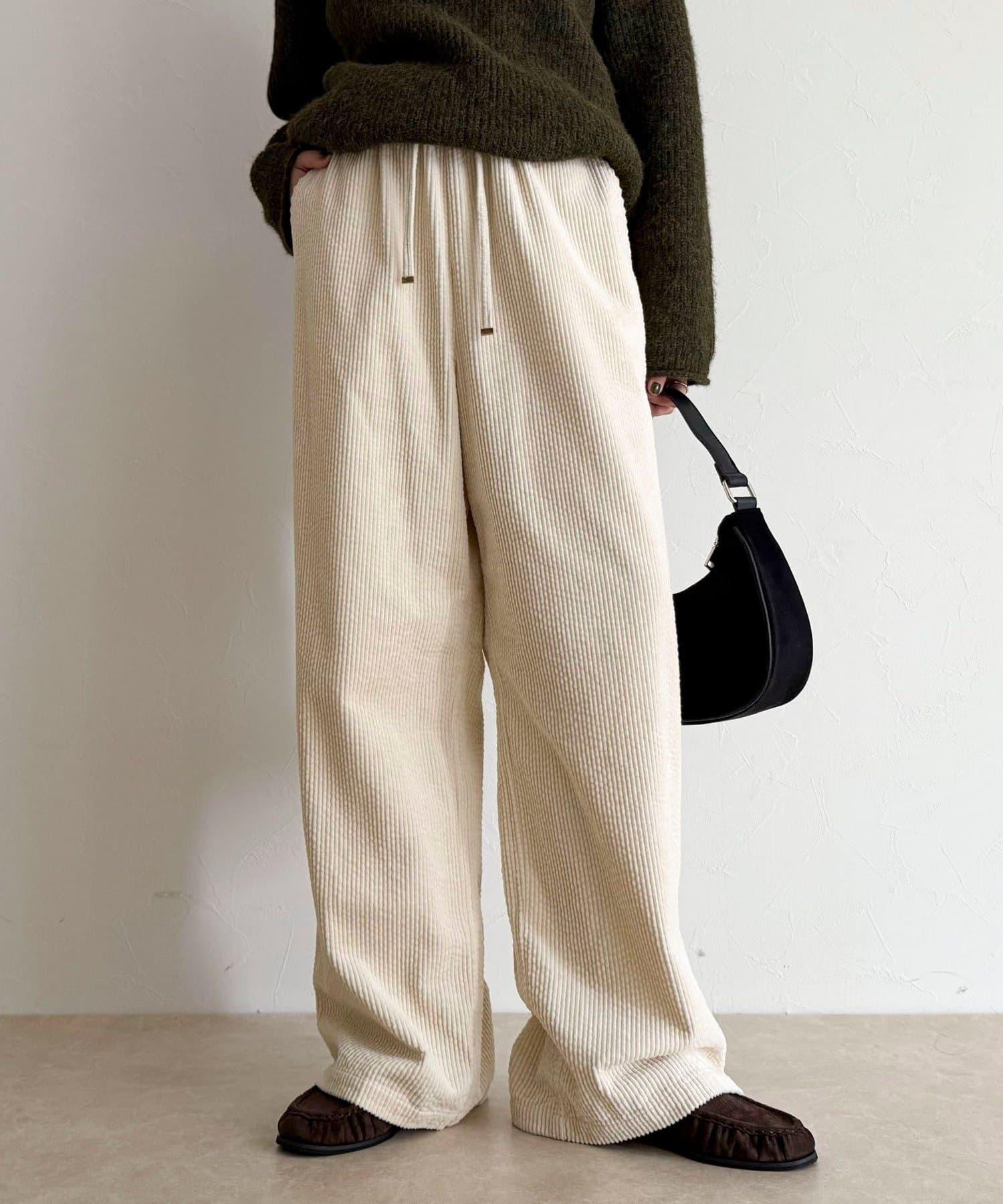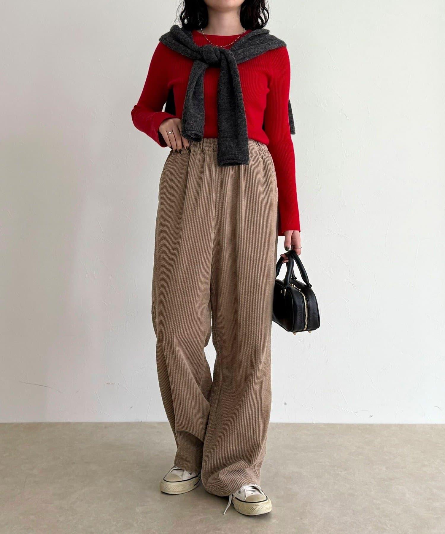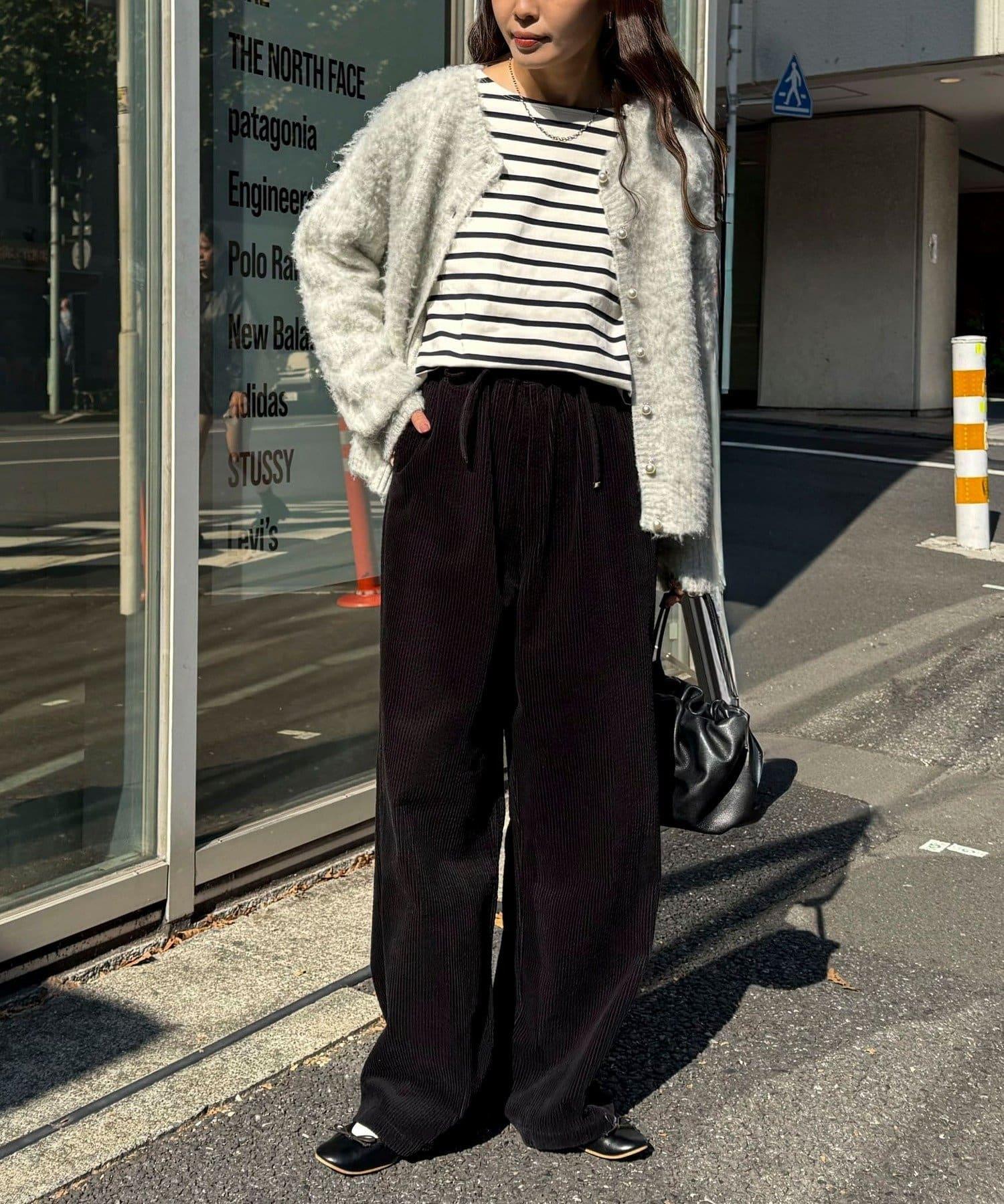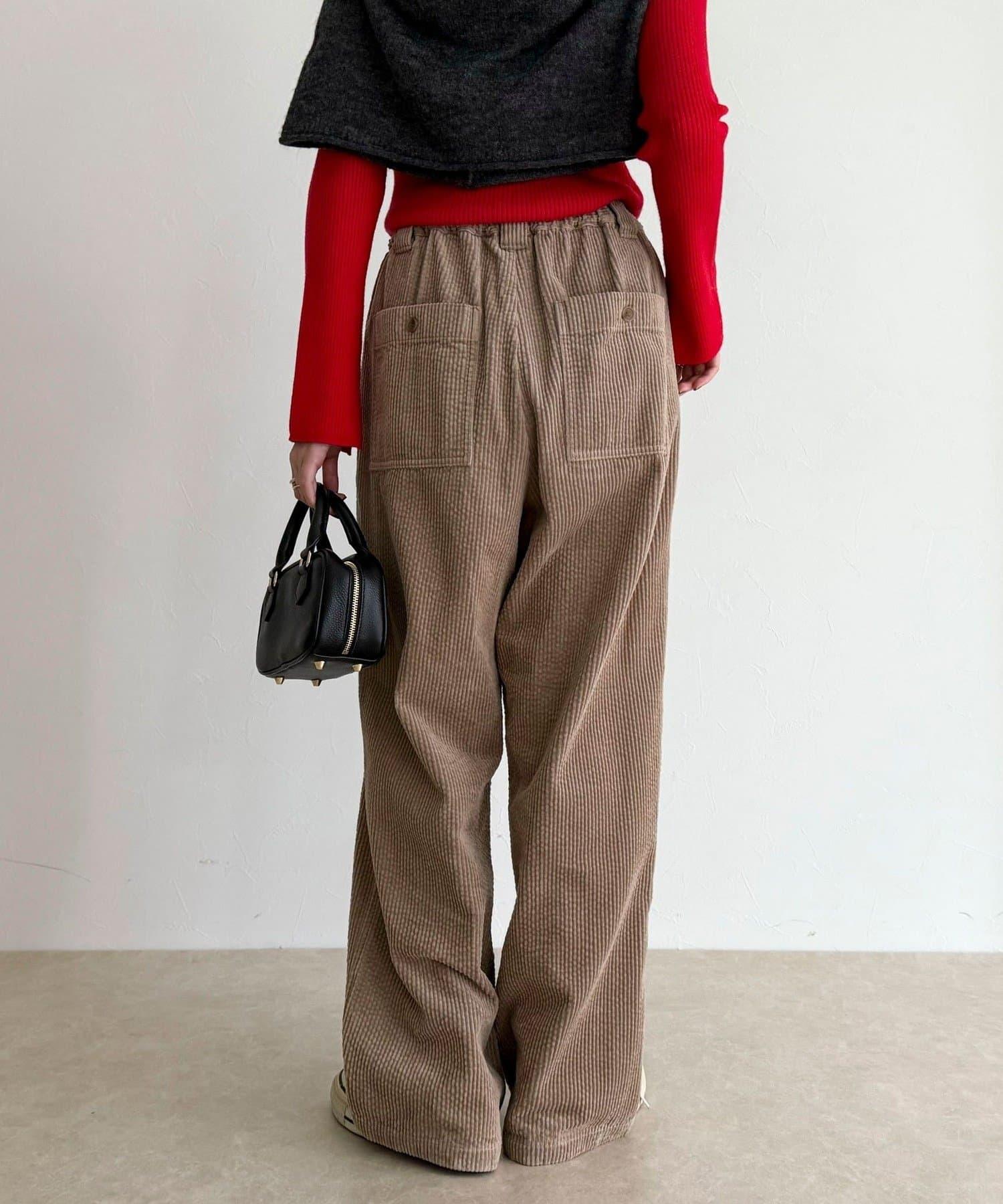 燈芯絨面料的休閒褲,具有秋冬的溫暖感。