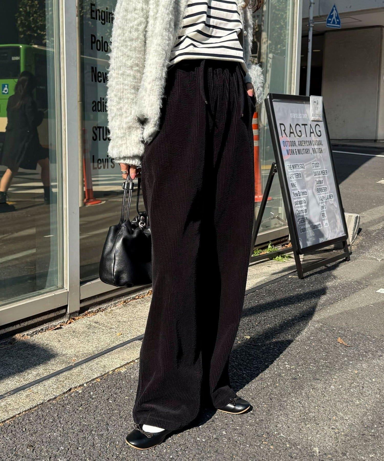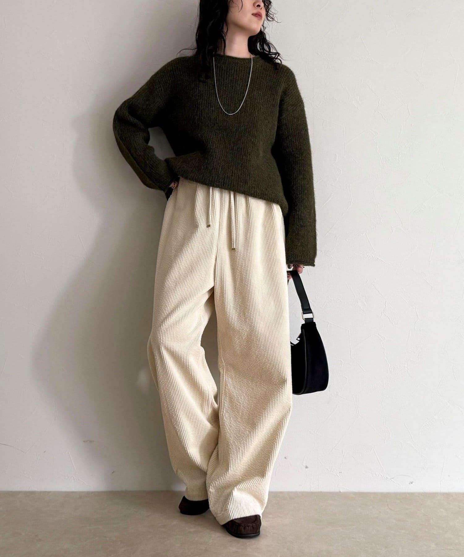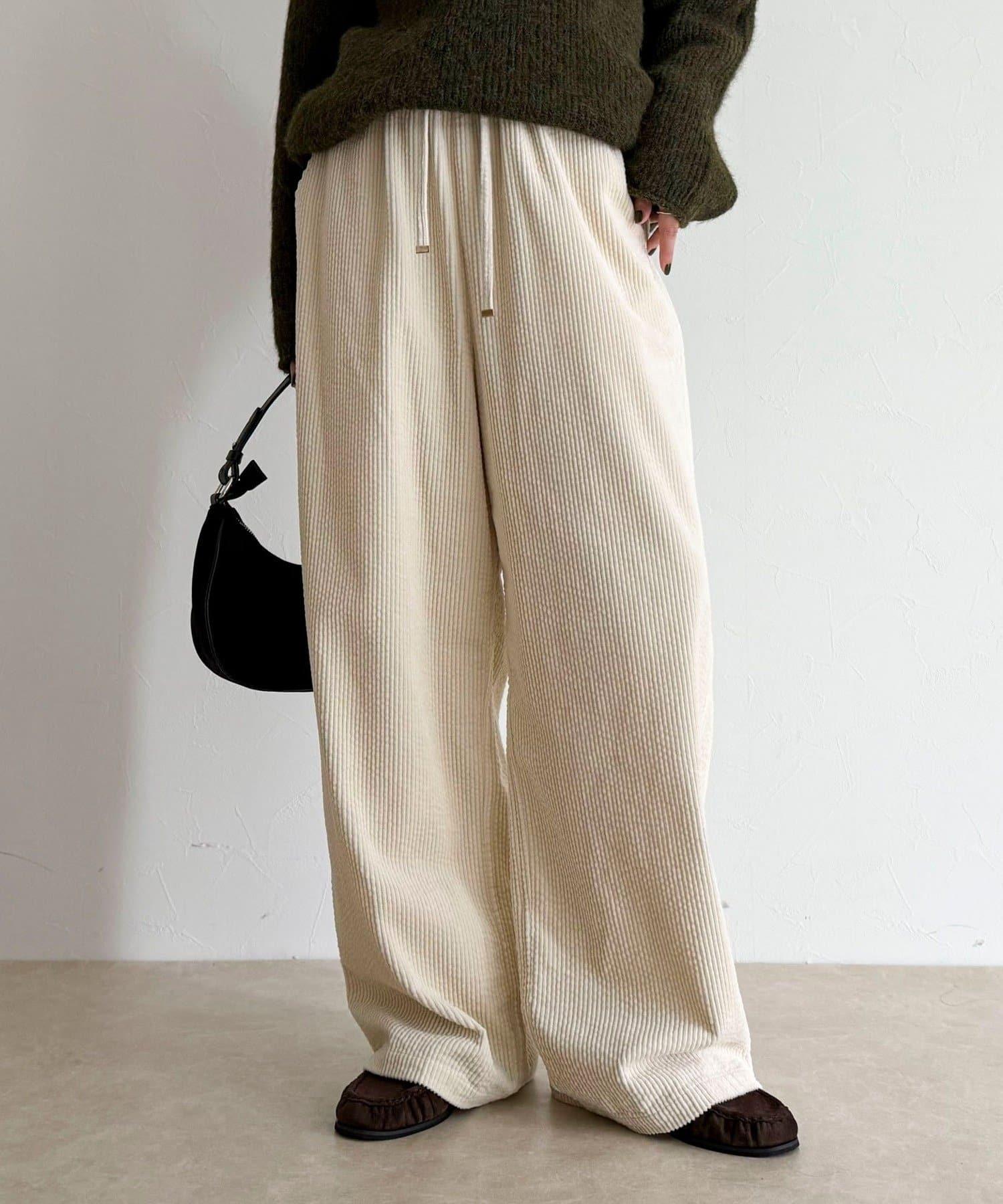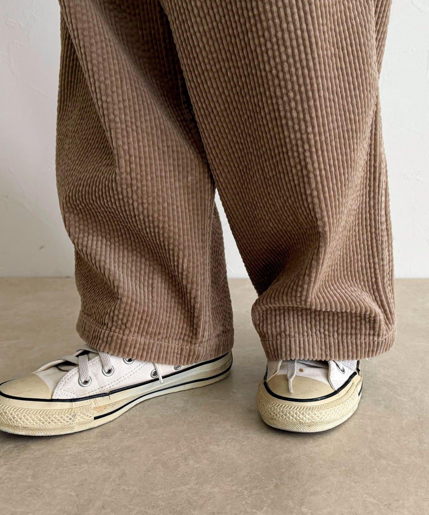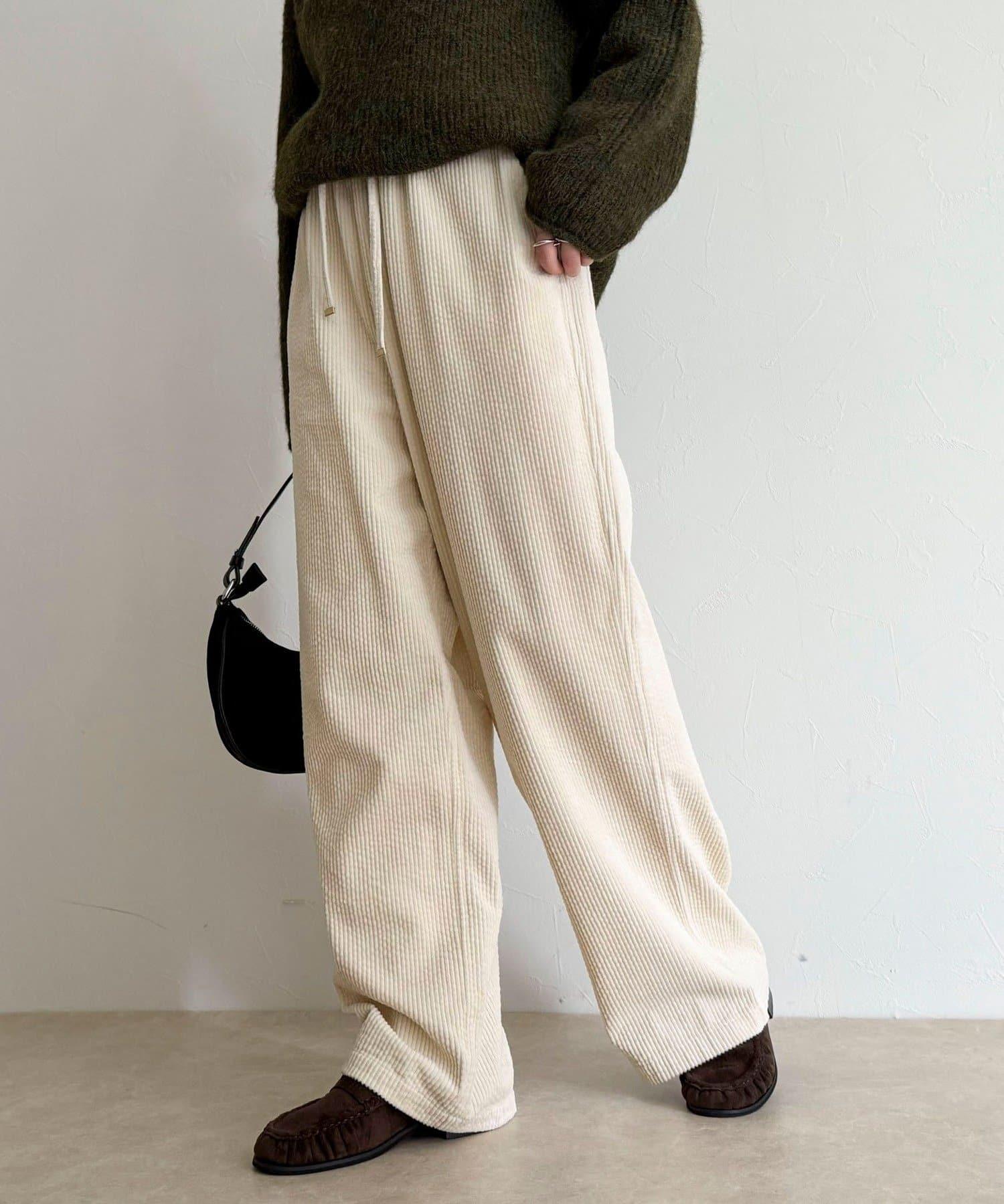 燈芯絨面料的休閒褲,具有秋冬的溫暖感。
