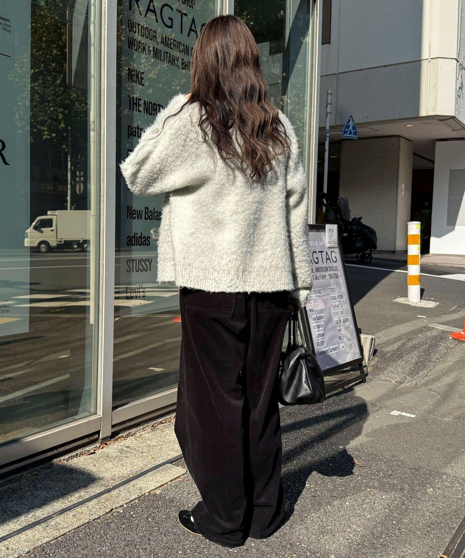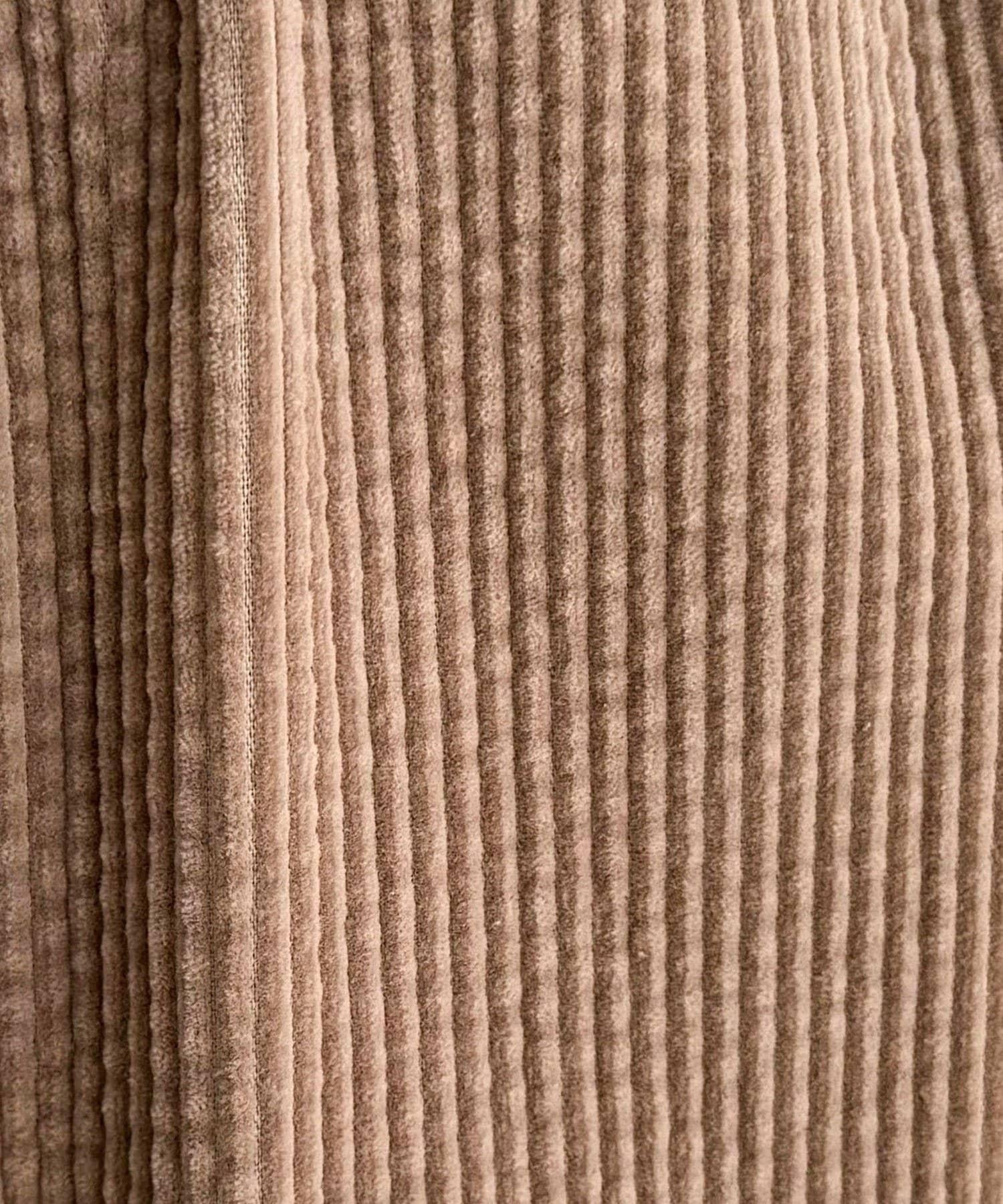 這款衣服版型寬鬆,但廓形優美,不會給人太粗糙的感覺。燈芯絨質地不厚,可以穿很久。