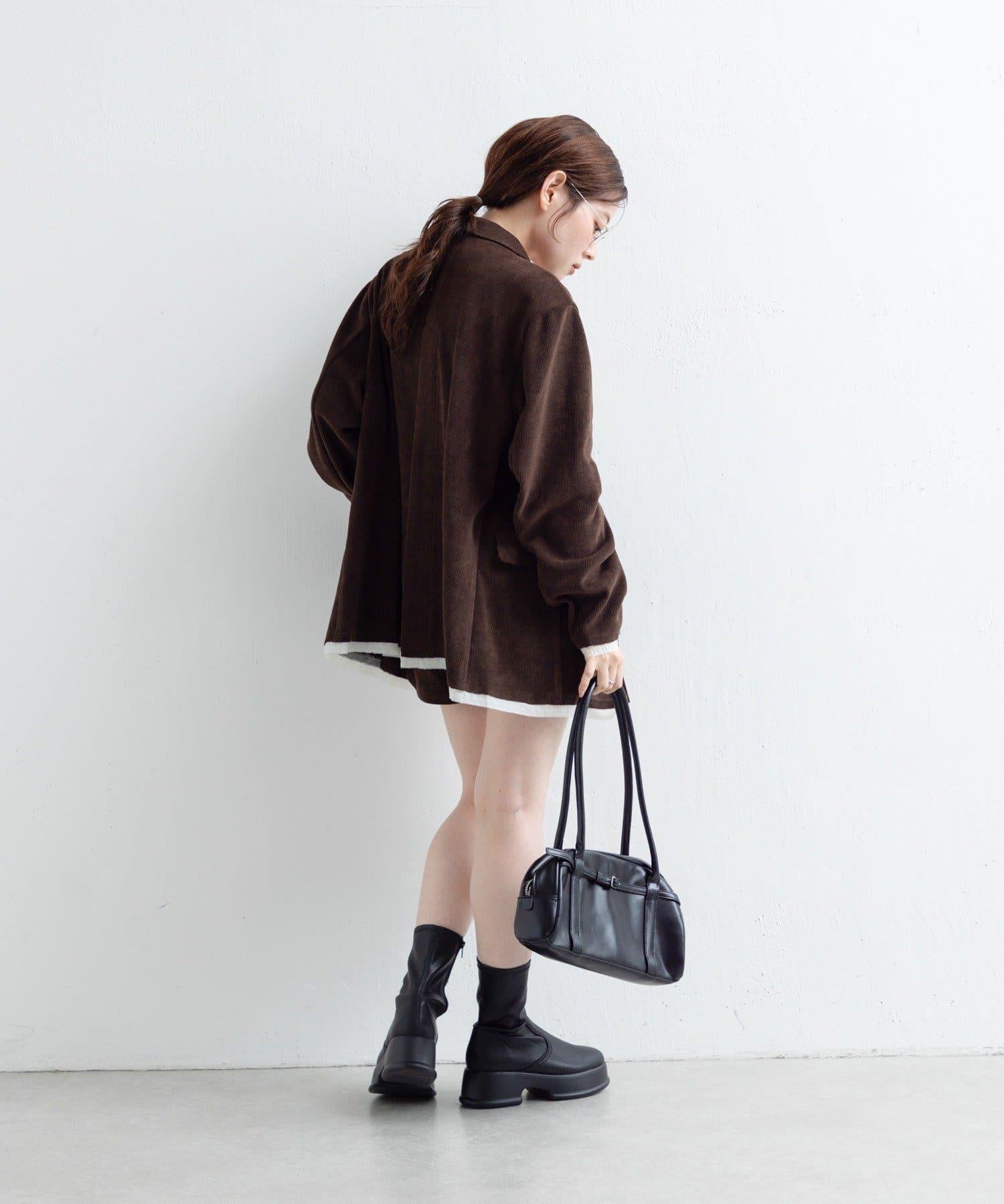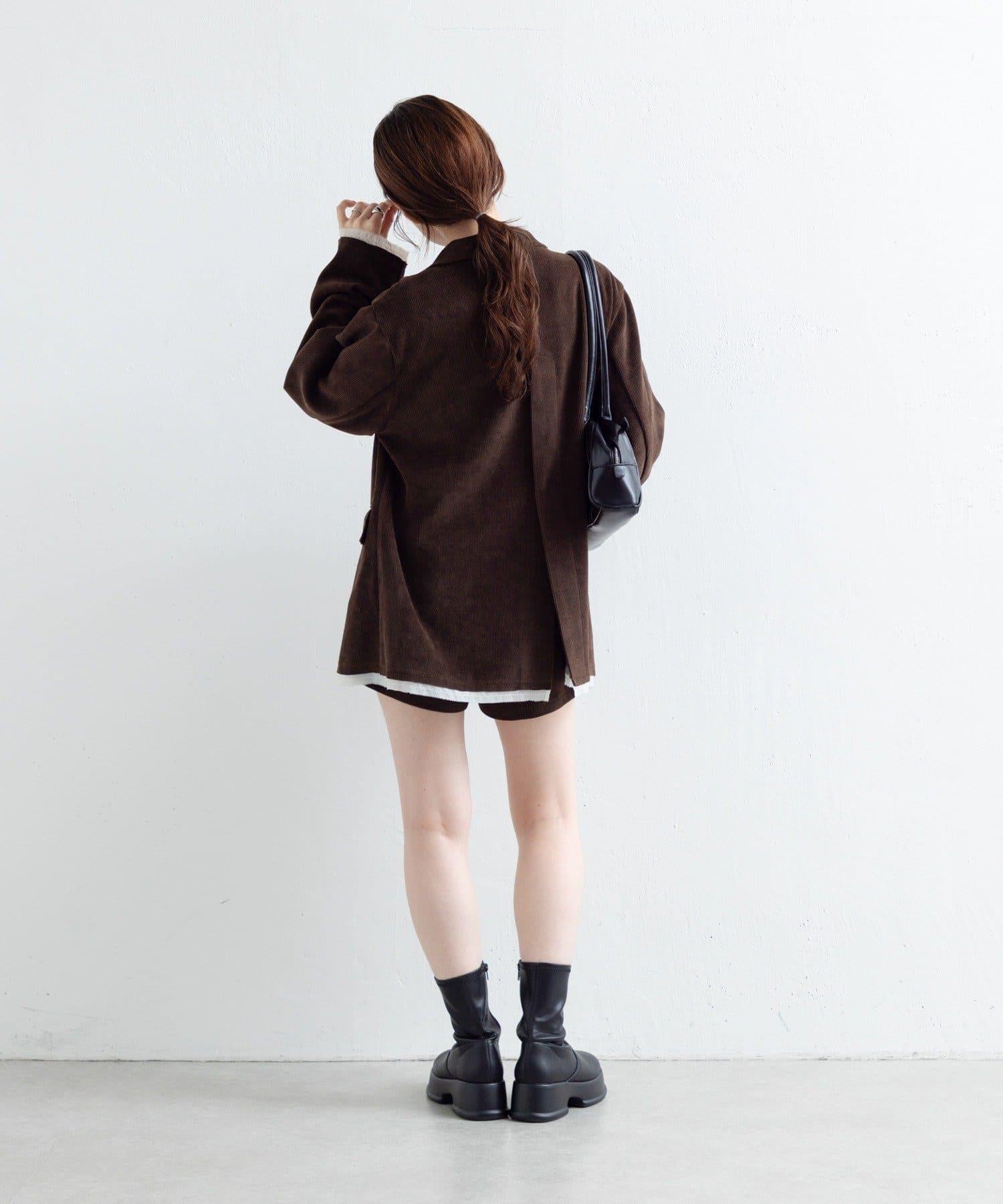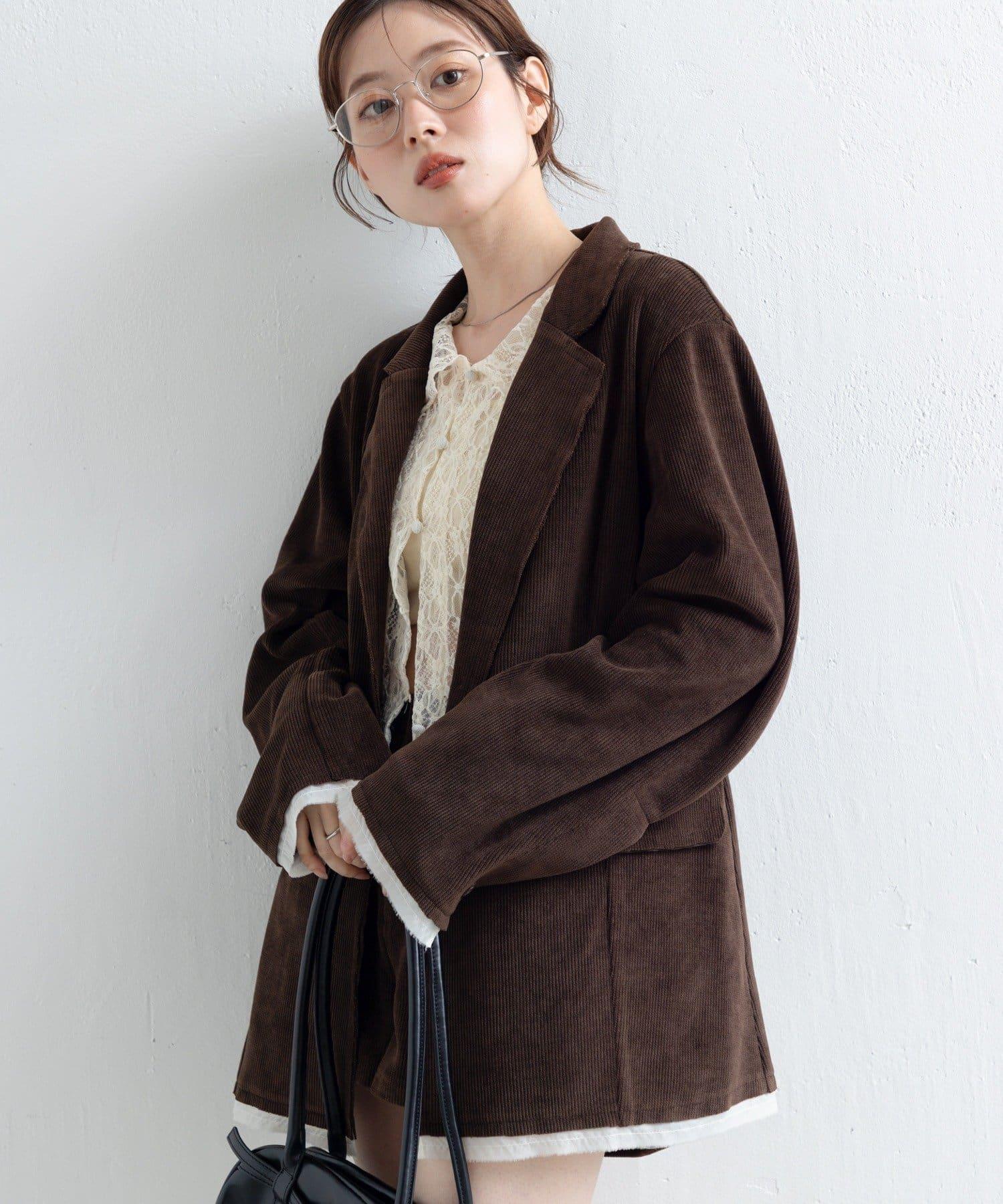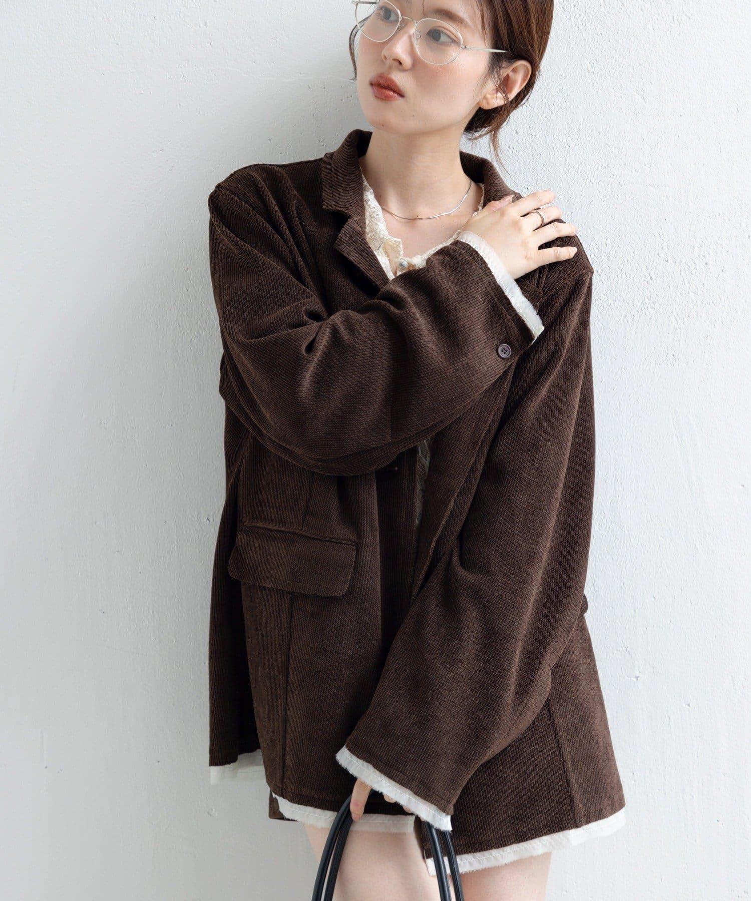 採用時髦的燈芯絨面料剪裁,給人舒適的印象。隱藏臀部,遮蓋身材。
