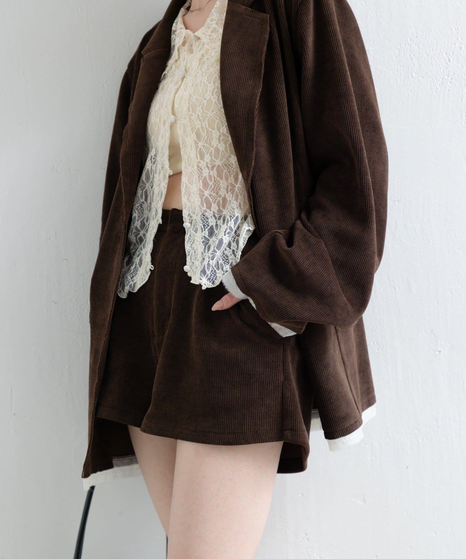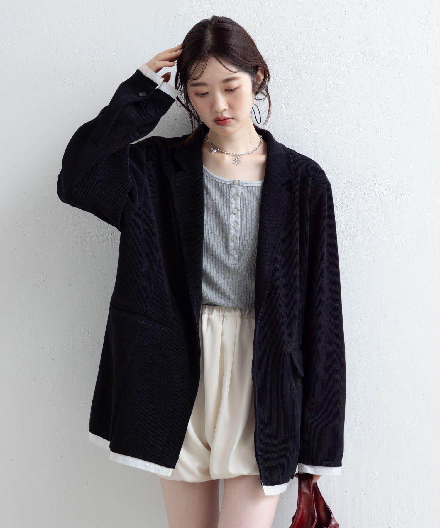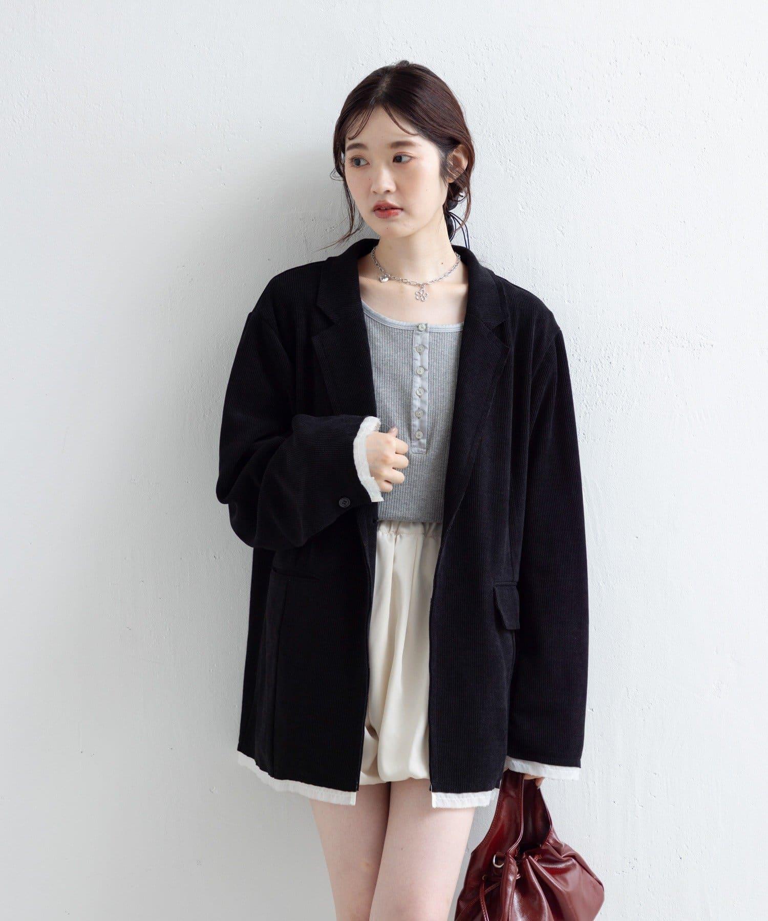 採用時髦的燈芯絨面料剪裁,給人舒適的印象。隱藏臀部,遮蓋身材。