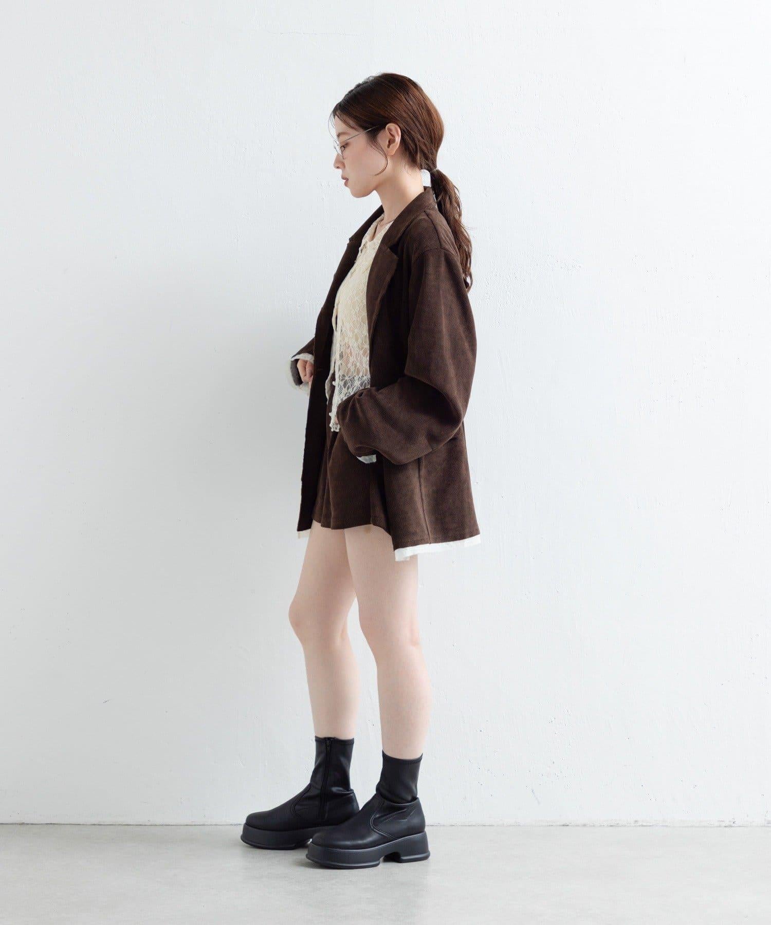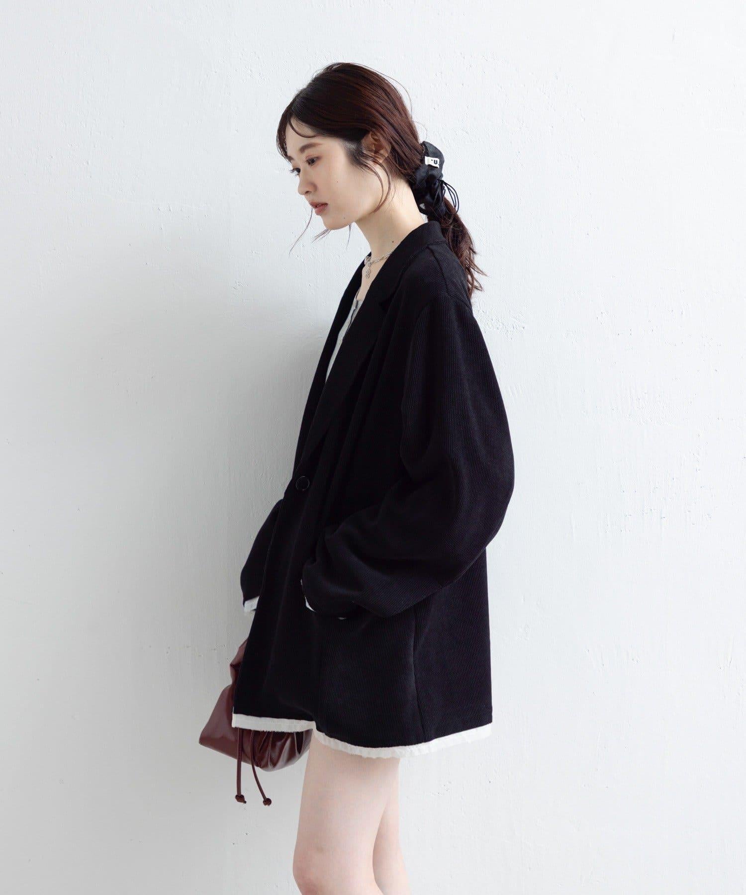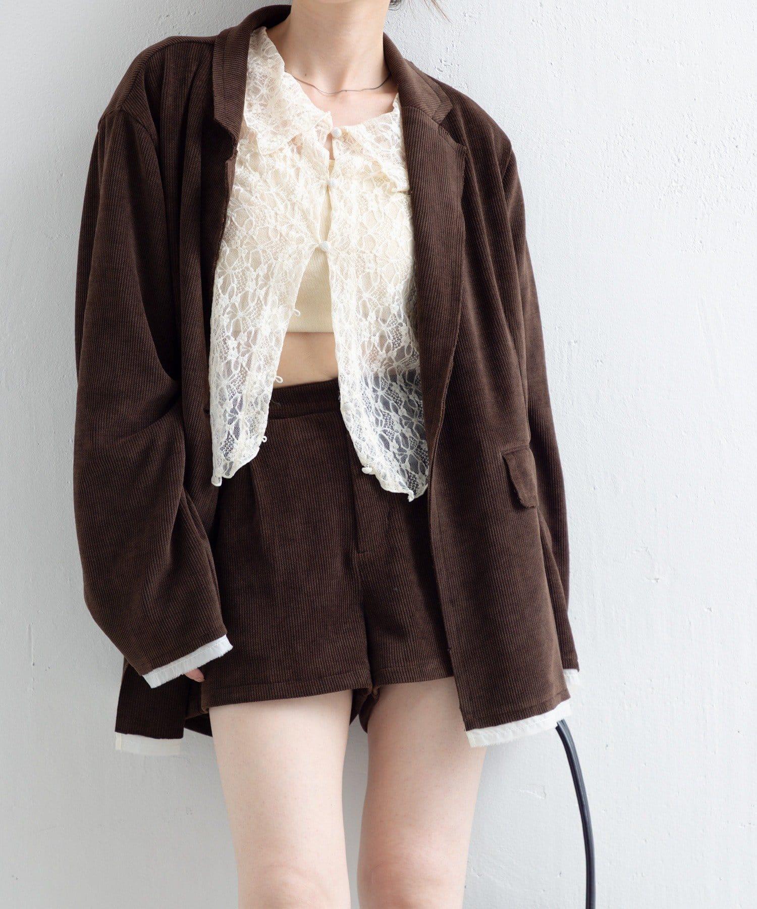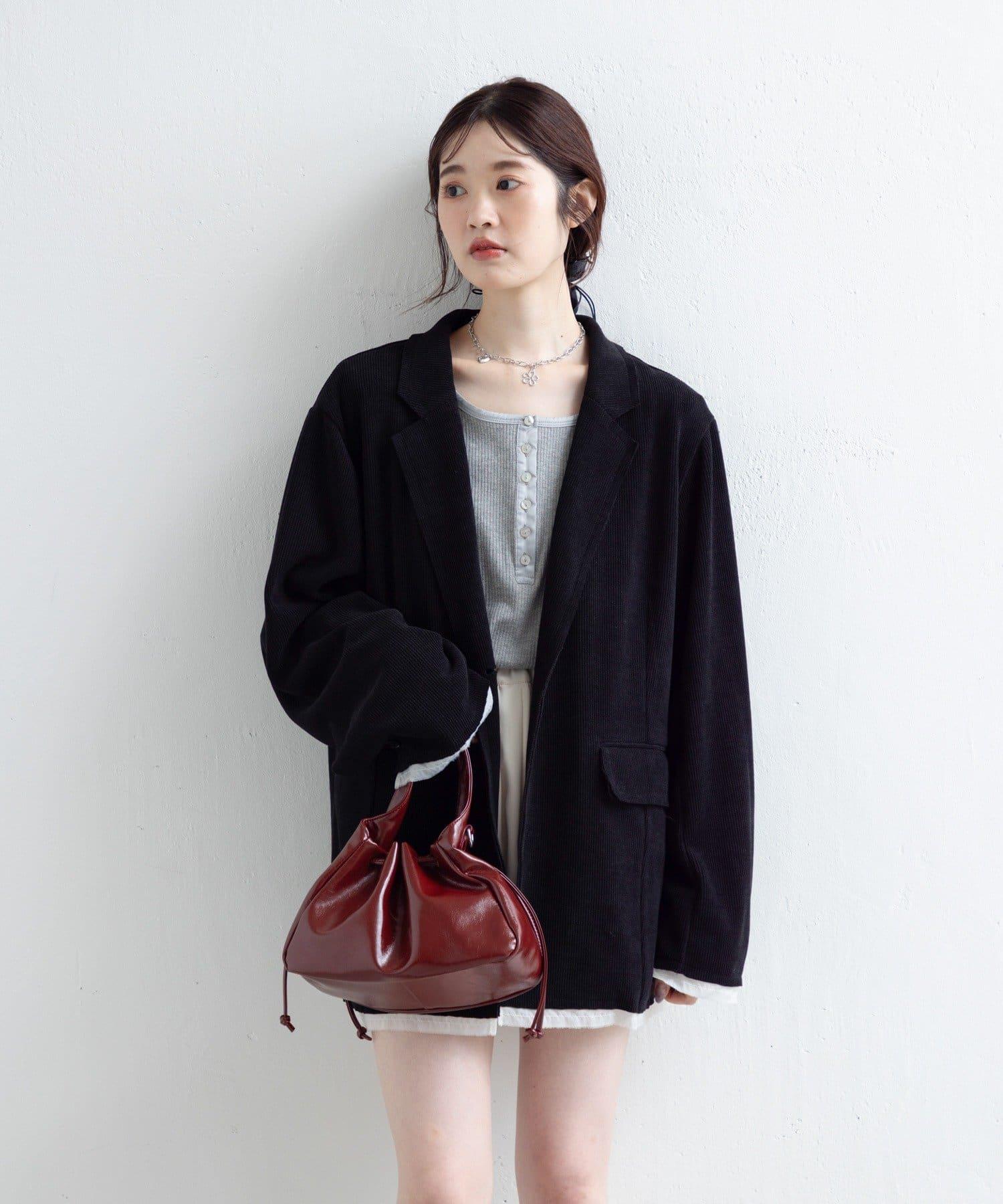 採用時髦的燈芯絨面料剪裁,給人舒適的印象。隱藏臀部,遮蓋身材。