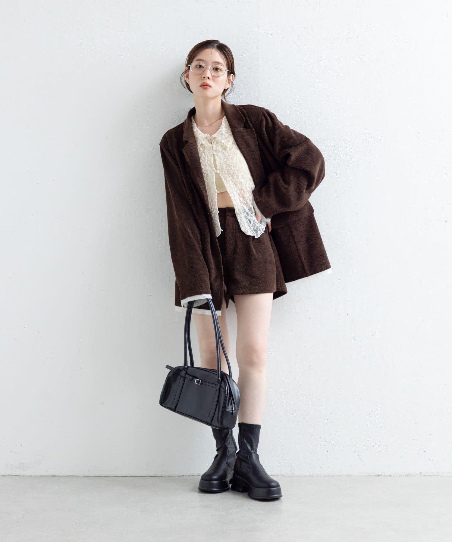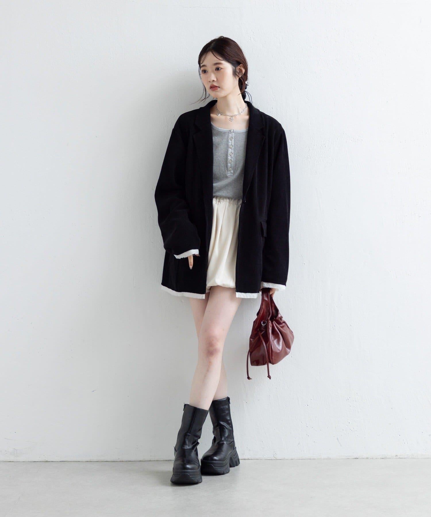 內搭蕾絲或薄紗材質,增添女性氣息,打造寬鬆風格。